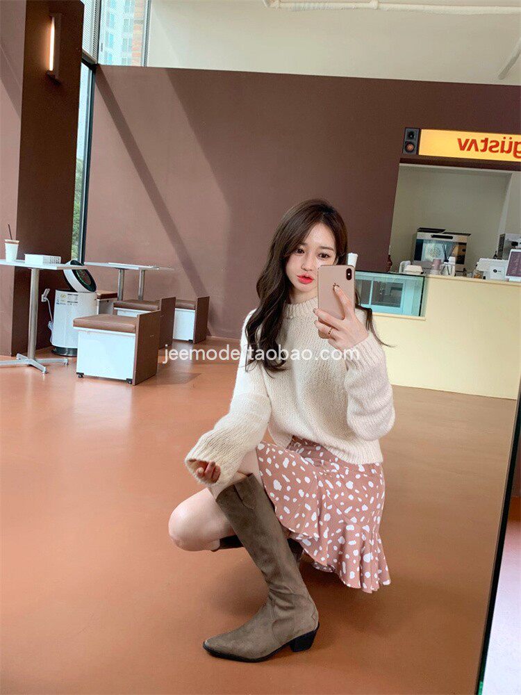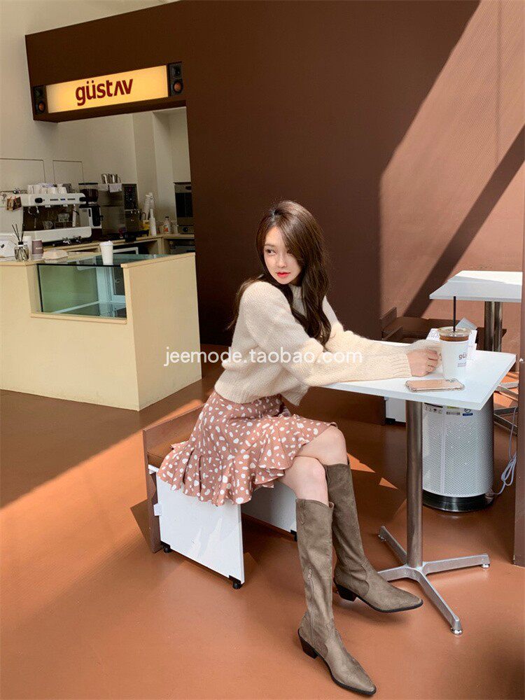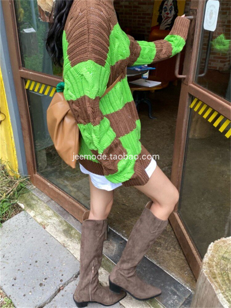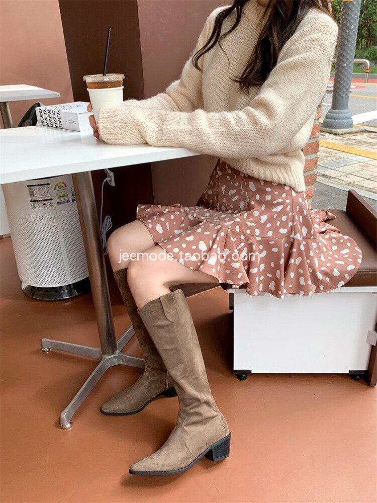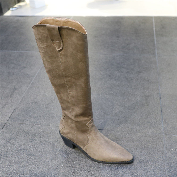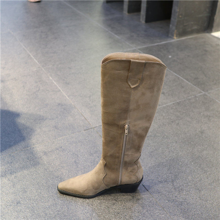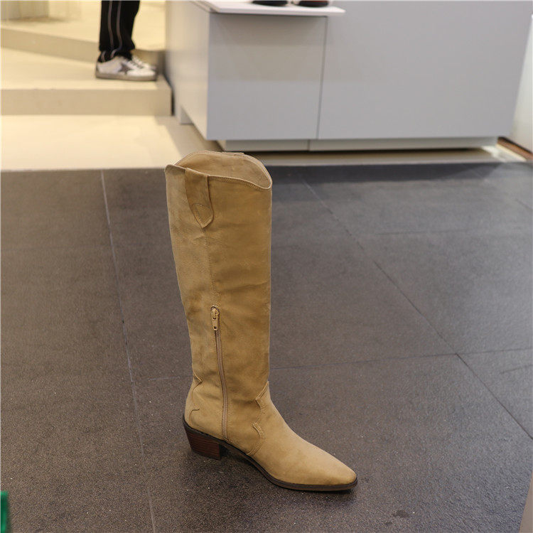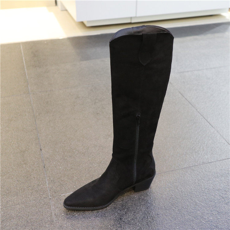 韓國東大門2023秋季新款尖頭方跟復古套筒牛仔長筒ins潮騎士靴子