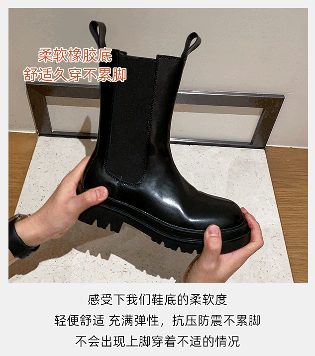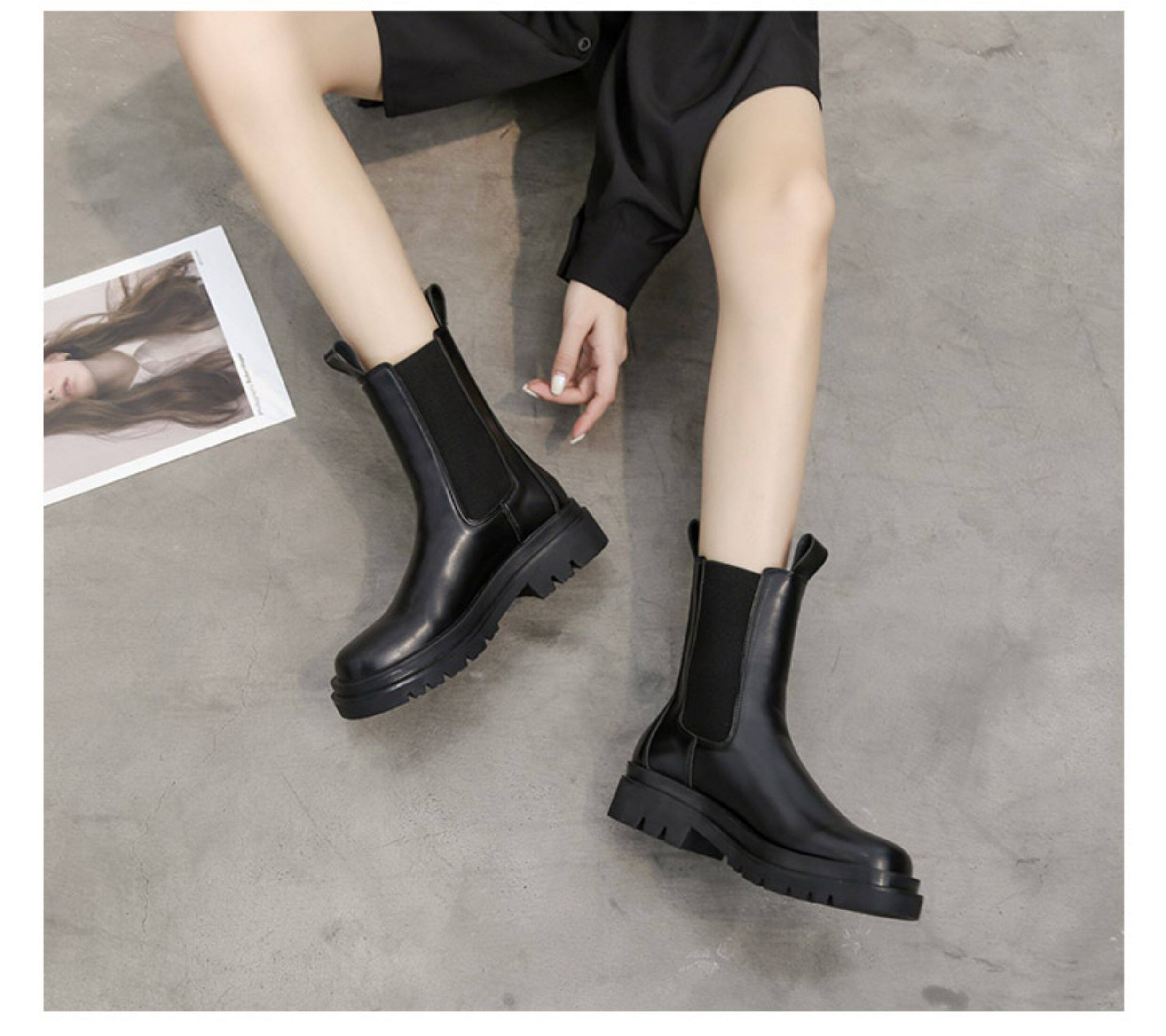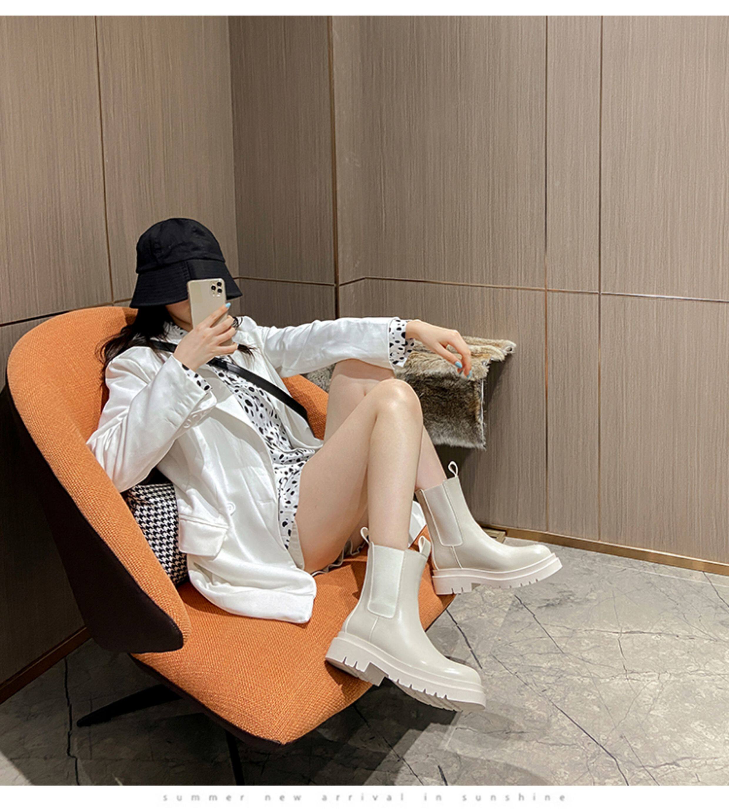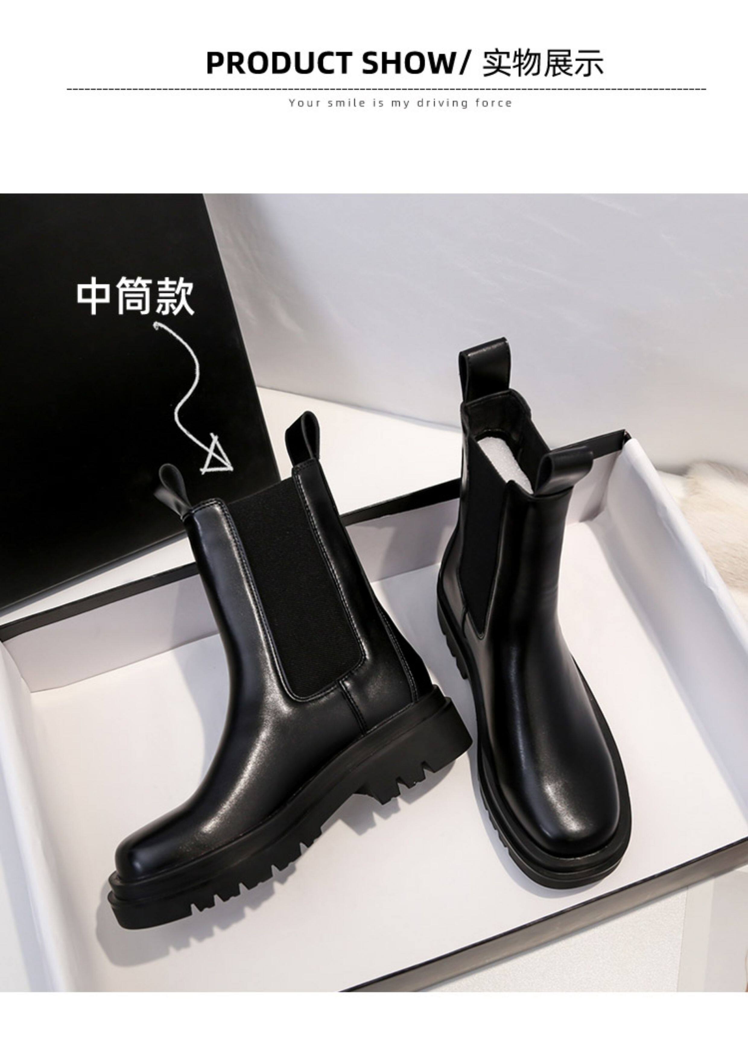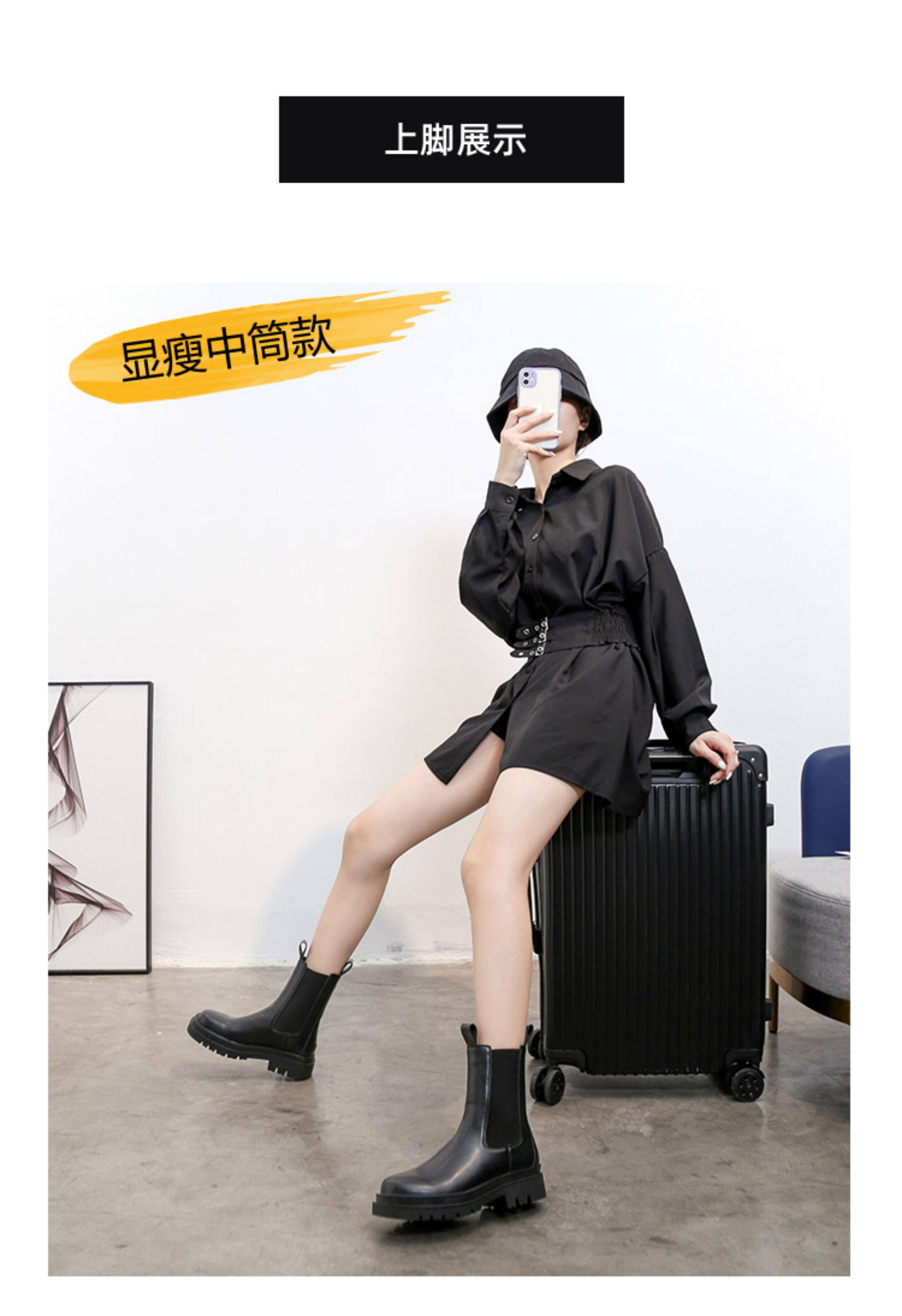 mona同款菸筒馬丁靴2024新款女春秋中筒英倫風厚底切爾西短靴單靴