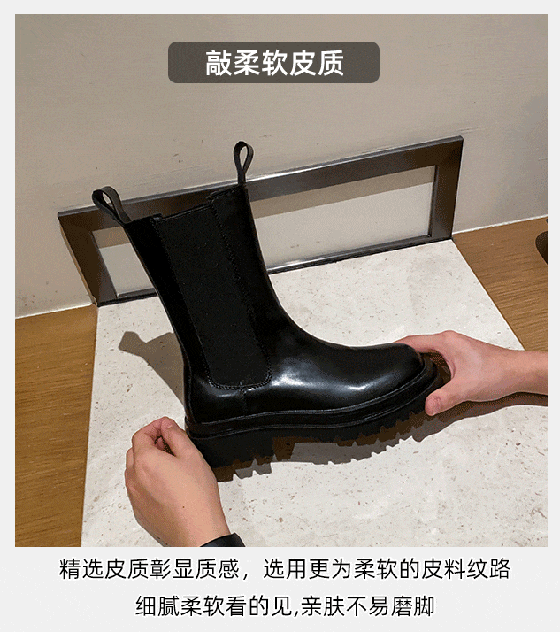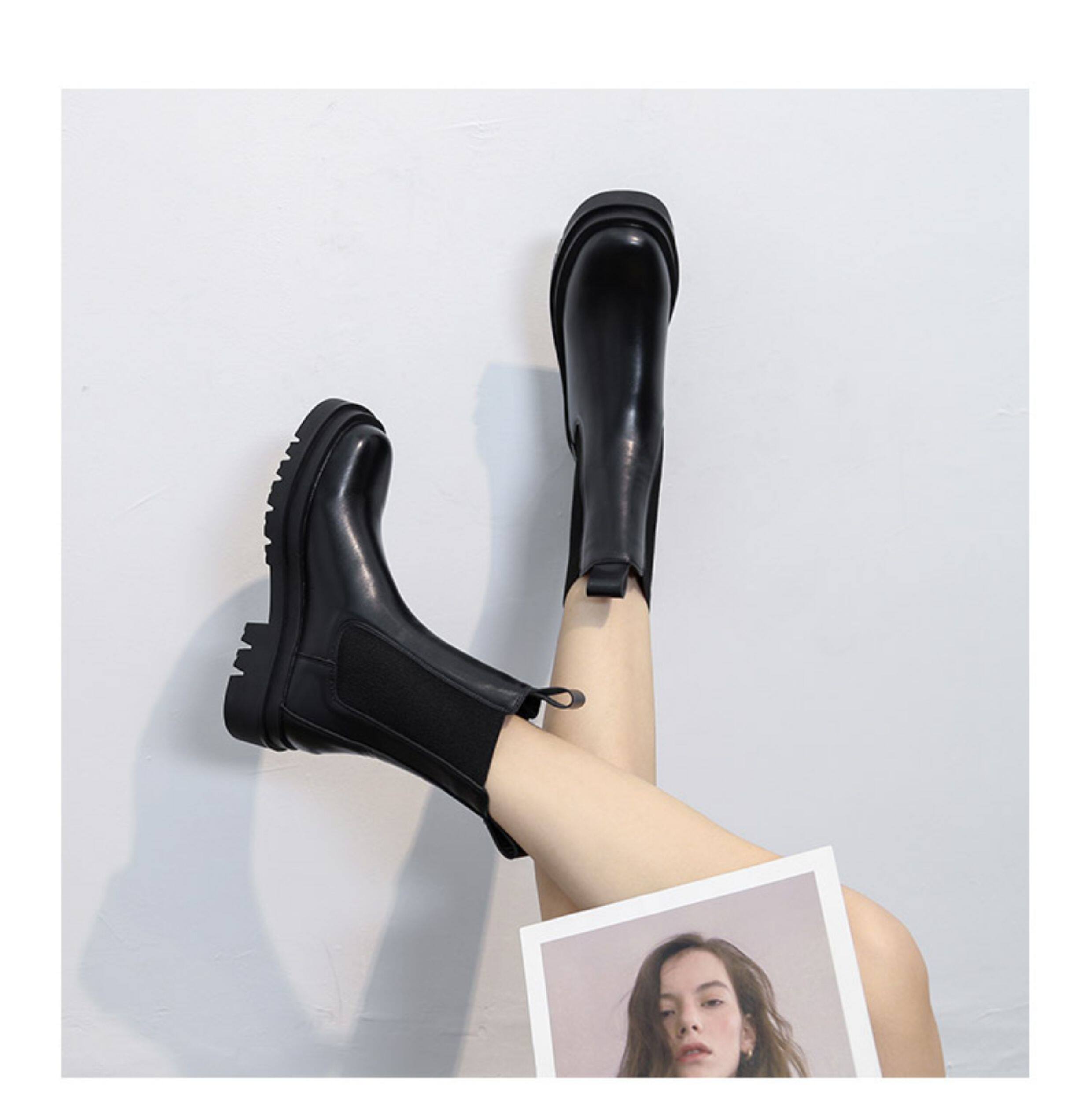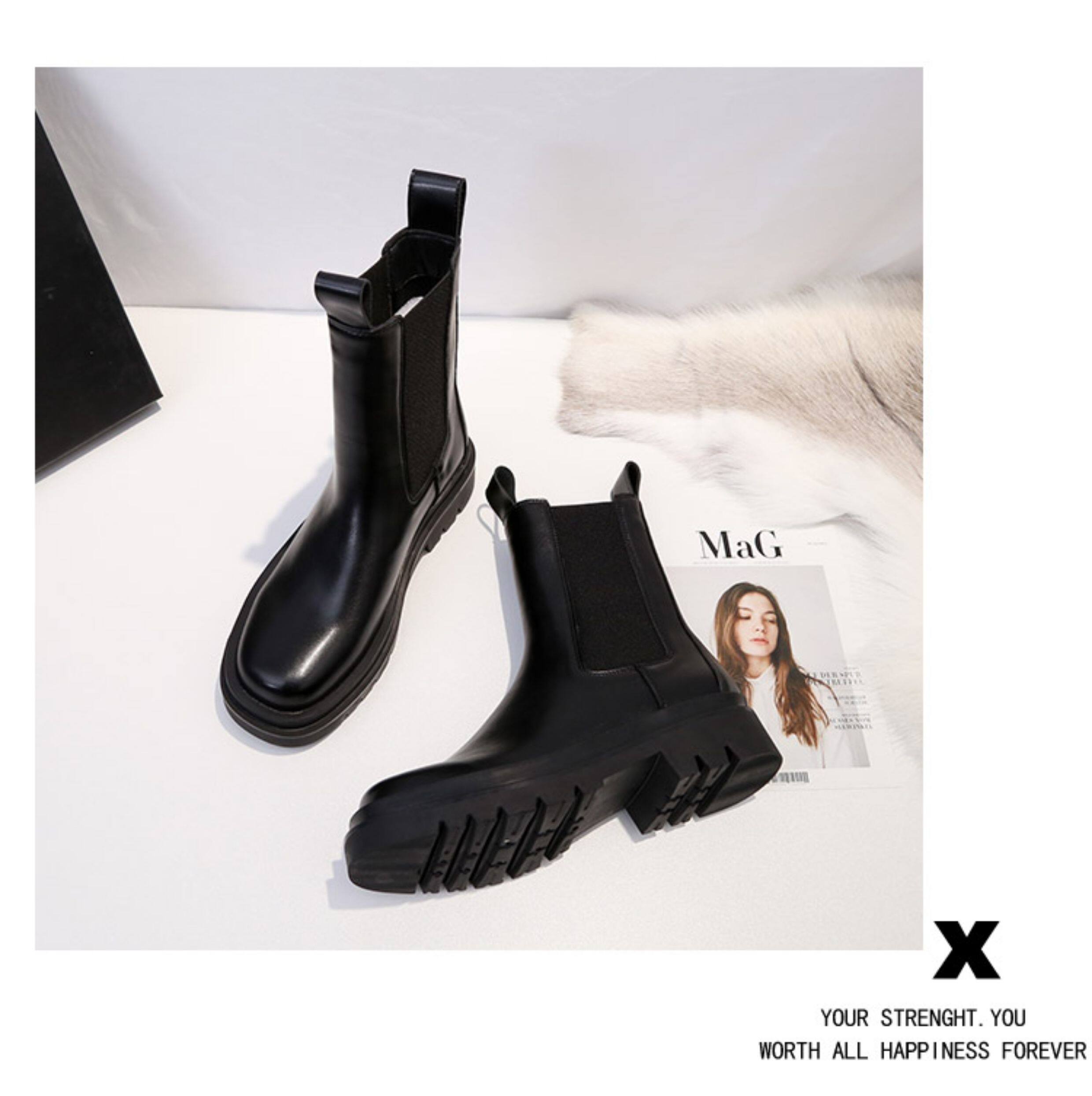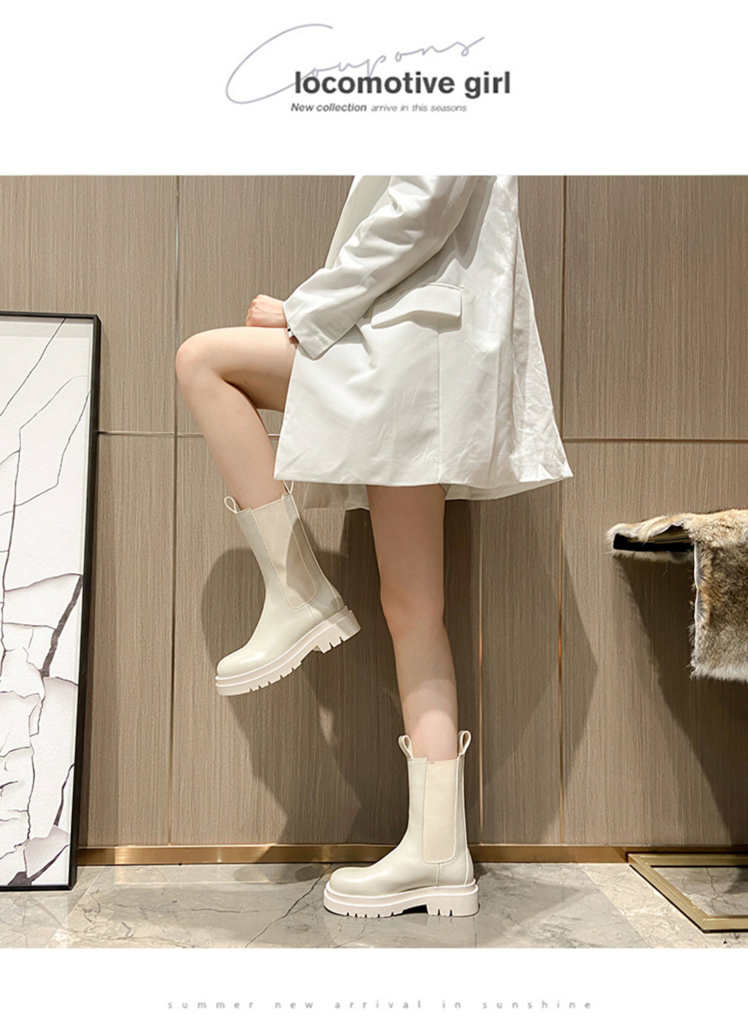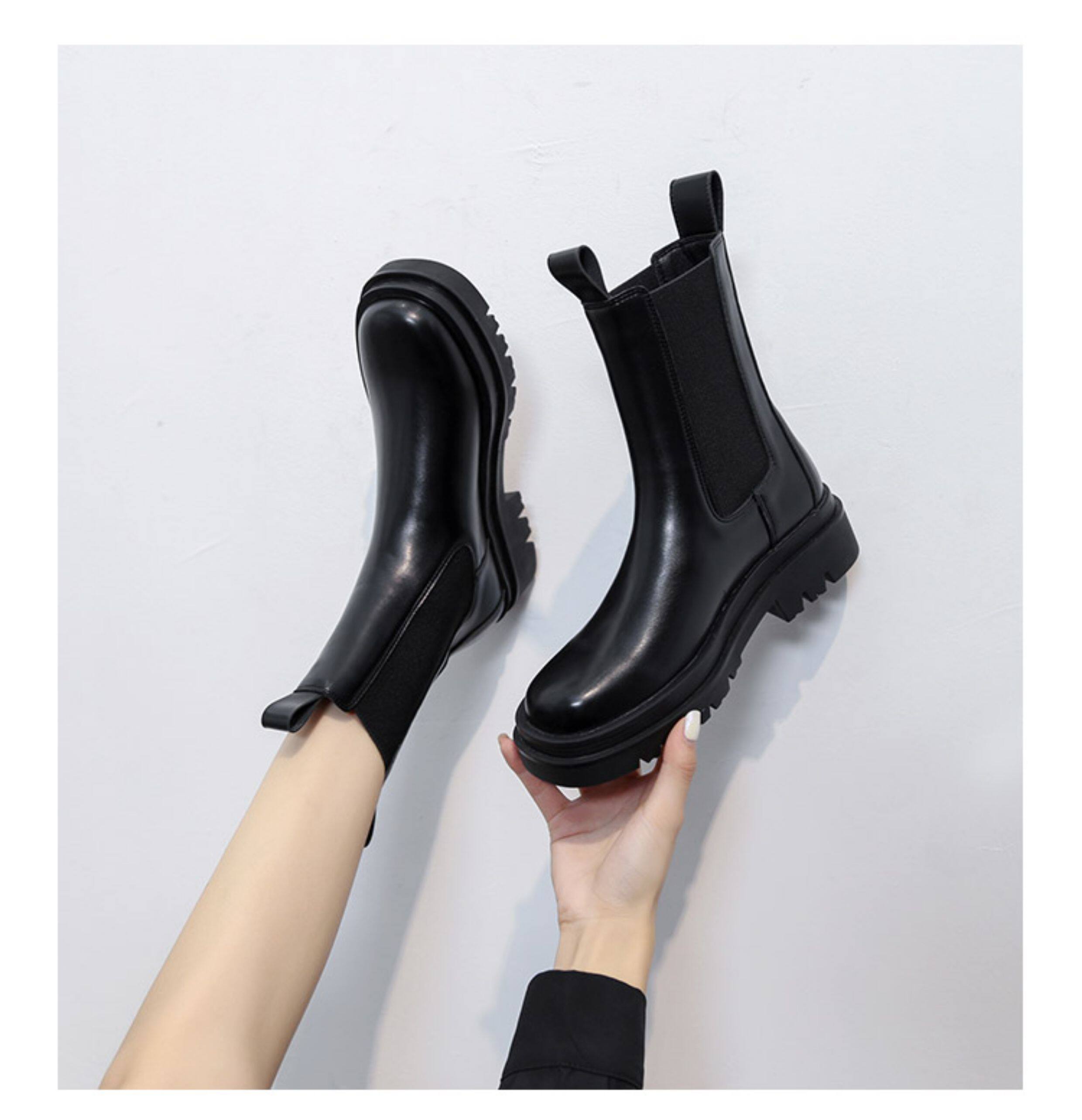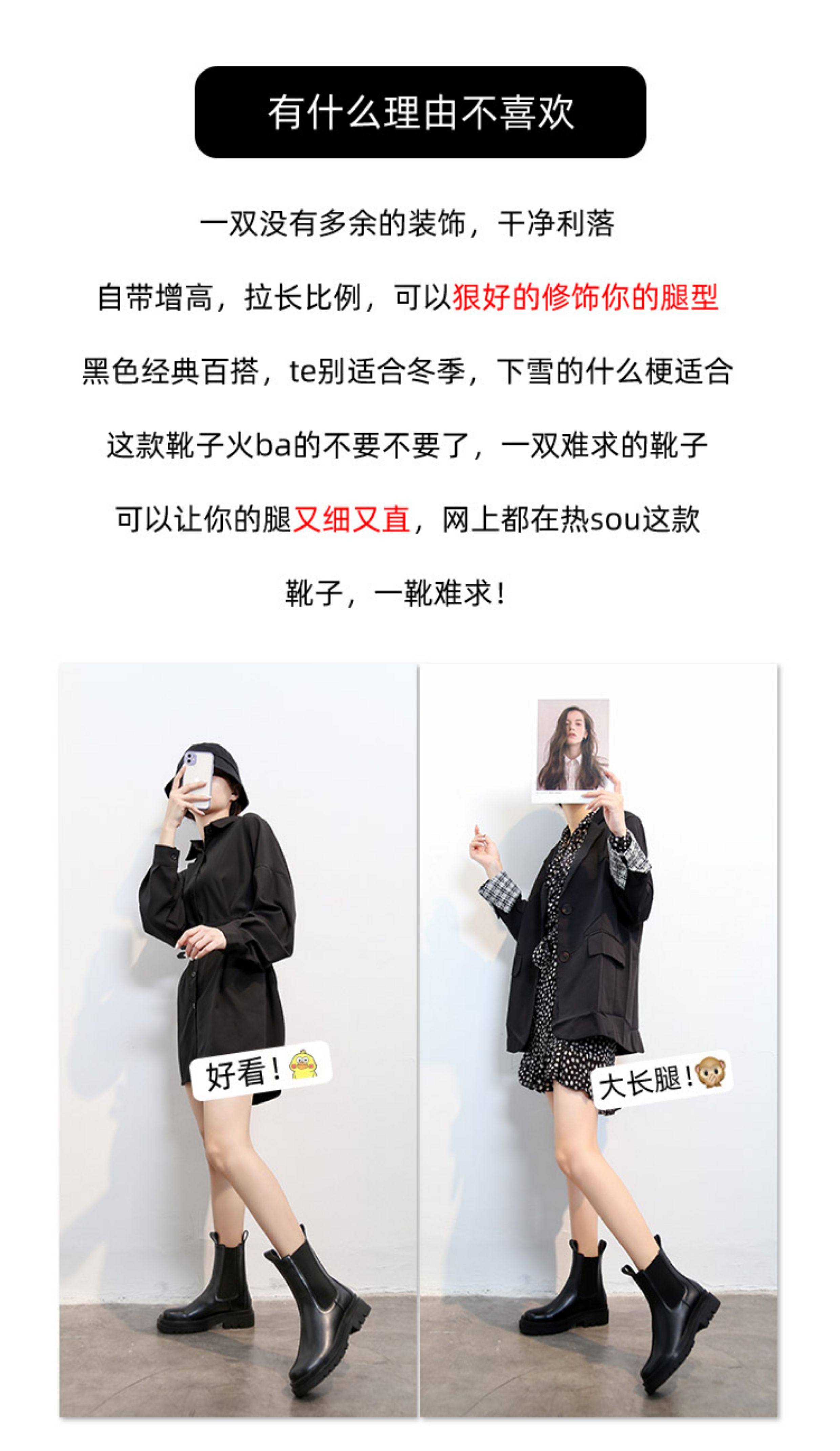 mona同款菸筒馬丁靴2024新款女春秋中筒英倫風厚底切爾西短靴單靴