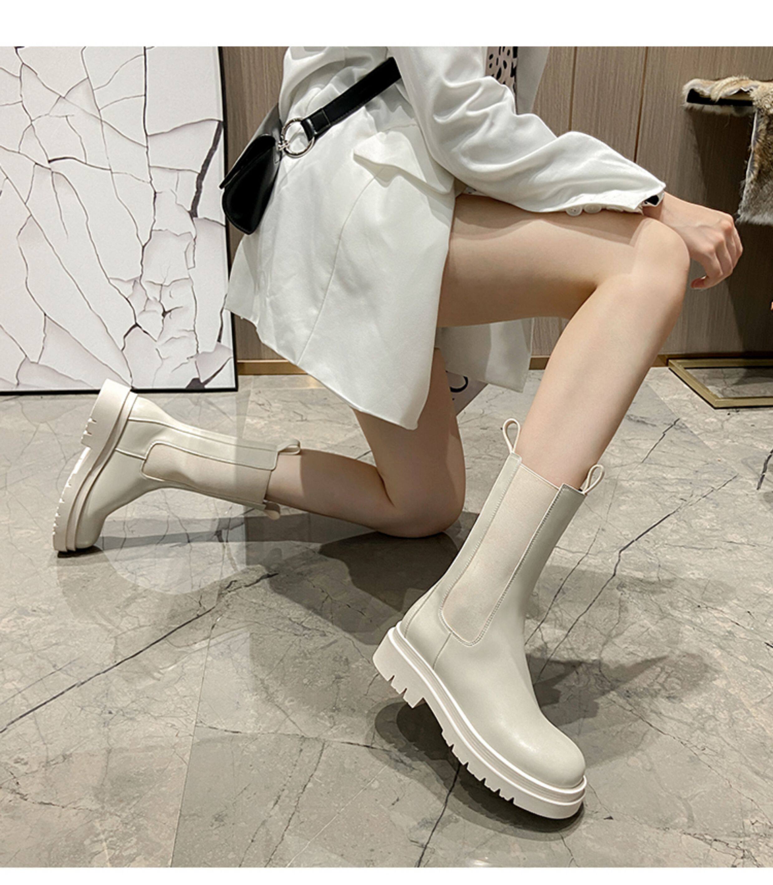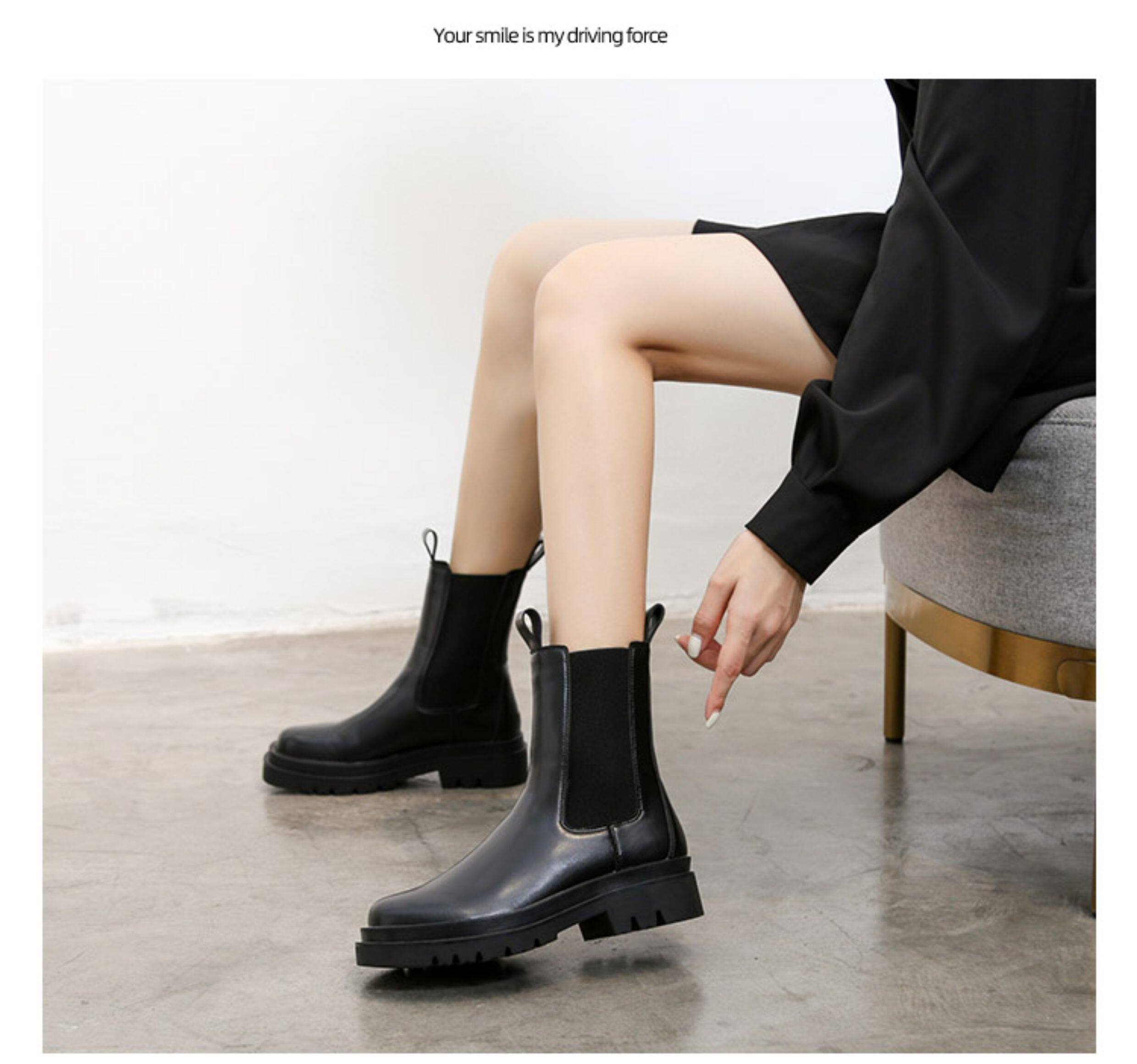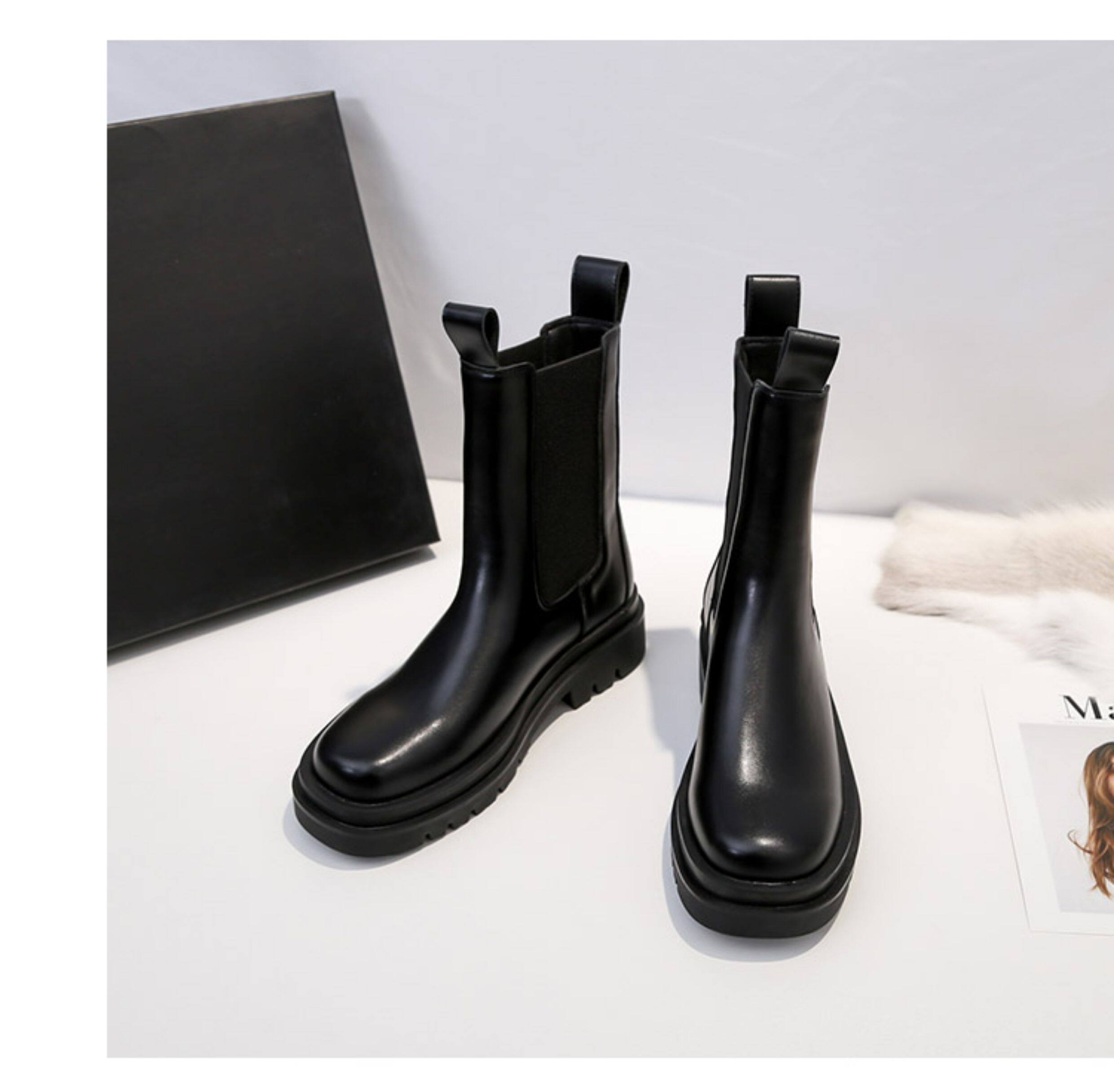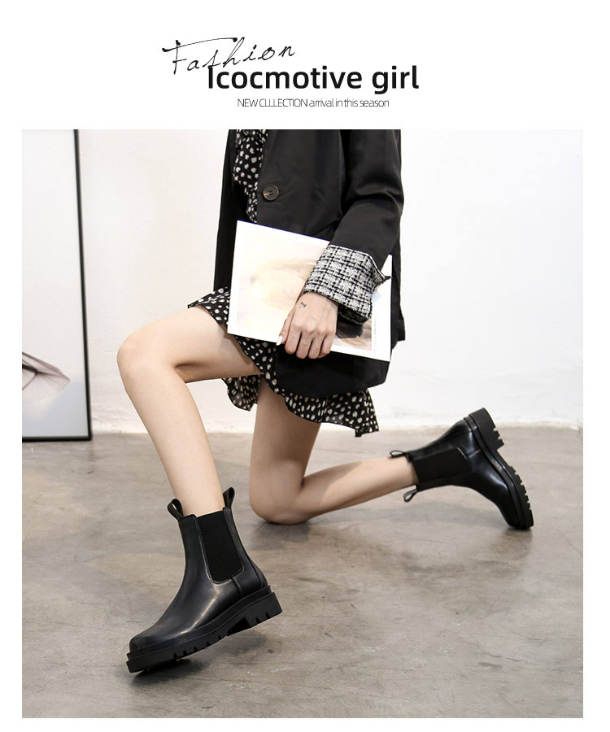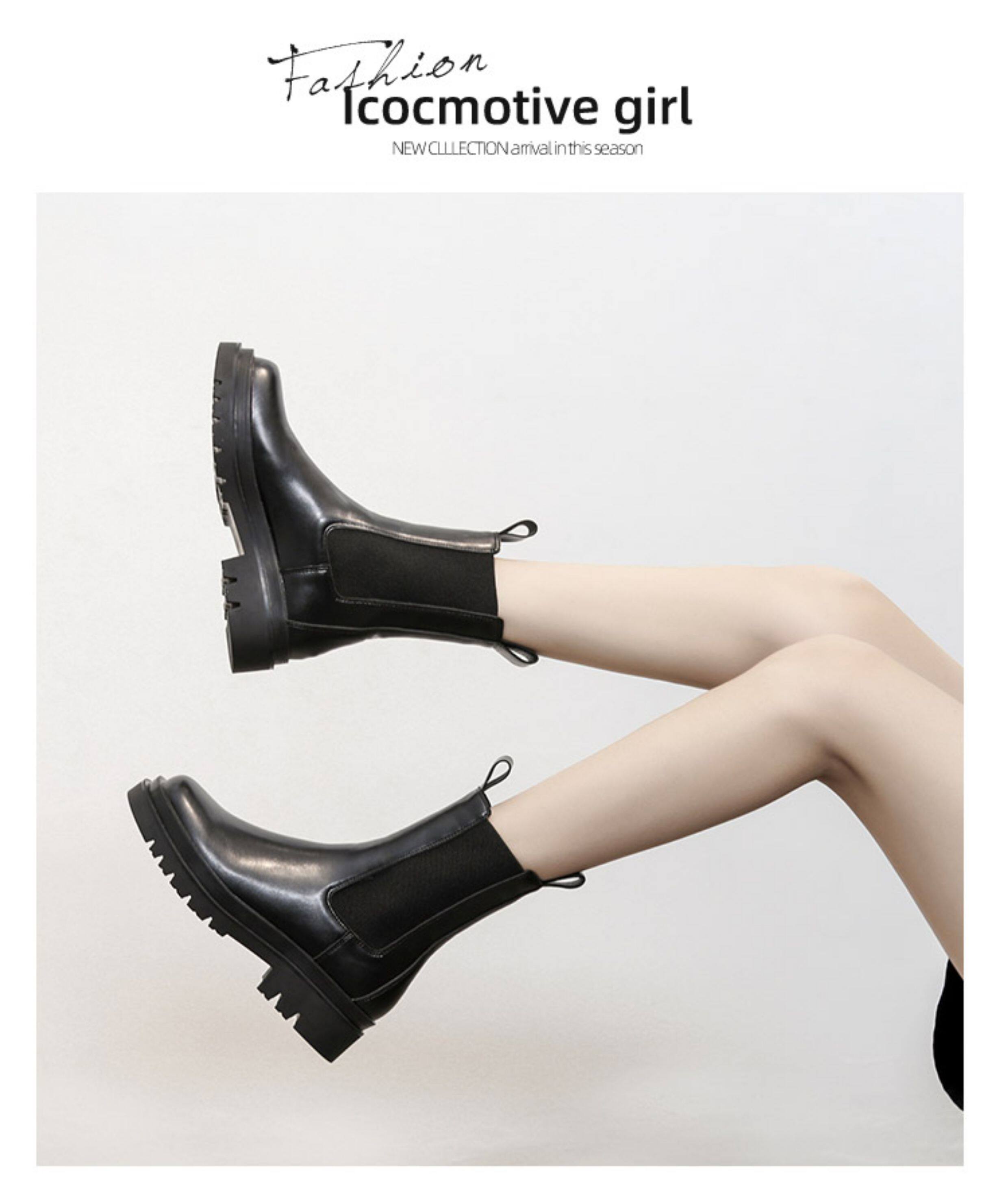 mona同款菸筒馬丁靴2024新款女春秋中筒英倫風厚底切爾西短靴單靴