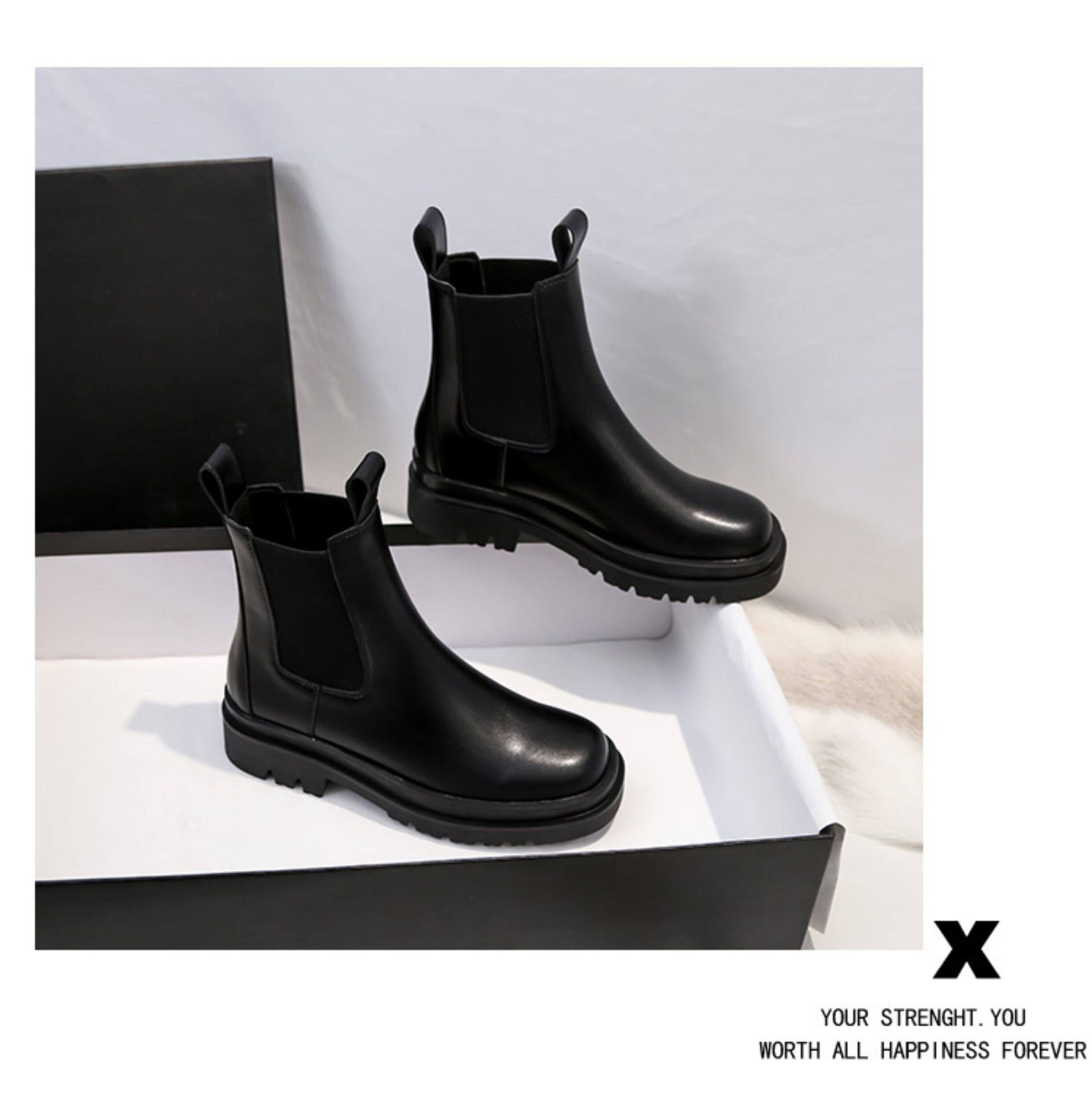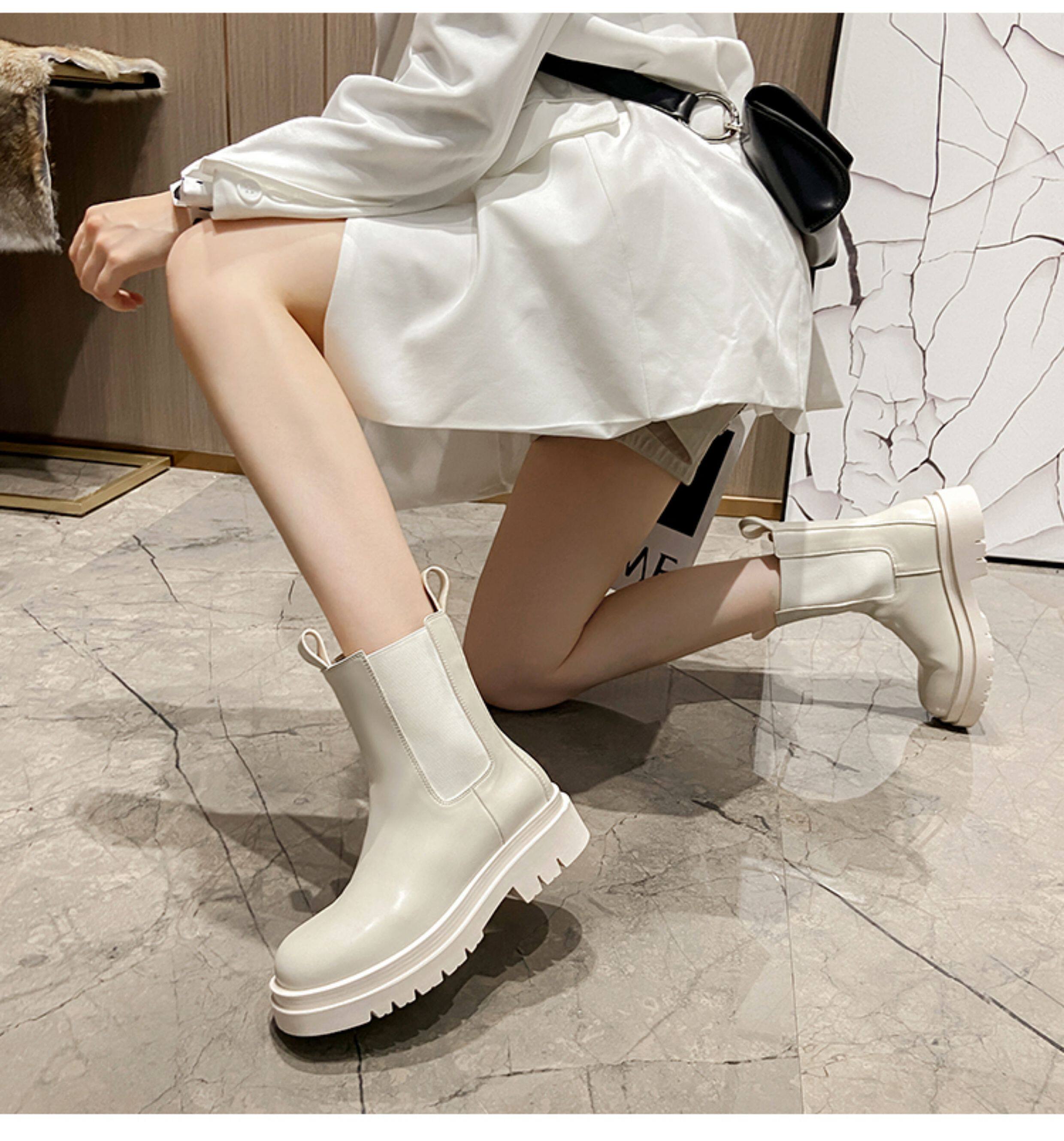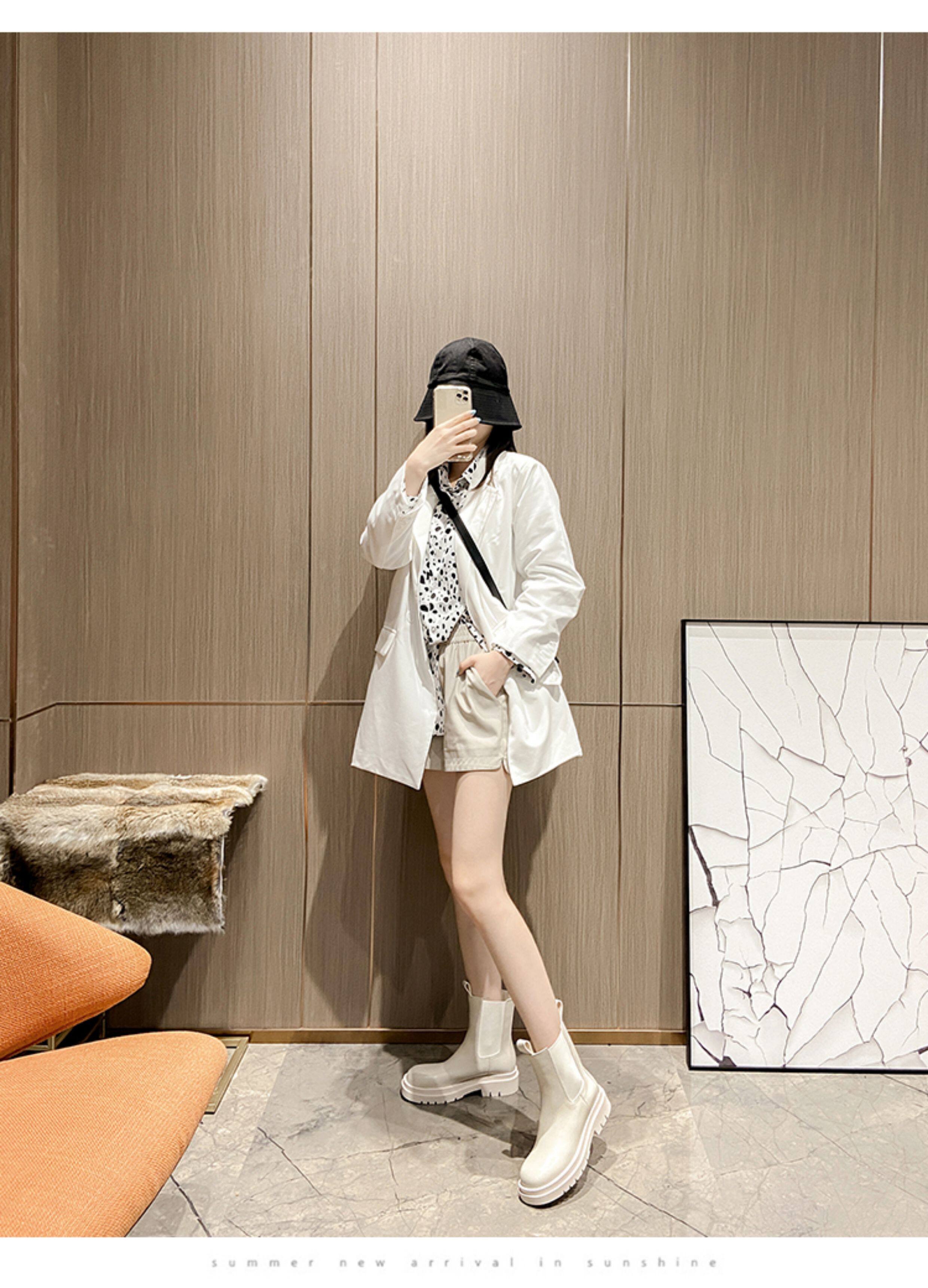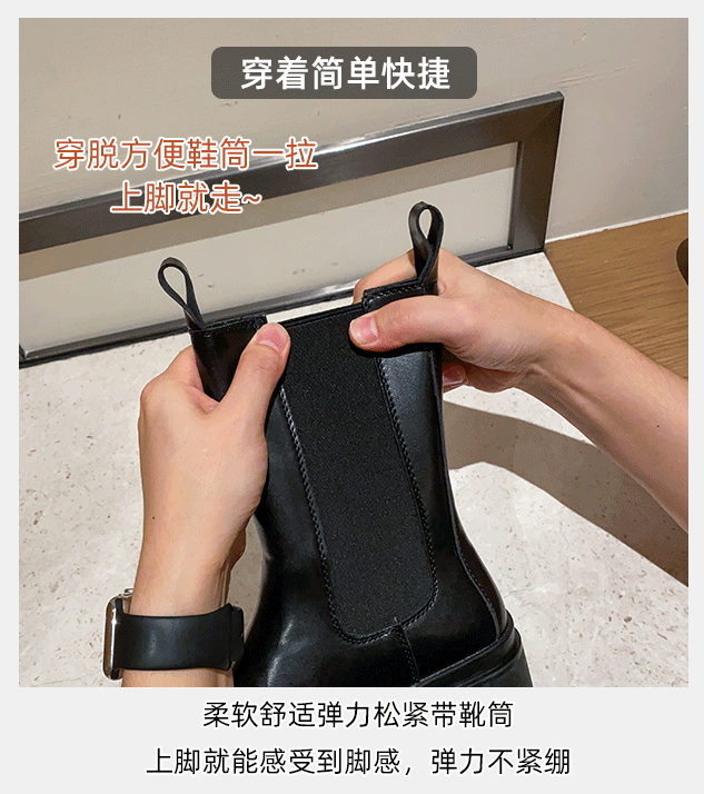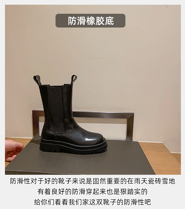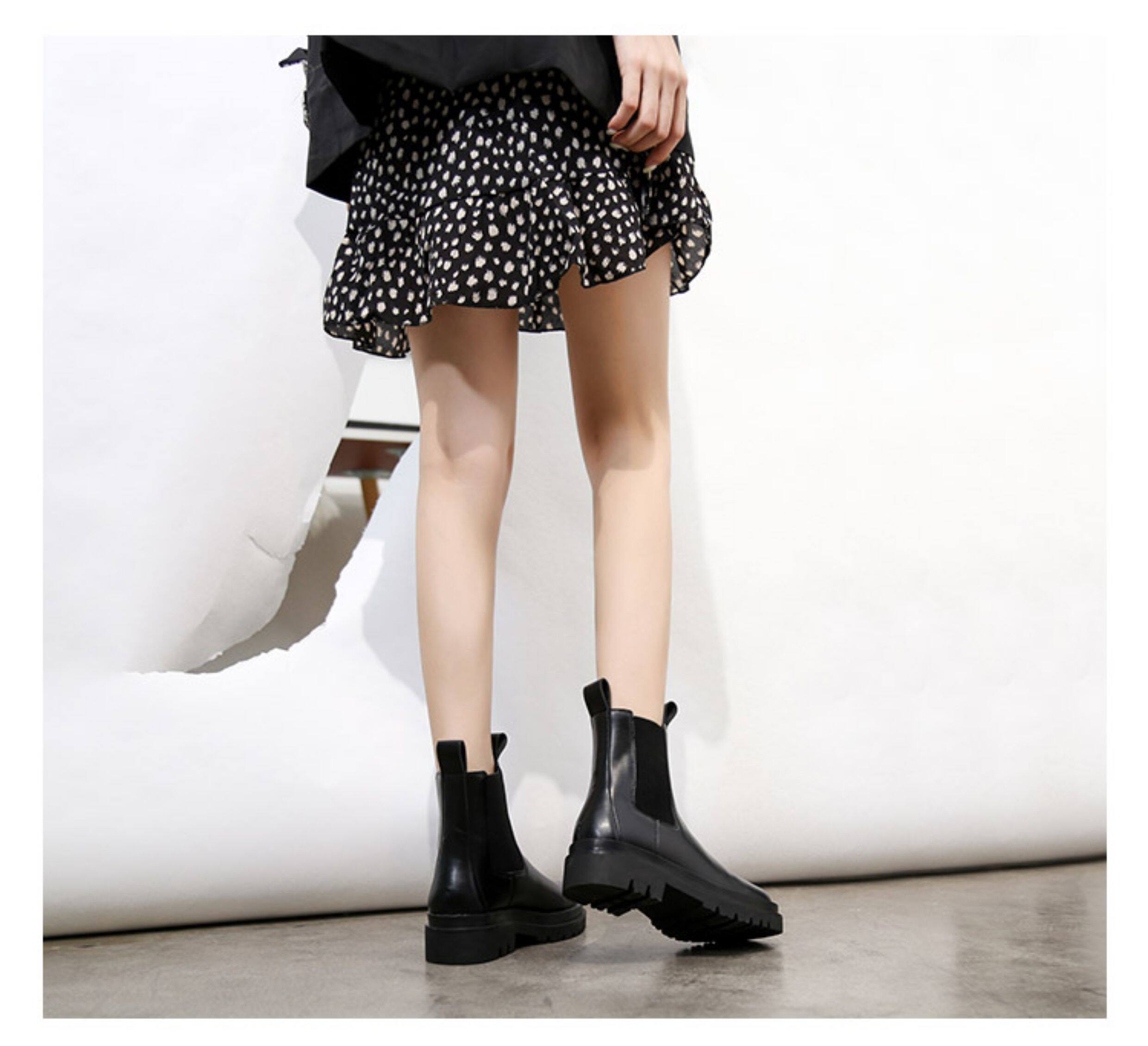 mona同款菸筒馬丁靴2024新款女春秋中筒英倫風厚底切爾西短靴單靴