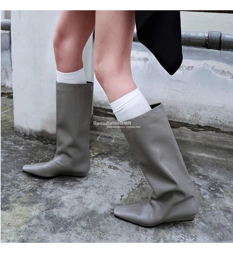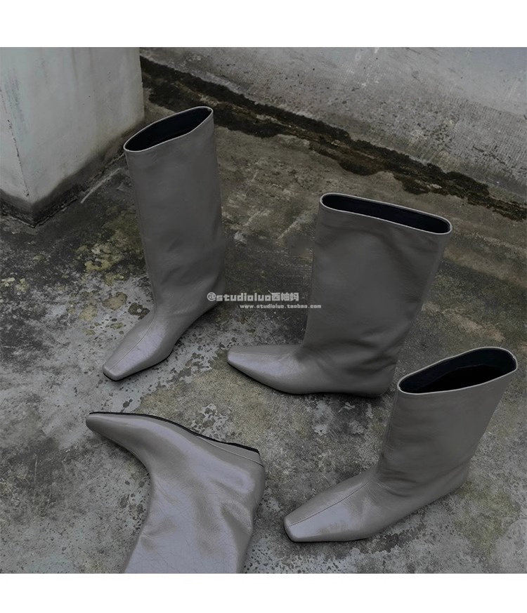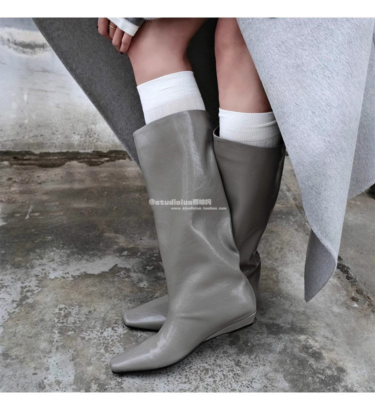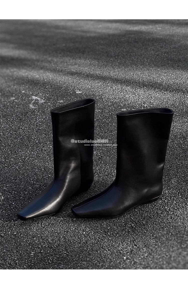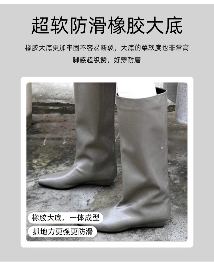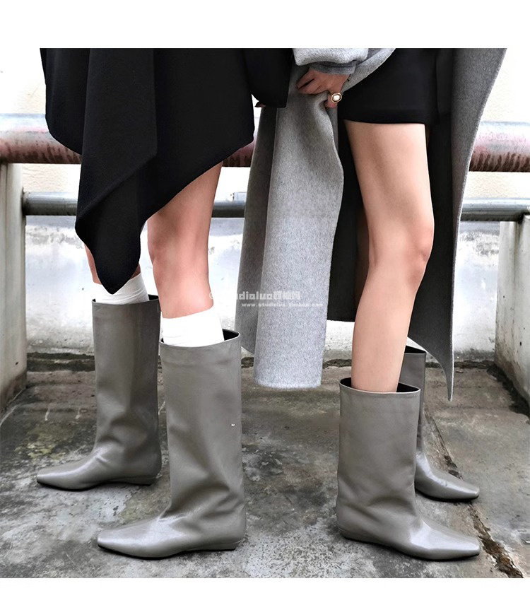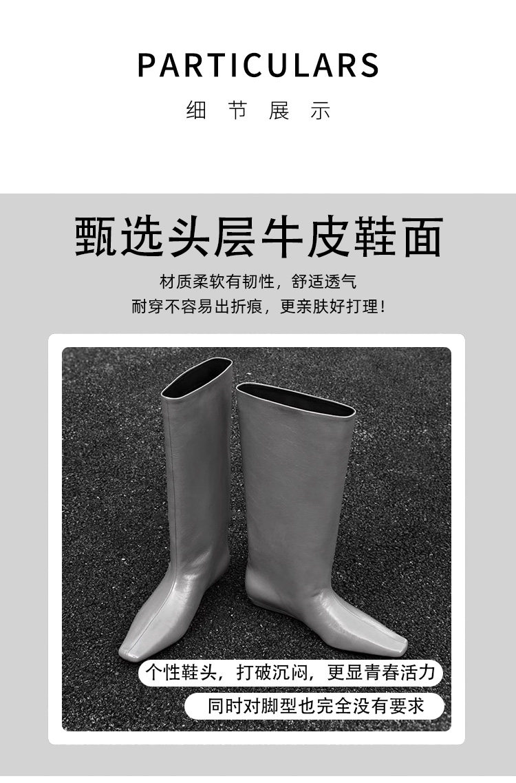 香港真皮百搭氣質低跟騎士靴女2026春秋韓版簡約方頭套筒中筒靴子