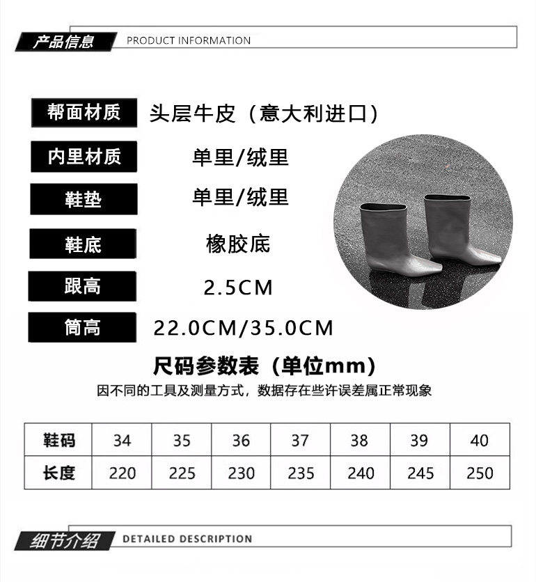 | 靴筒面材質 | 頭層牛皮 |