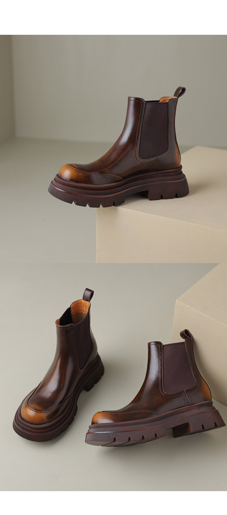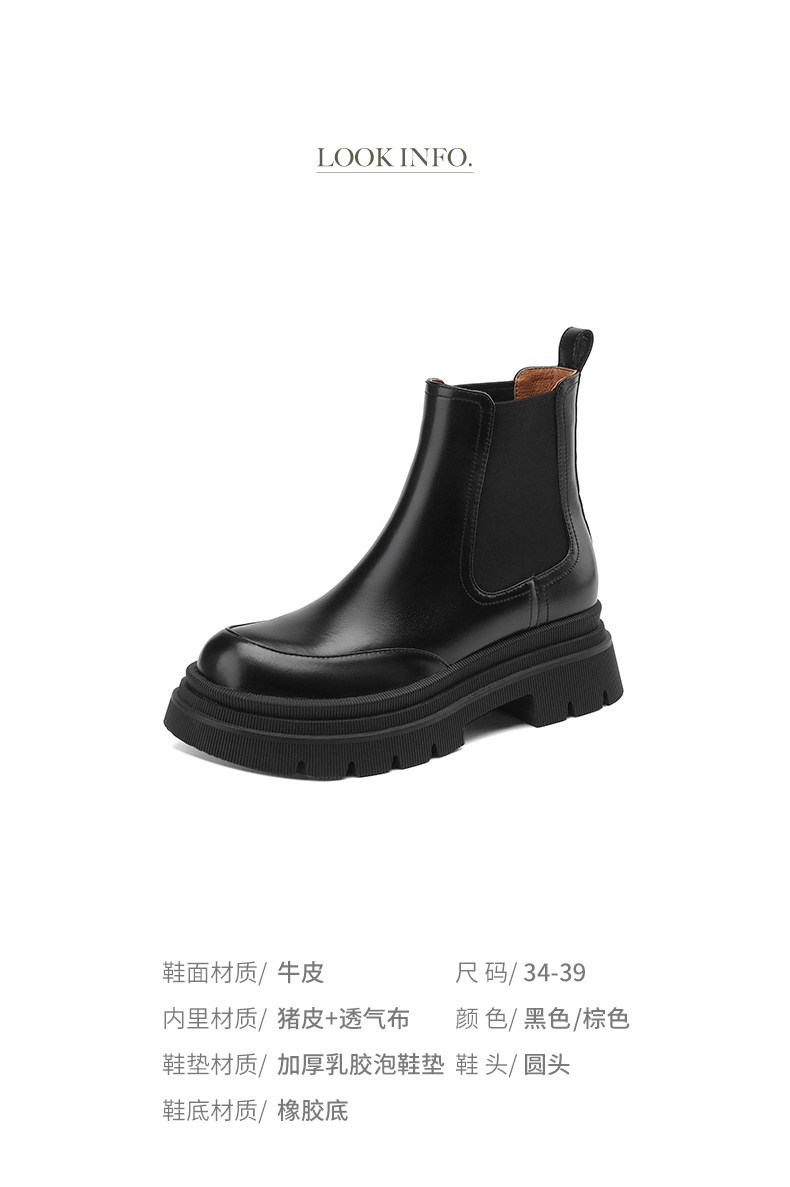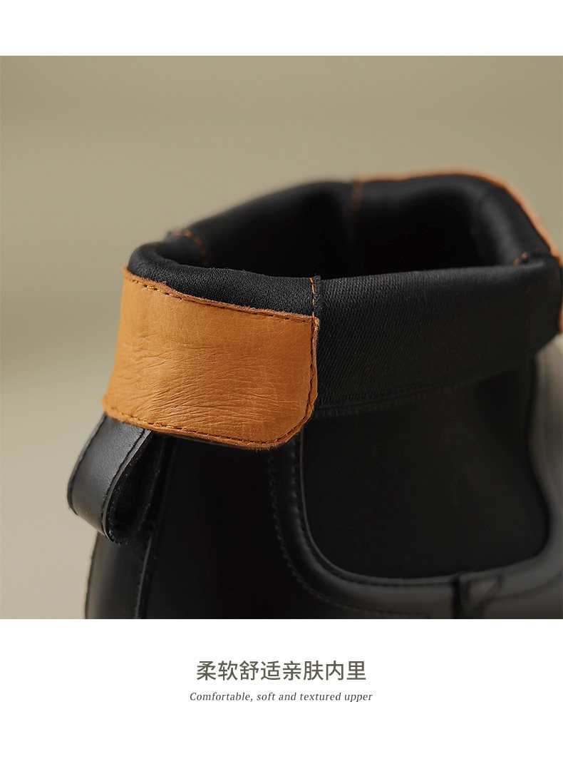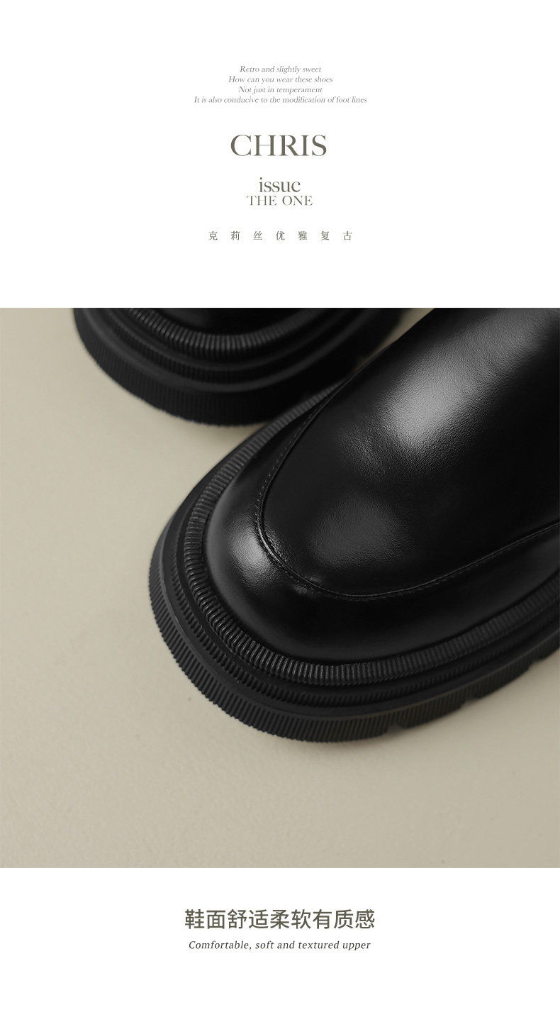 Kmeizu擦色厚底短靴女秋冬馬丁靴真皮菸筒靴真皮機車靴切爾西踝靴