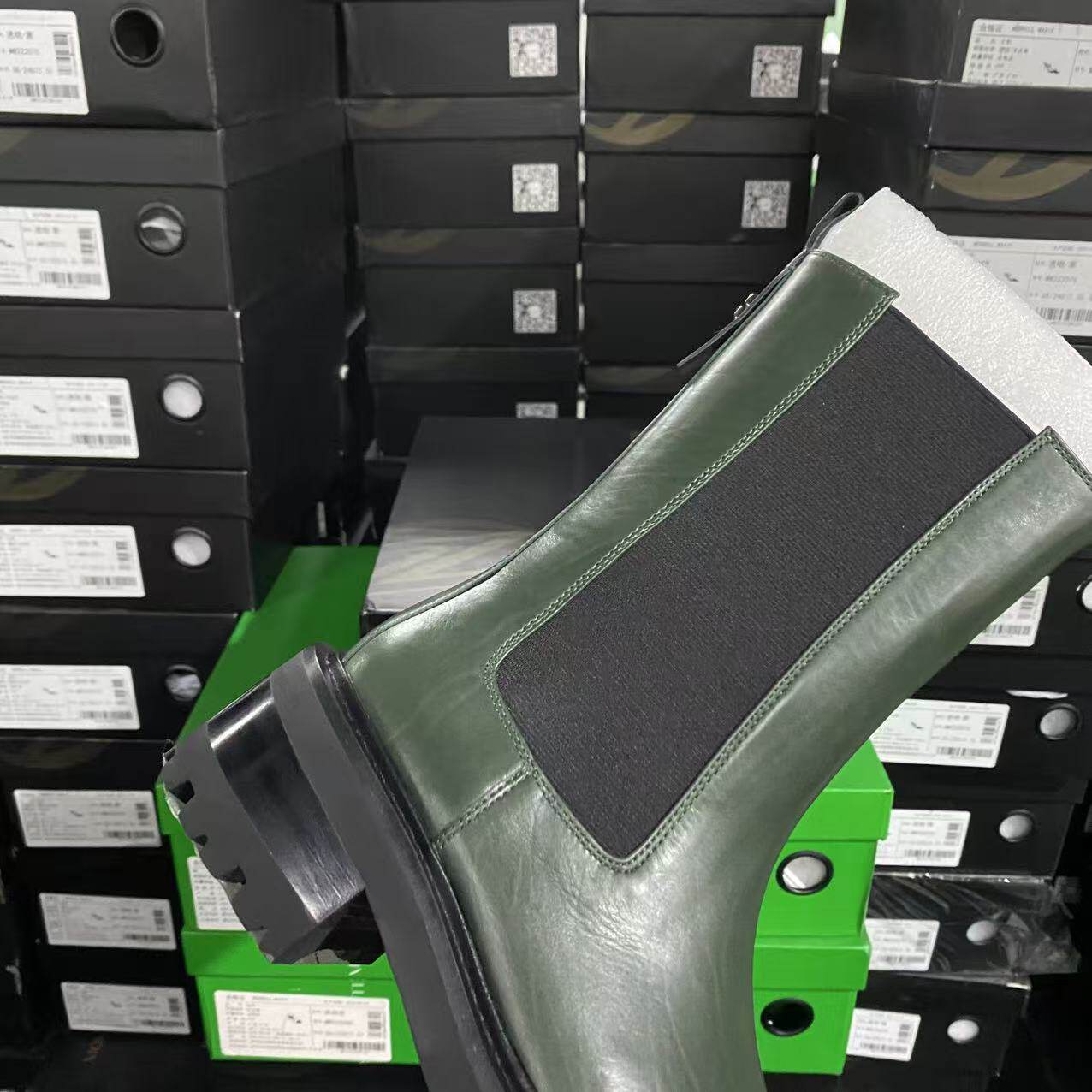 美國設計師買手高奢品牌K牛皮英倫風厚底長筒菸琯靴4144墨綠色
