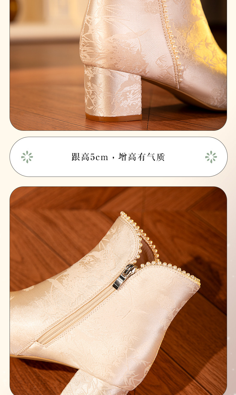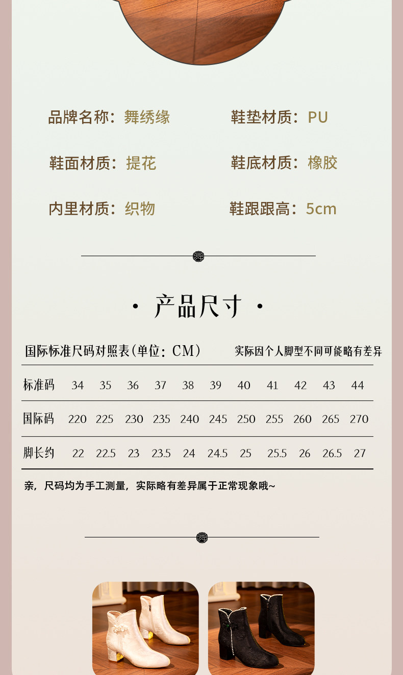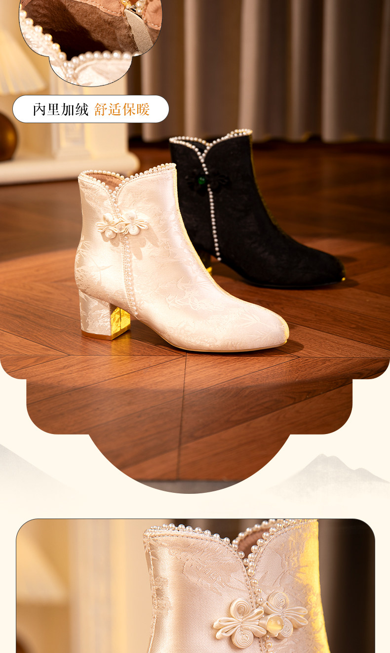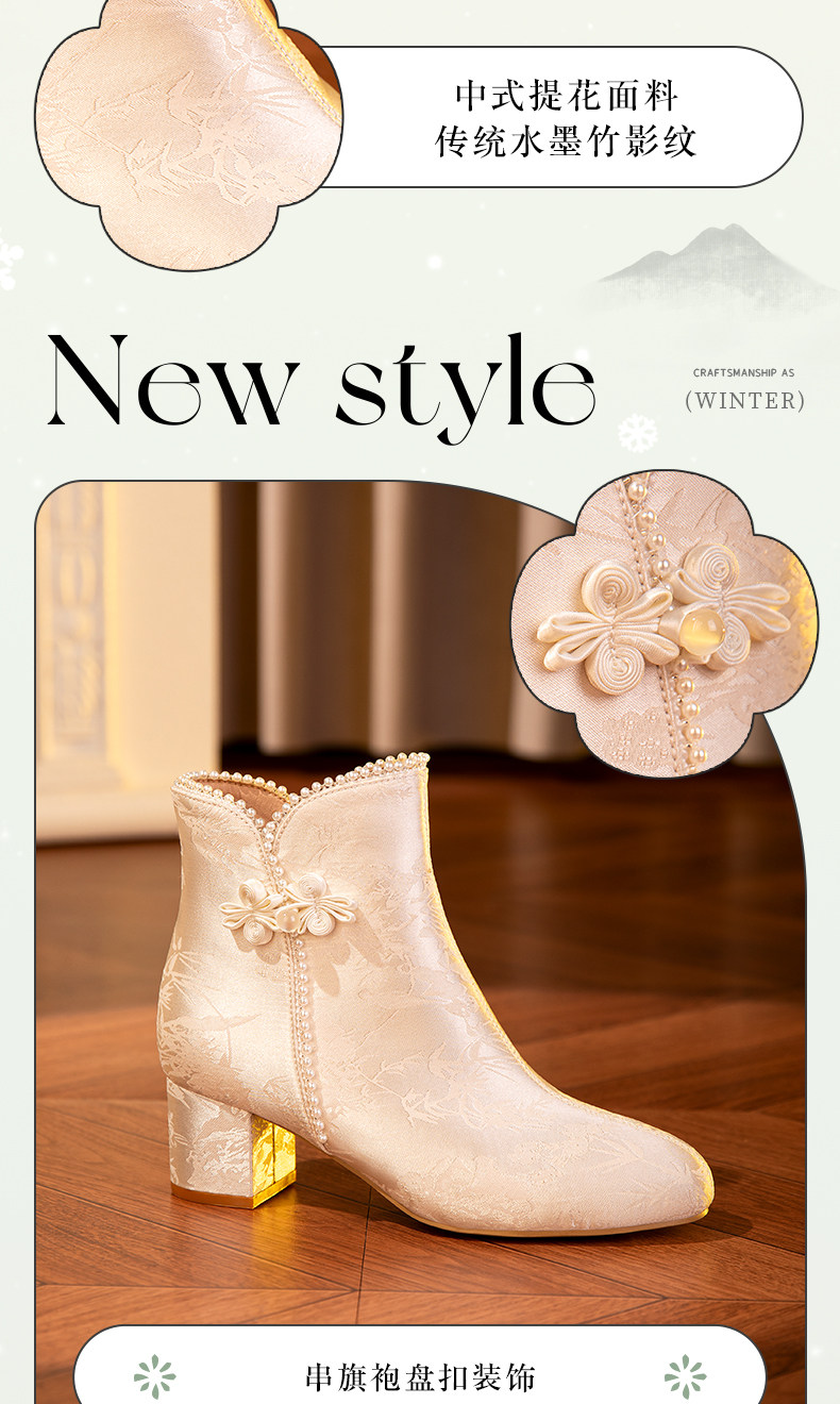 舞綉緣新中式復古搭配旗袍短靴女粗跟女靴百搭時裝靴國風宴會靴子