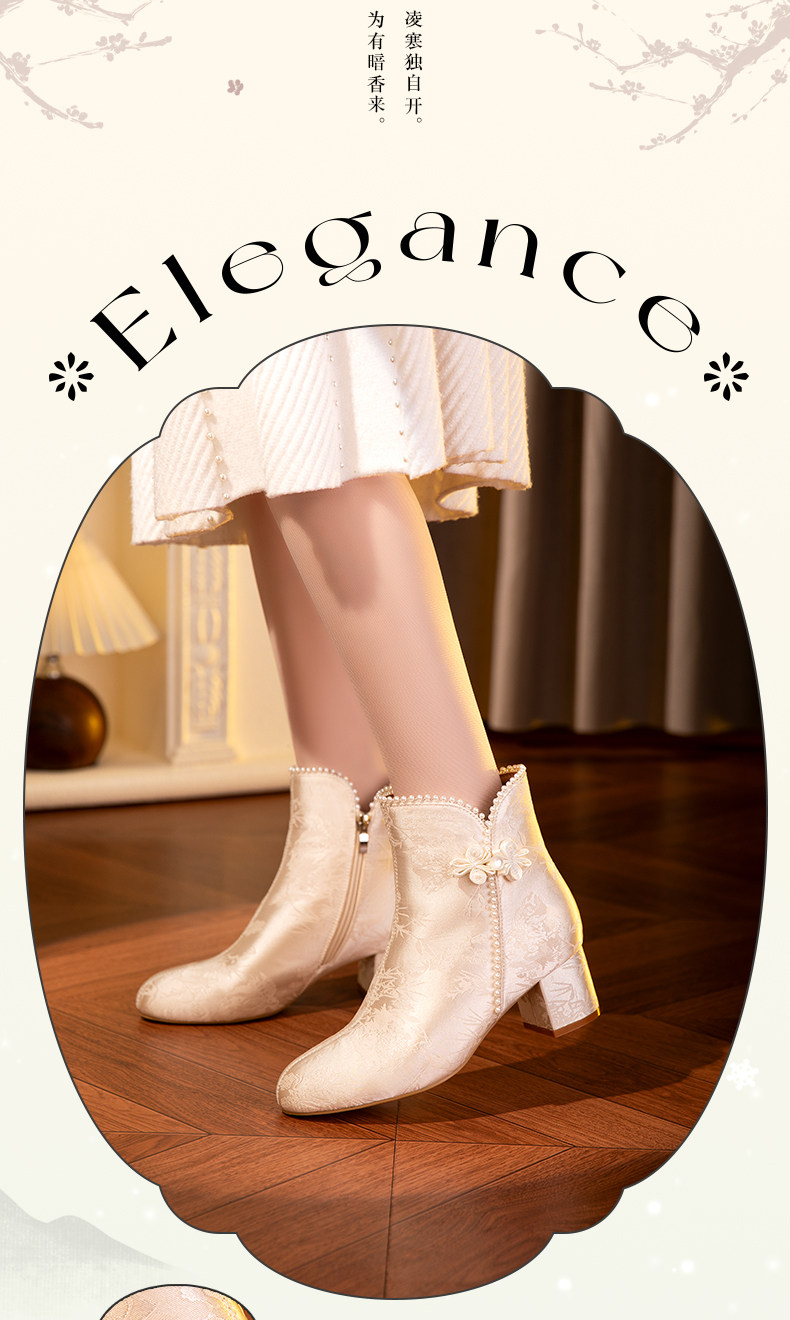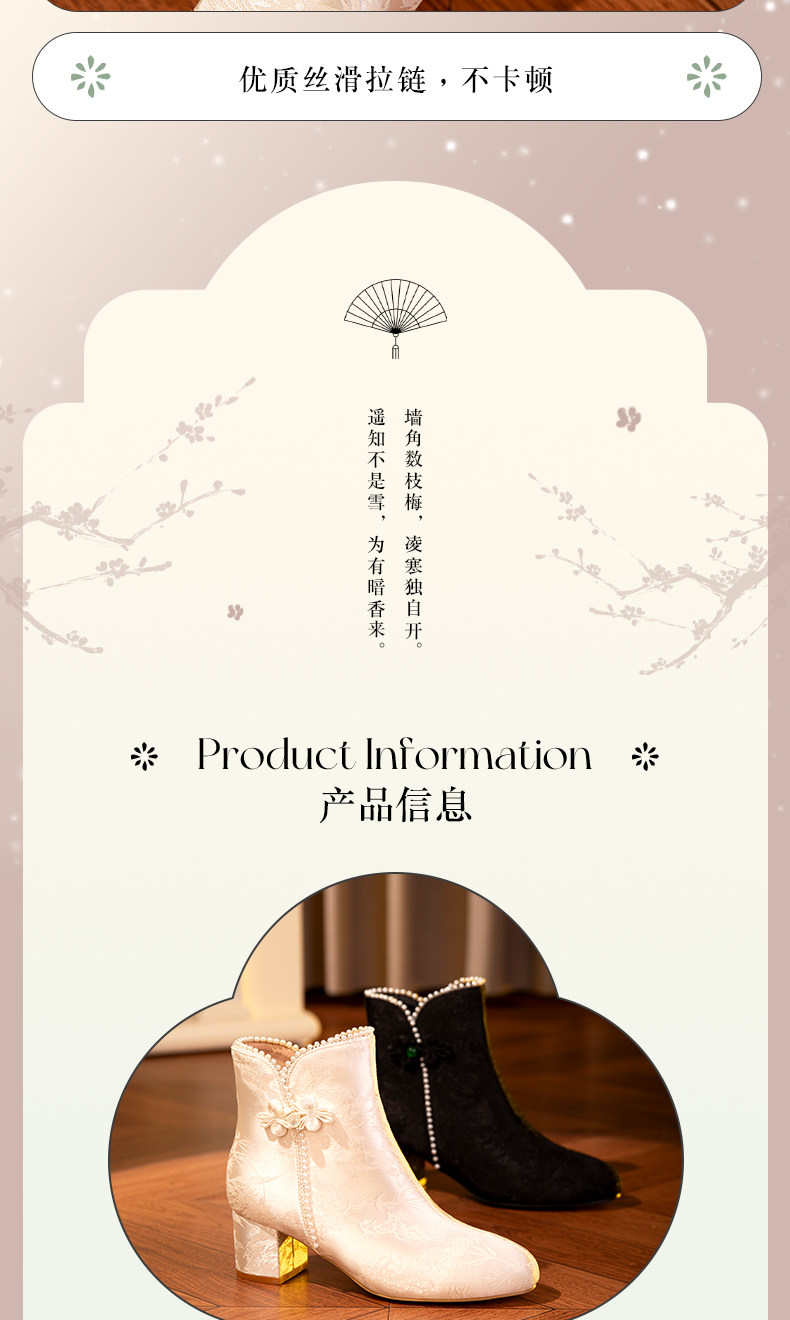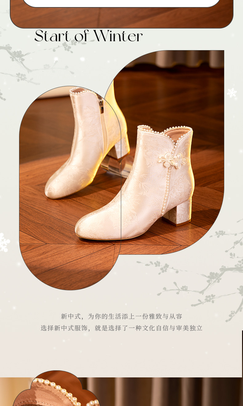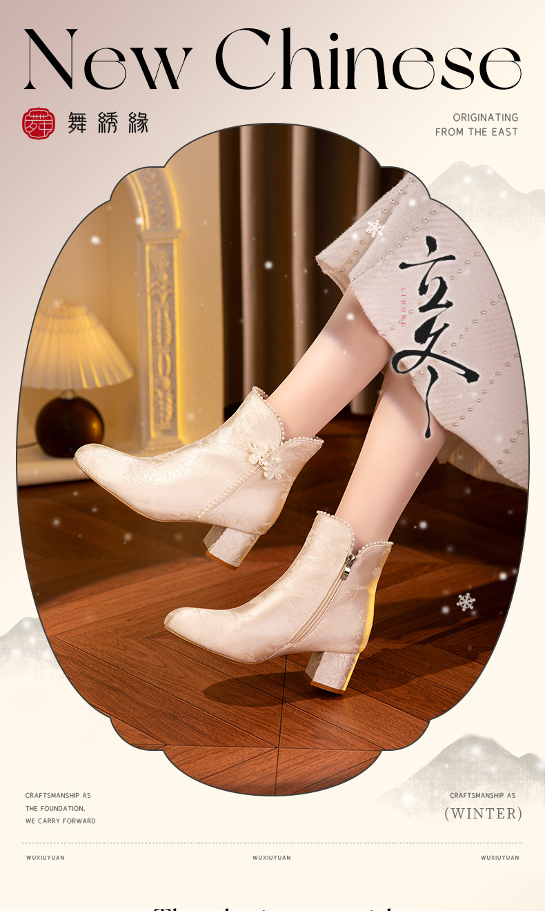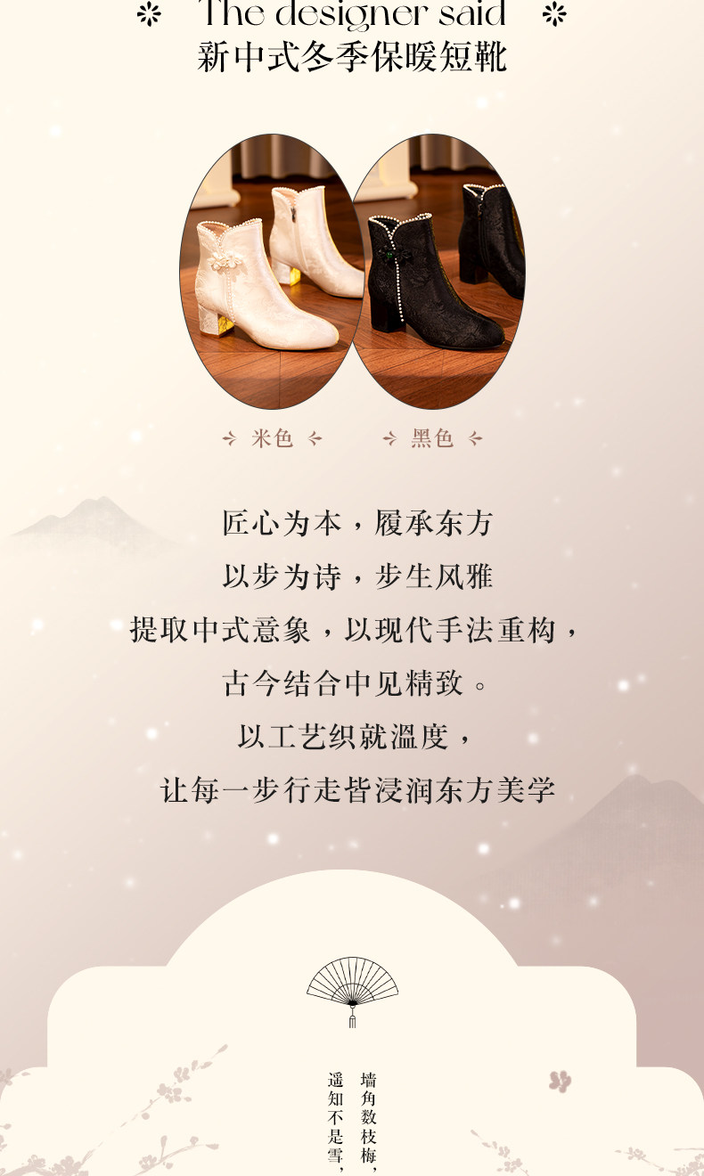 舞綉緣新中式復古搭配旗袍短靴女粗跟女靴百搭時裝靴國風宴會靴子
