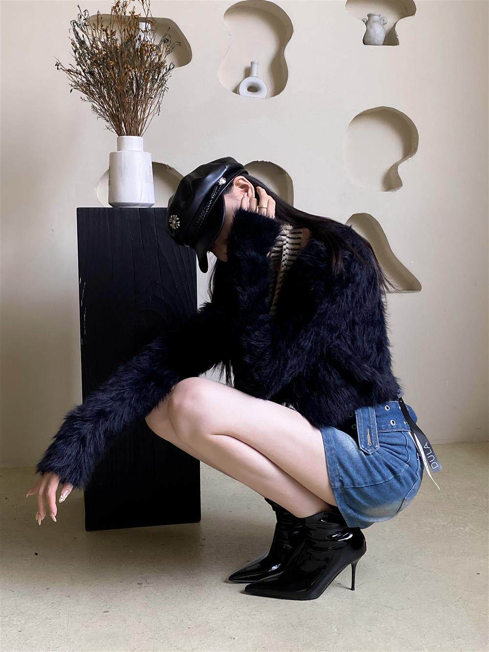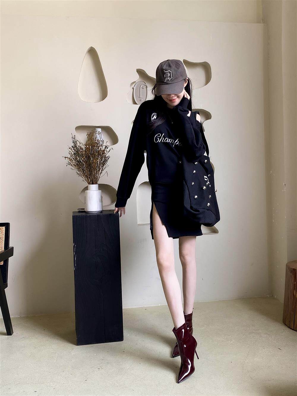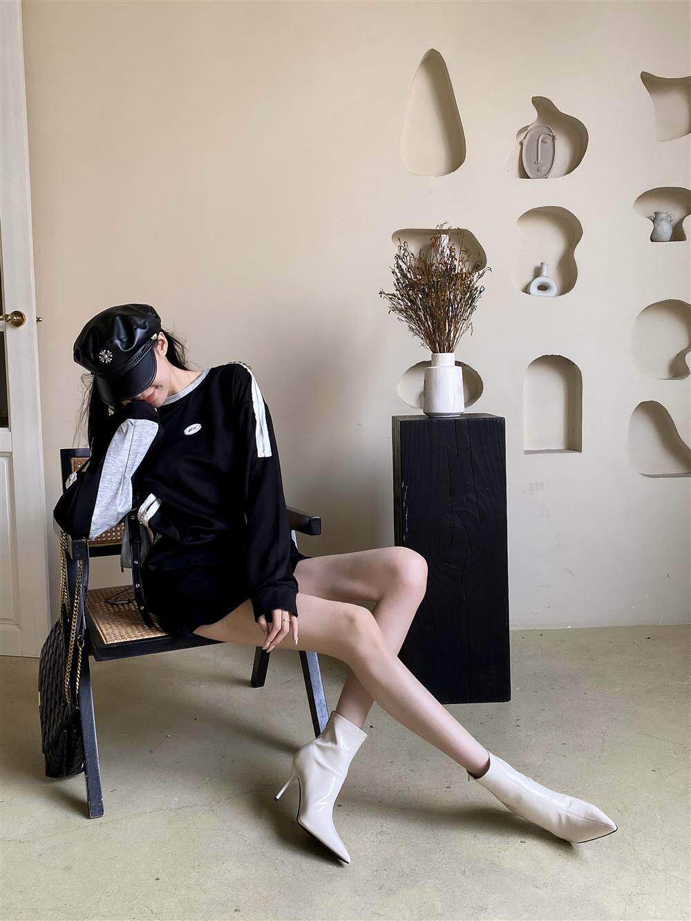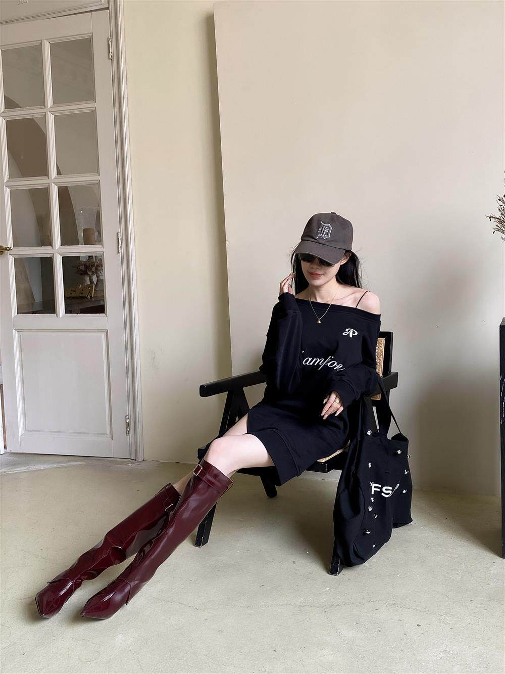 2025歐美風尖頭高跟漆皮亮面皮帶釦高筒不過膝長靴騎士靴女馬丁靴