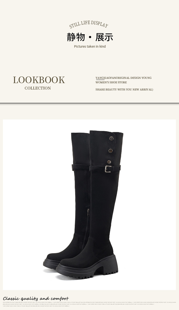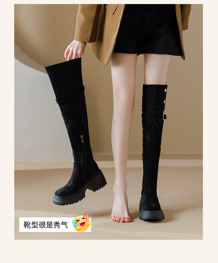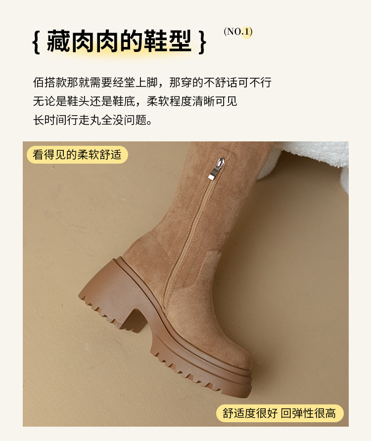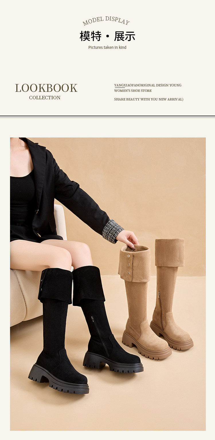 34~43碼美拉德兩穿繙折高跟過膝靴子大筒圍胖mm加寬長筒騎士靴女