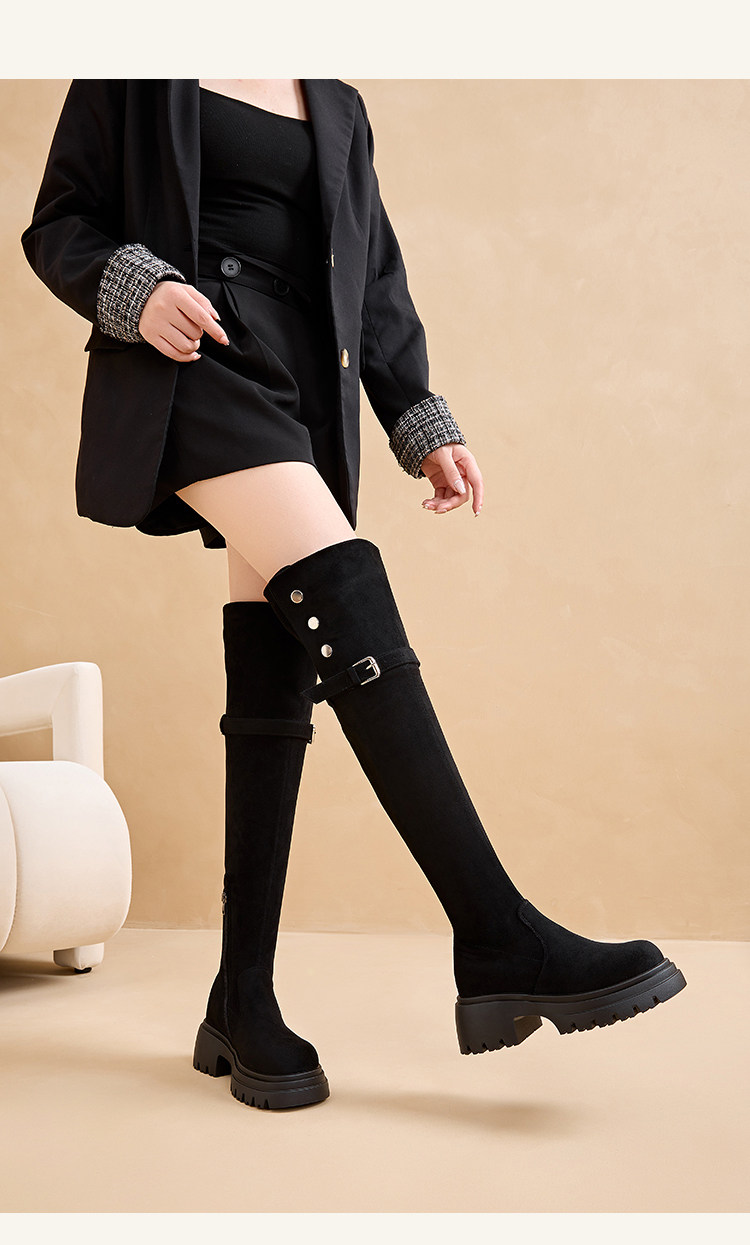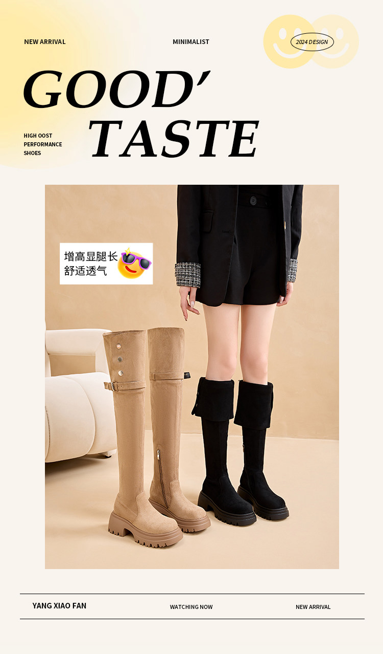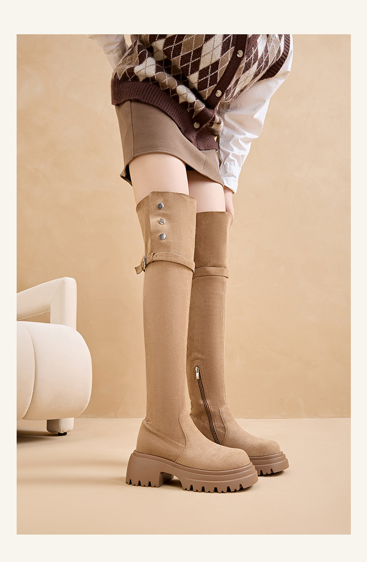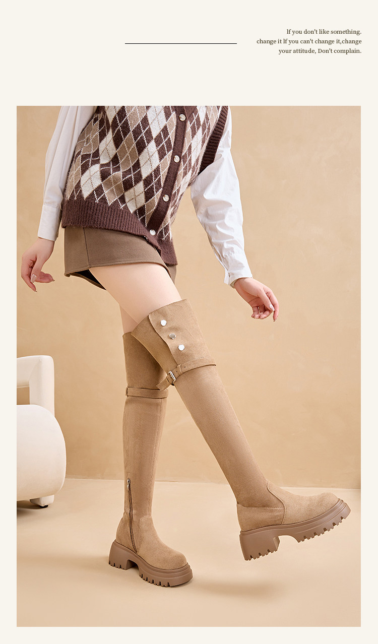 34~43碼美拉德兩穿繙折高跟過膝靴子大筒圍胖mm加寬長筒騎士靴女