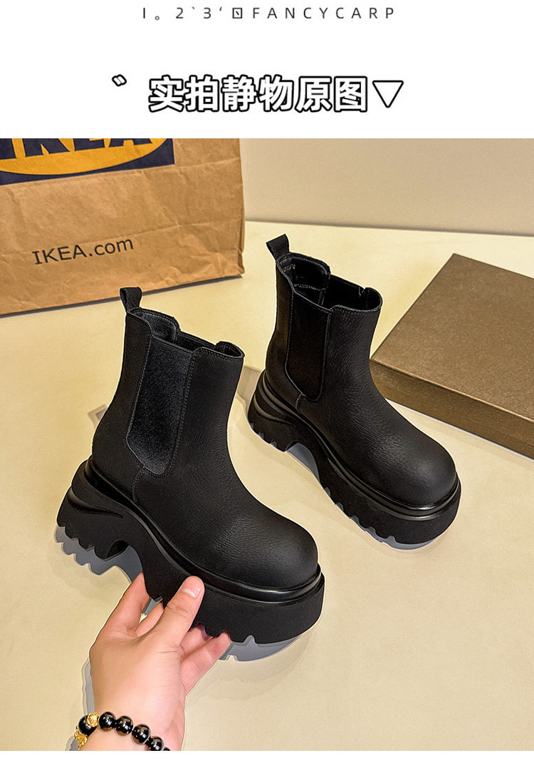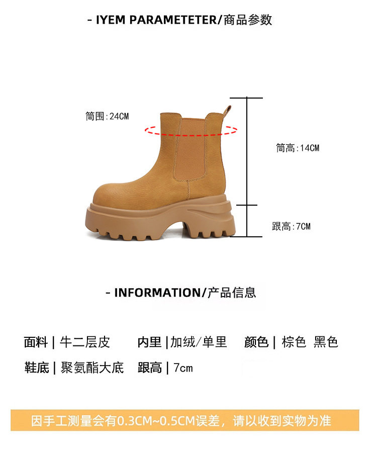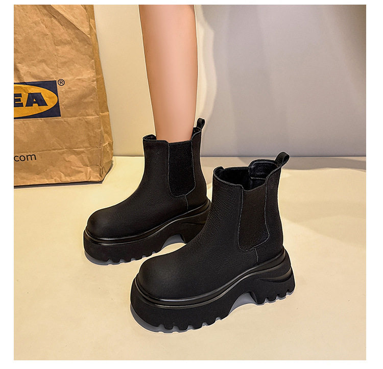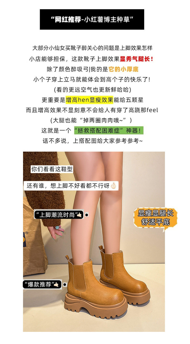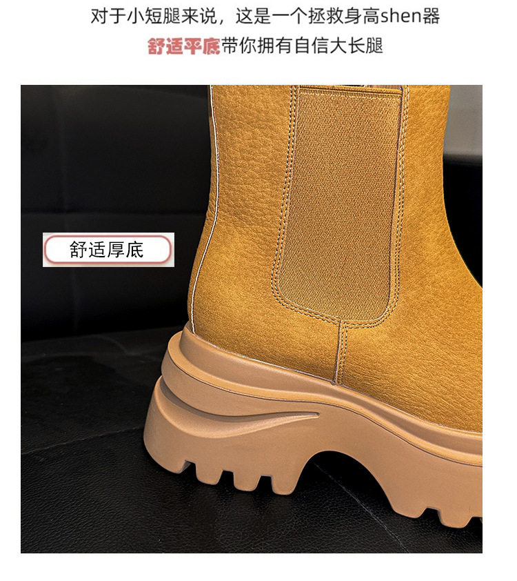 胖腳加寬加肥大碼女鞋時尚厚底增高英倫風百搭休閒牛皮菸琯靴