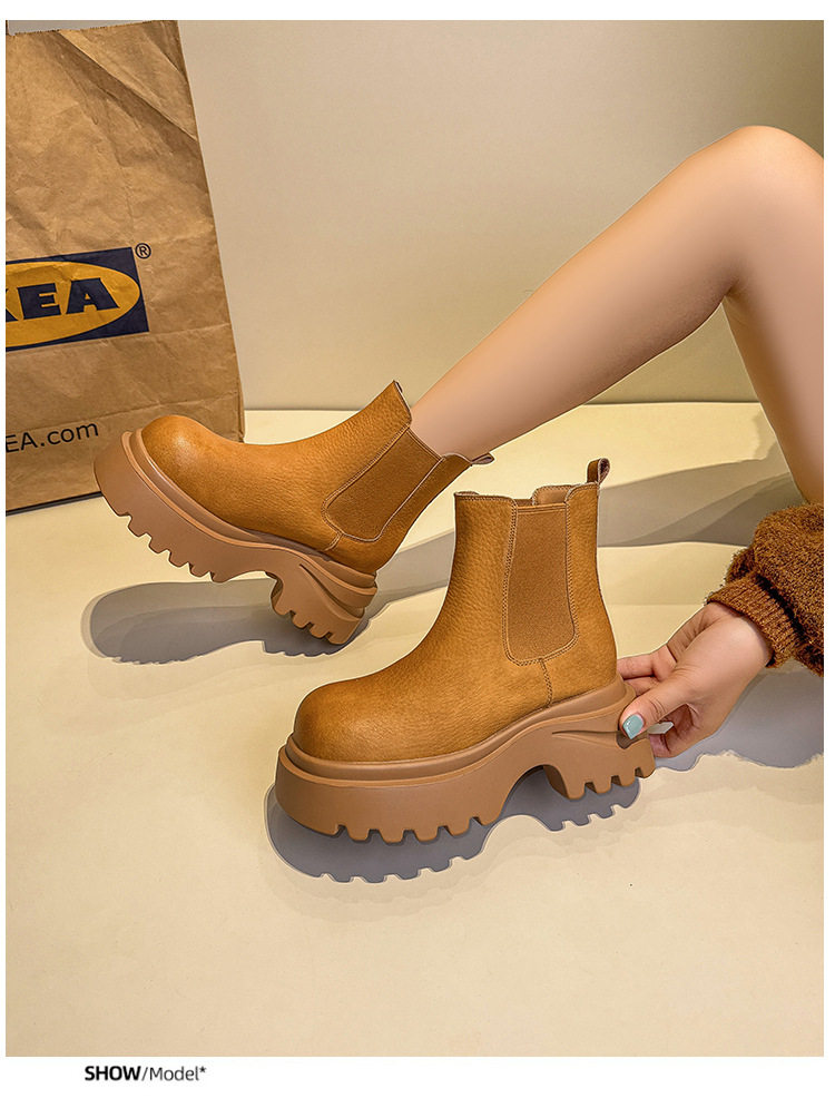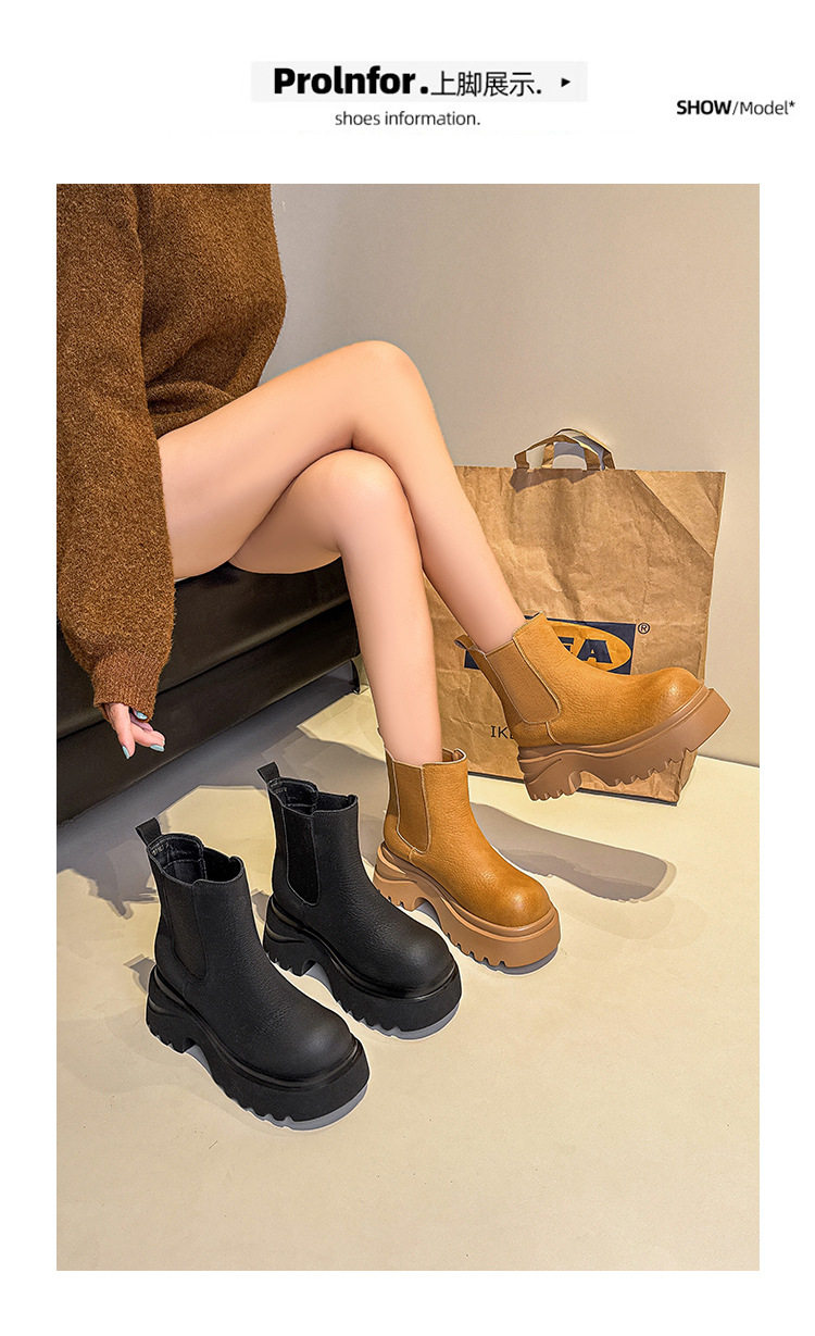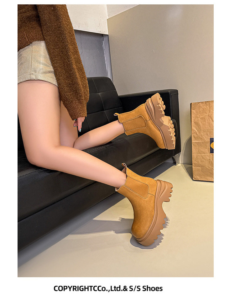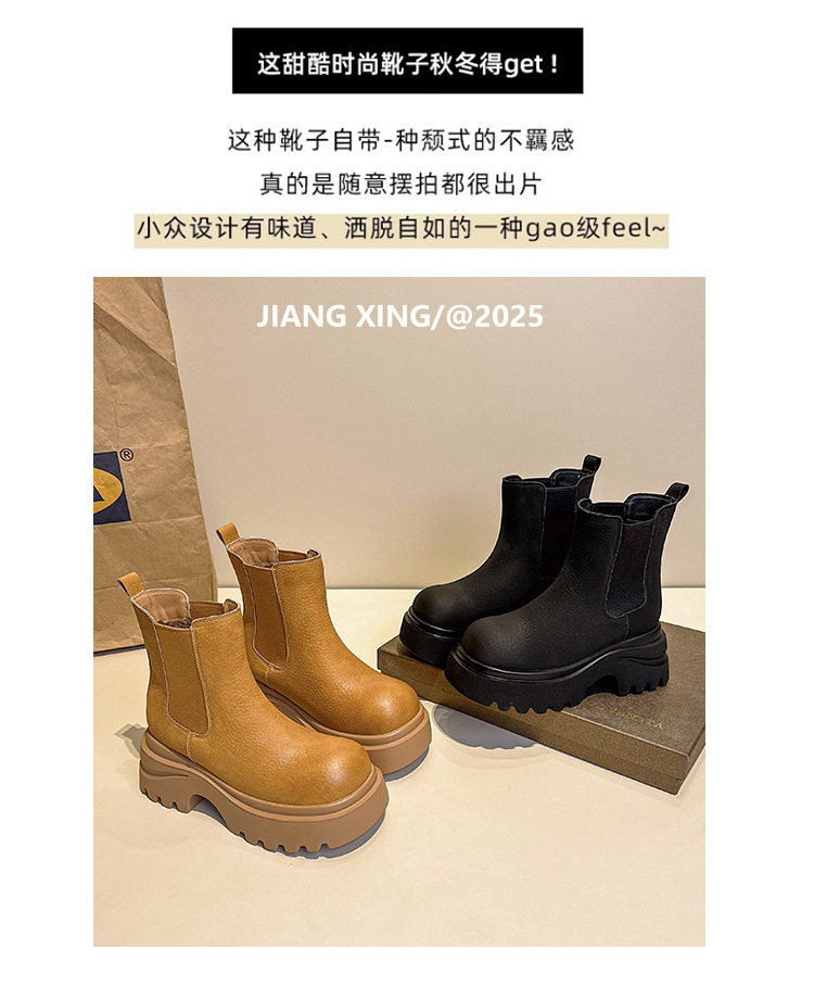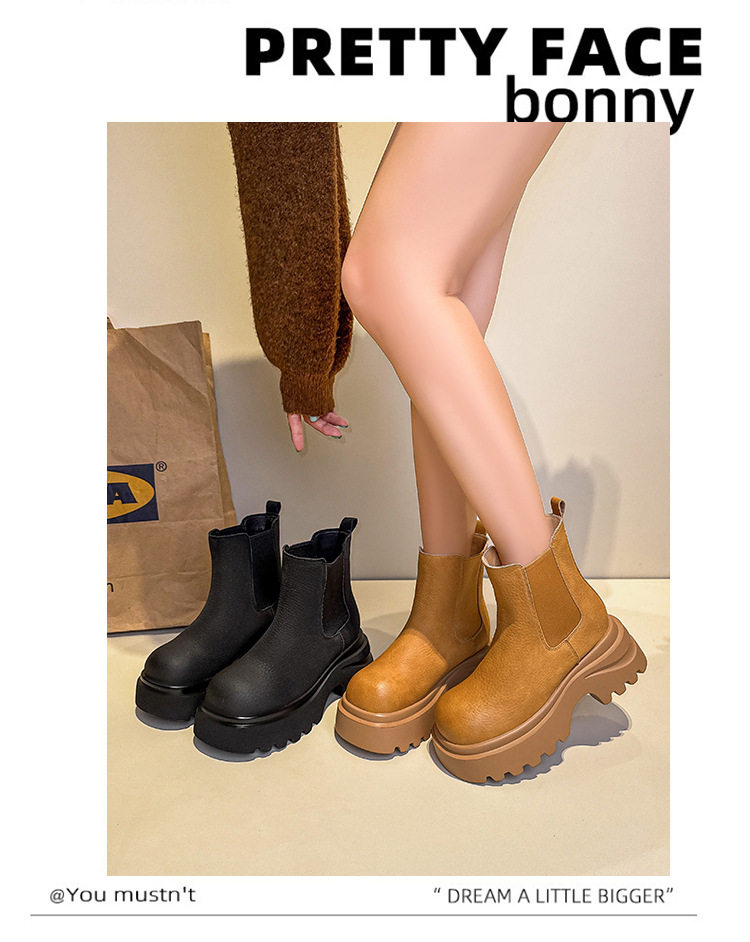 胖腳加寬加肥大碼女鞋時尚厚底增高英倫風百搭休閒牛皮菸琯靴