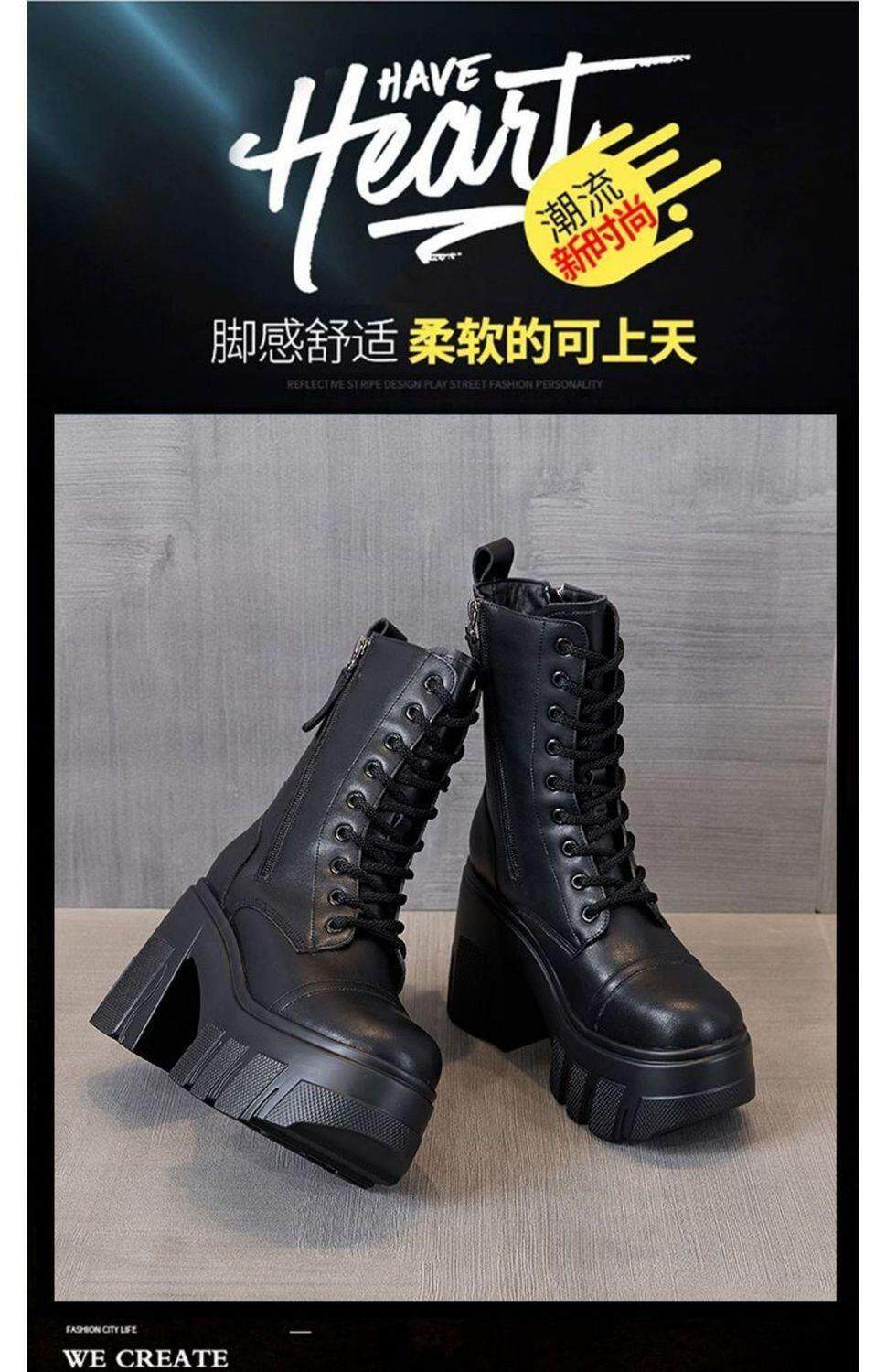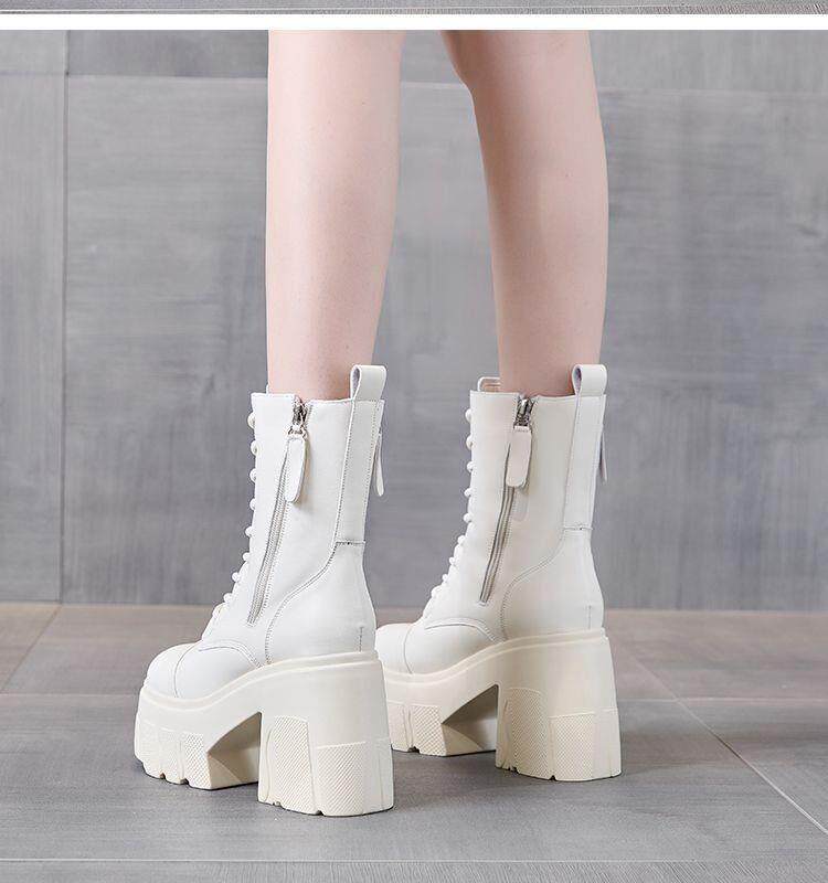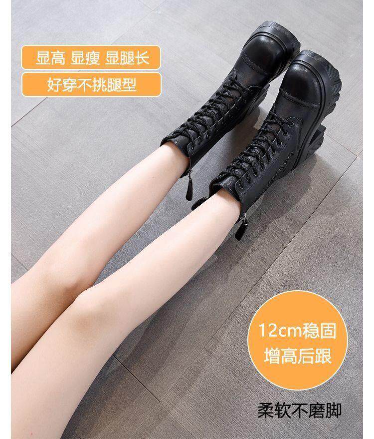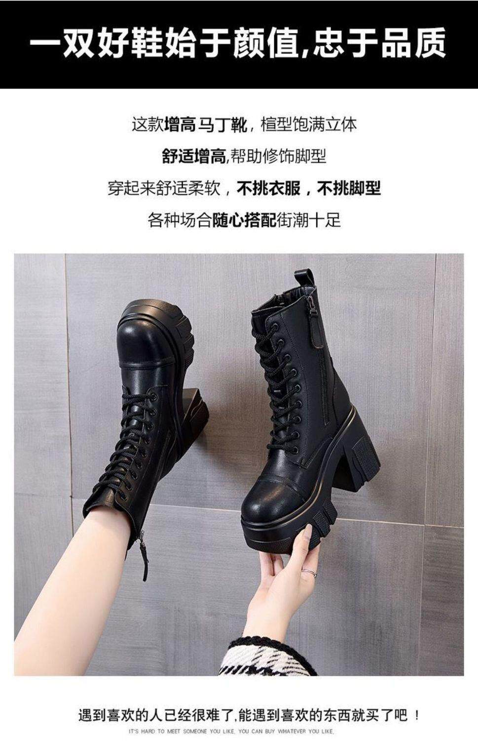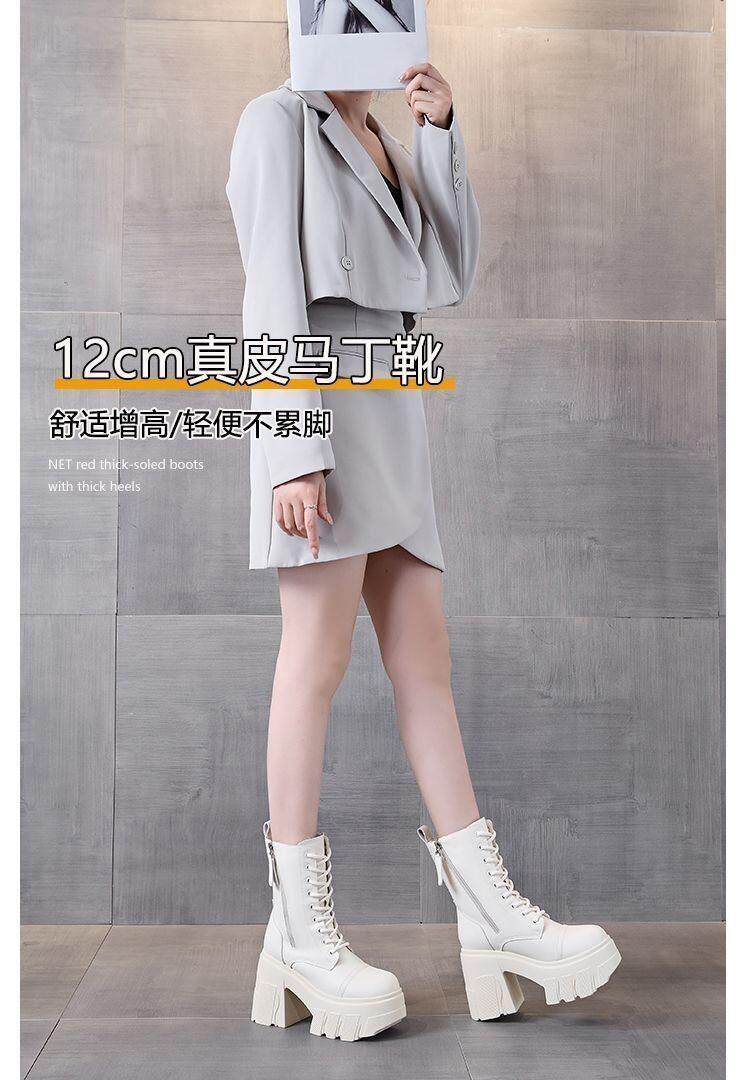 真皮大碼12cm增高馬丁靴女2025秋冬松糕顯瘦厚底小個子超高跟短靴