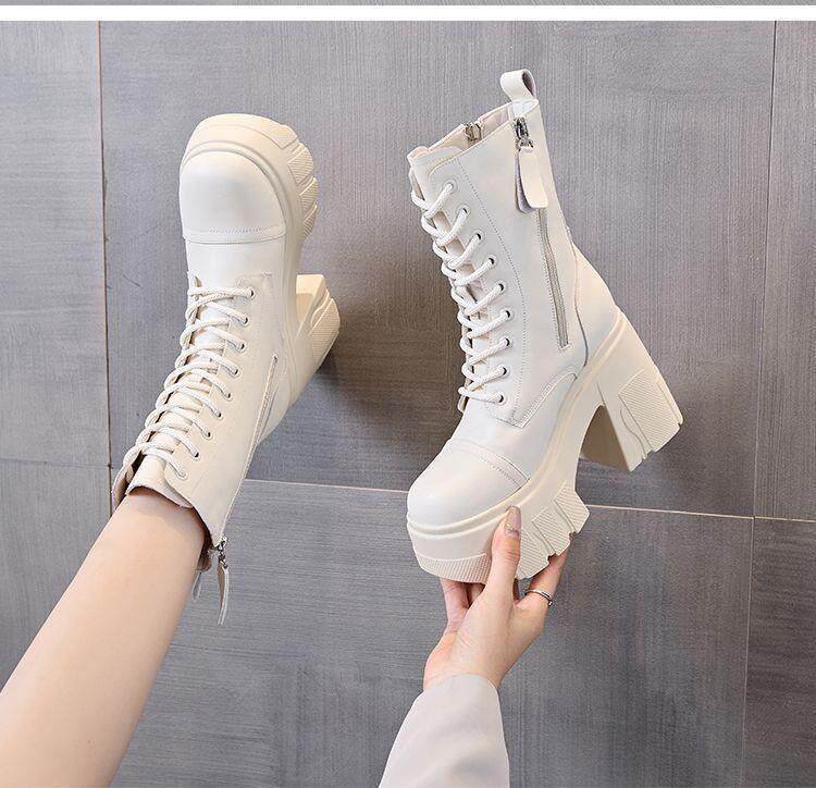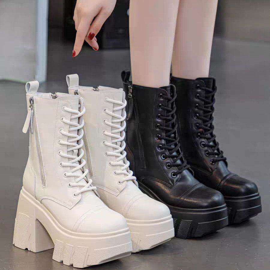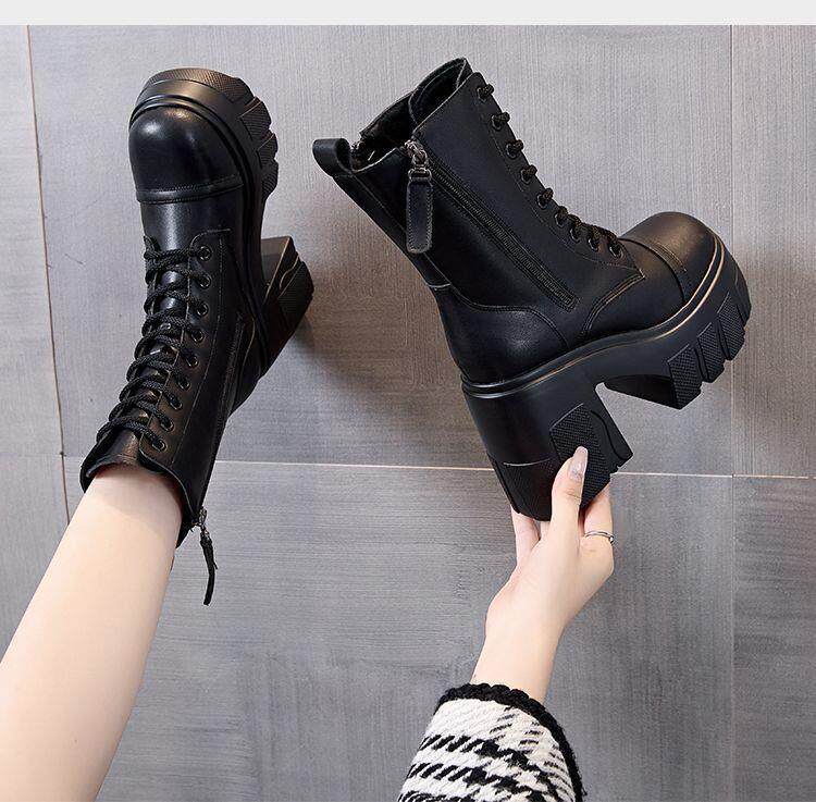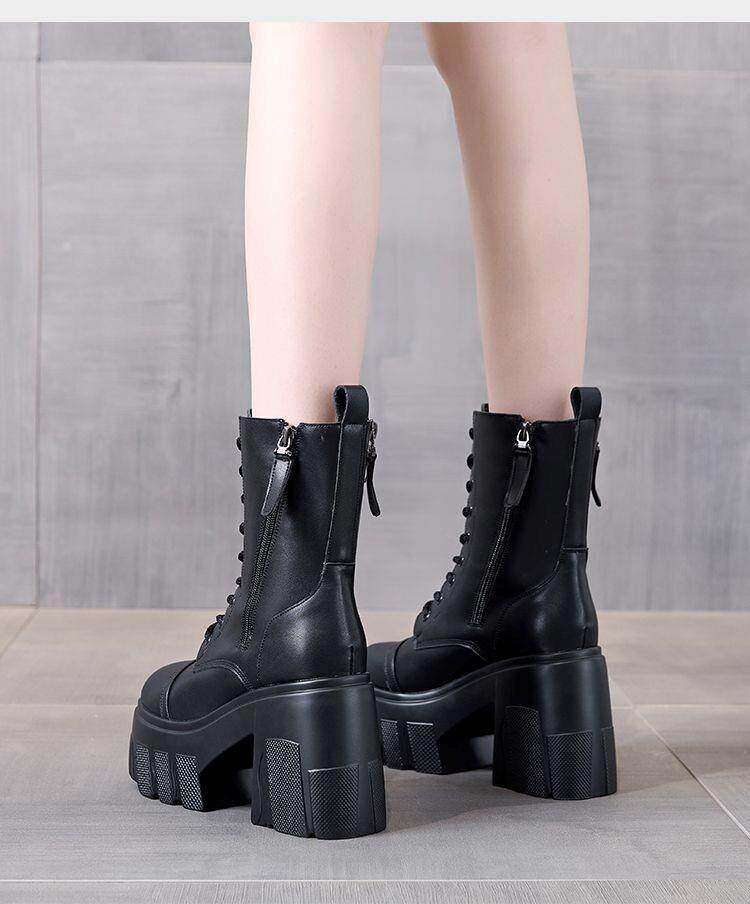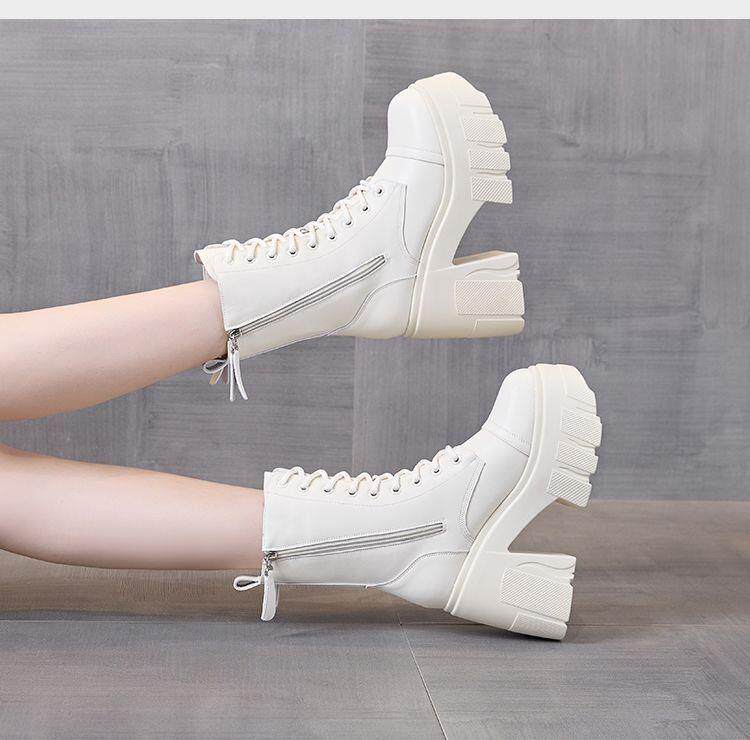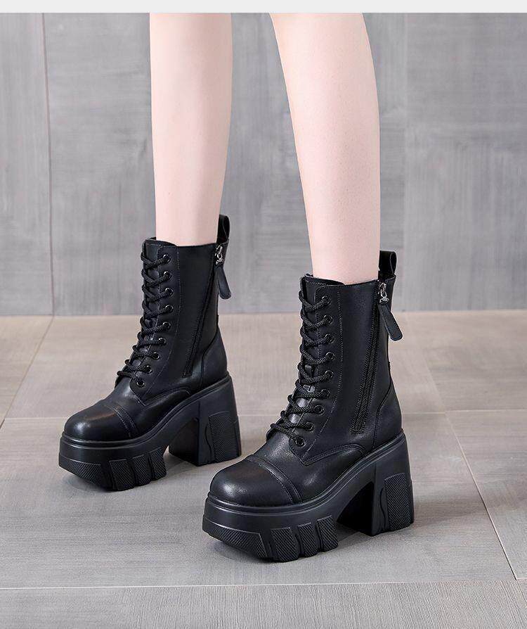 真皮大碼12cm增高馬丁靴女2025秋冬松糕顯瘦厚底小個子超高跟短靴