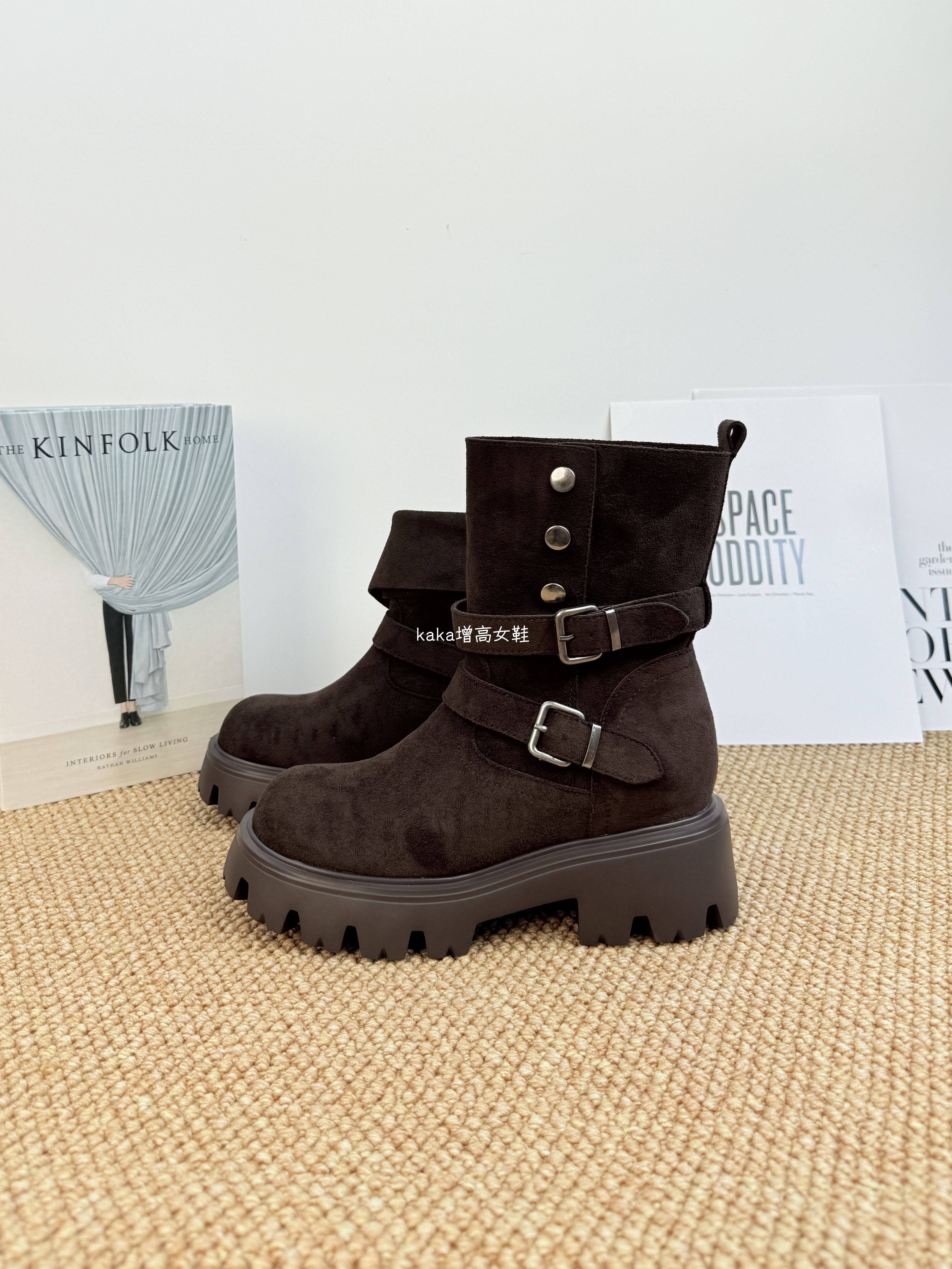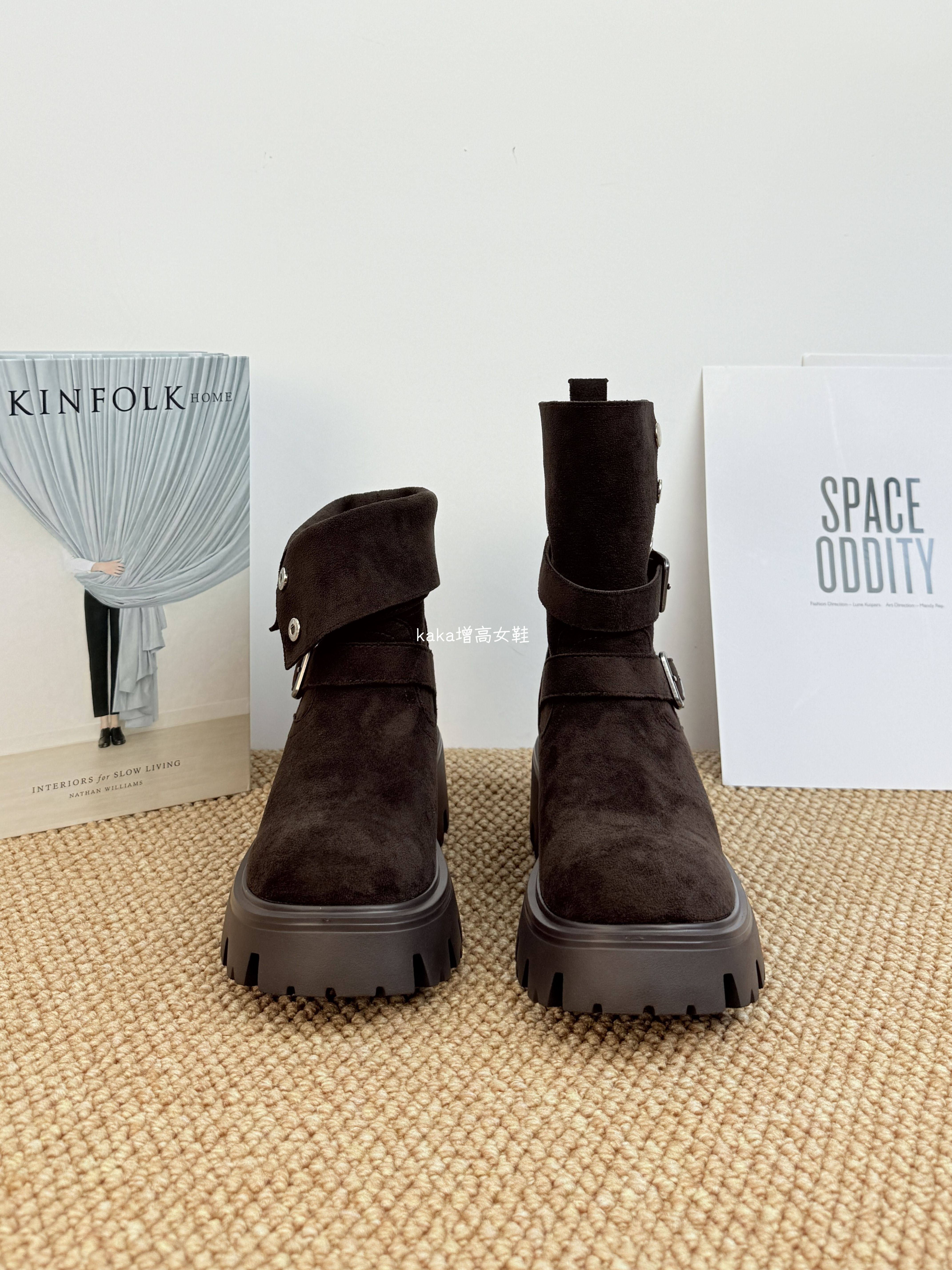 真皮款內增高小個子美拉德馬丁靴女兩穿繙折西部牛仔靴廢土風靴子