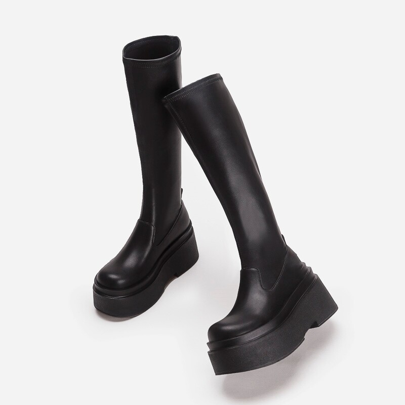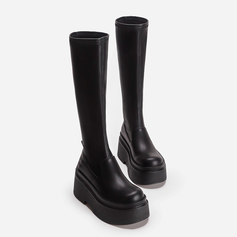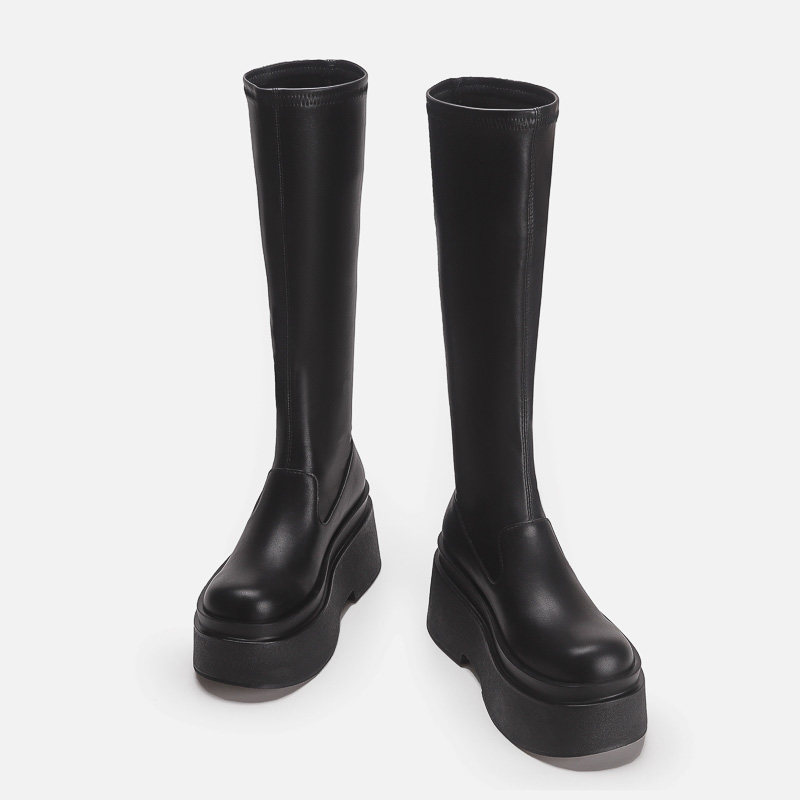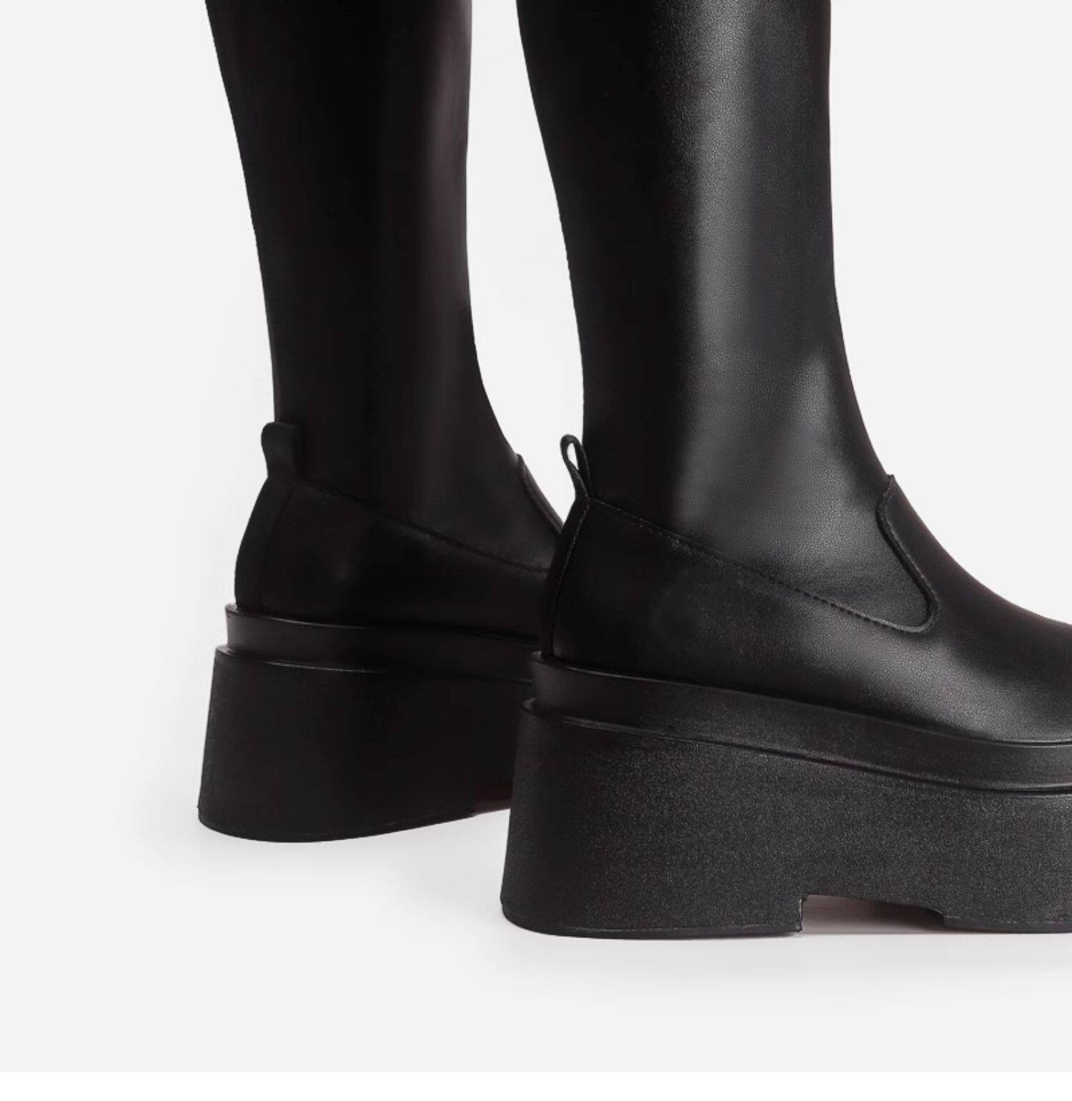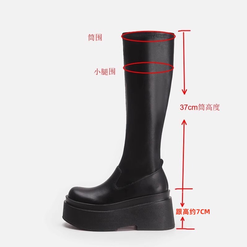 增高厚底小個子不過膝長筒靴子女彈力瘦瘦靴秋冬加絨高筒騎士長靴