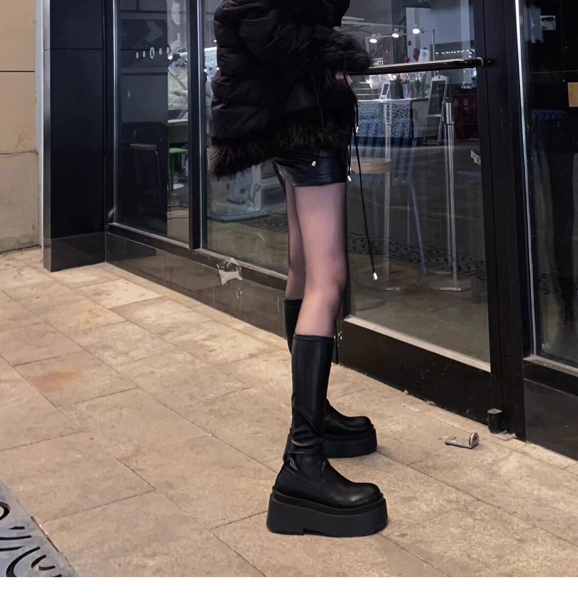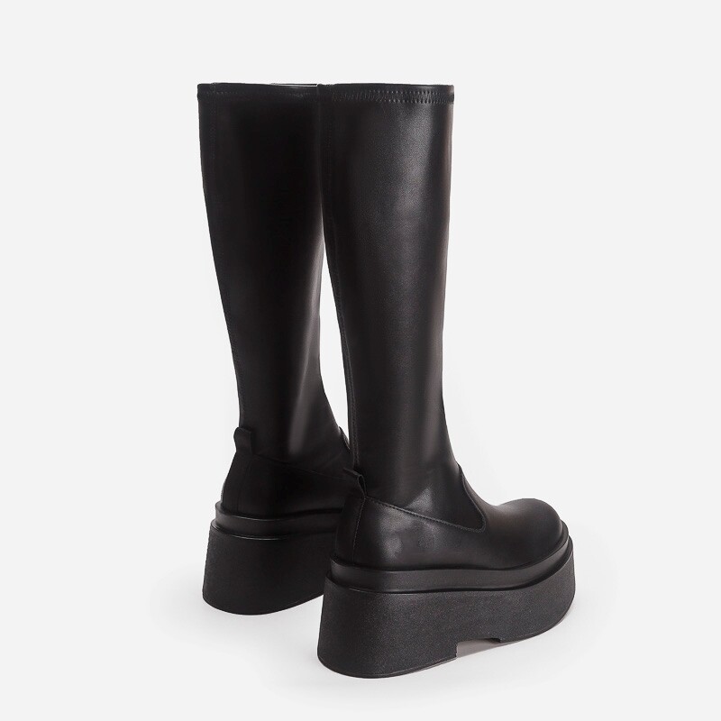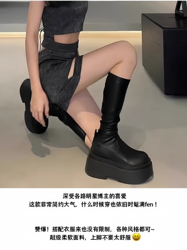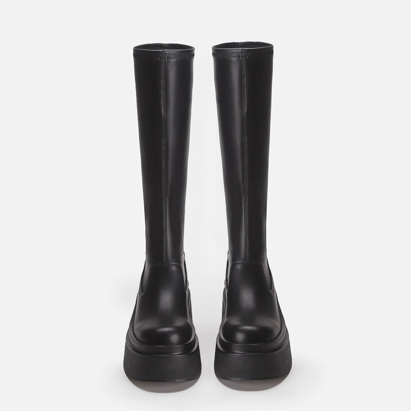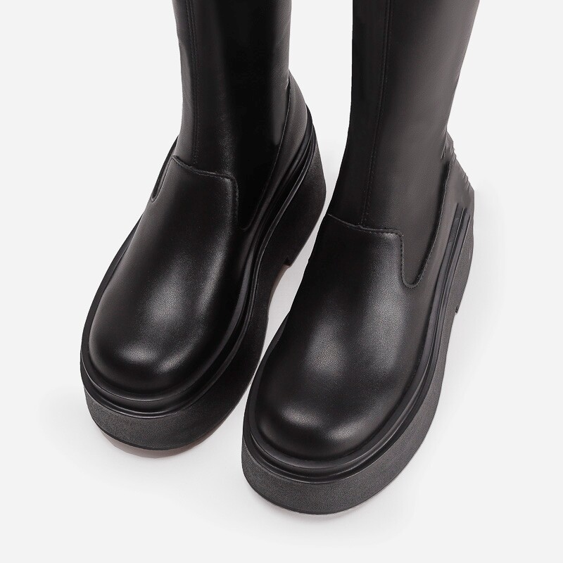 增高厚底小個子不過膝長筒靴子女彈力瘦瘦靴秋冬加絨高筒騎士長靴