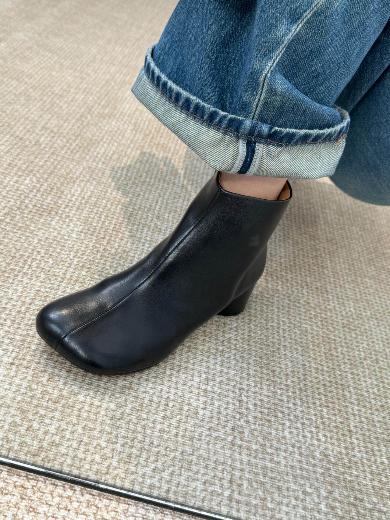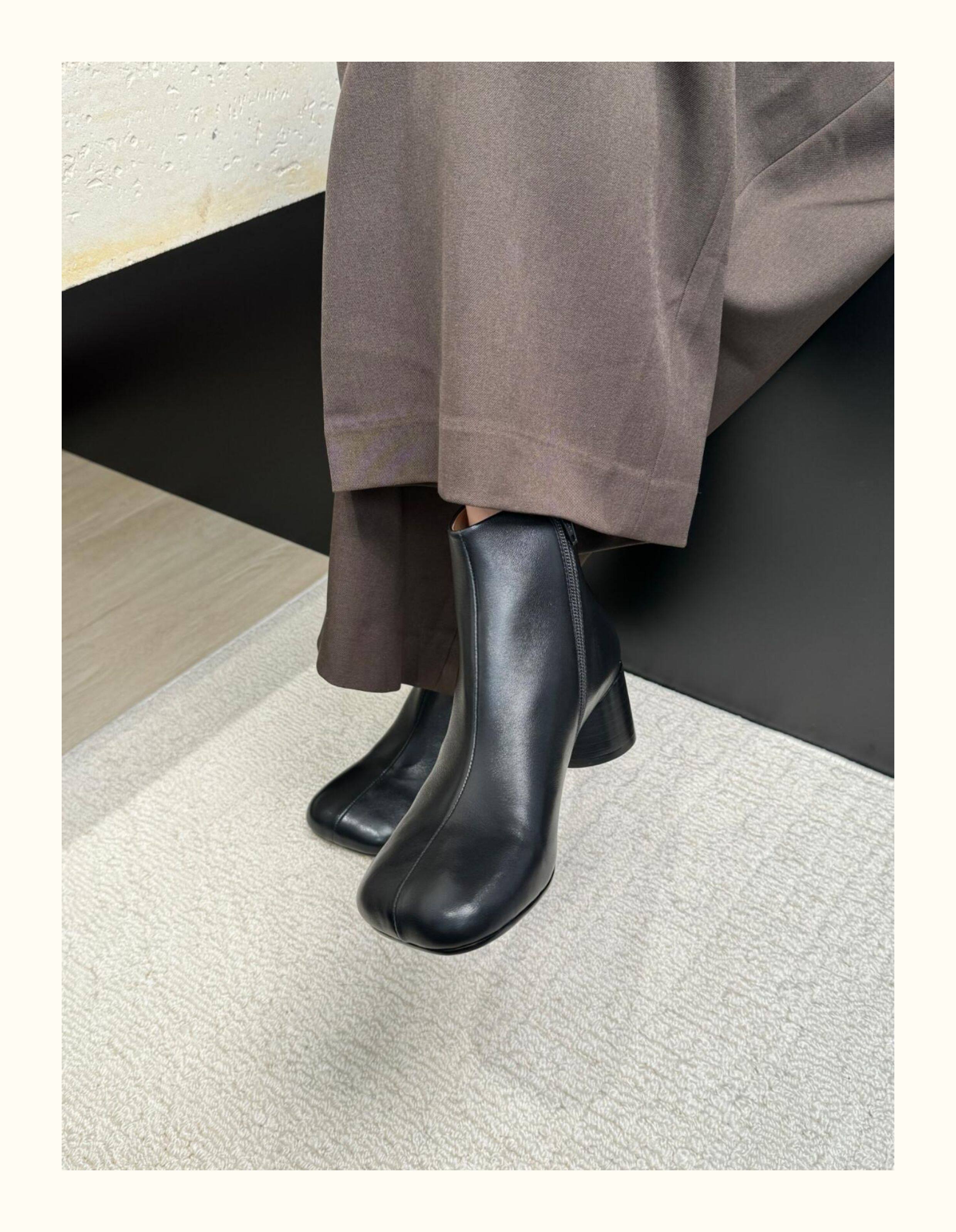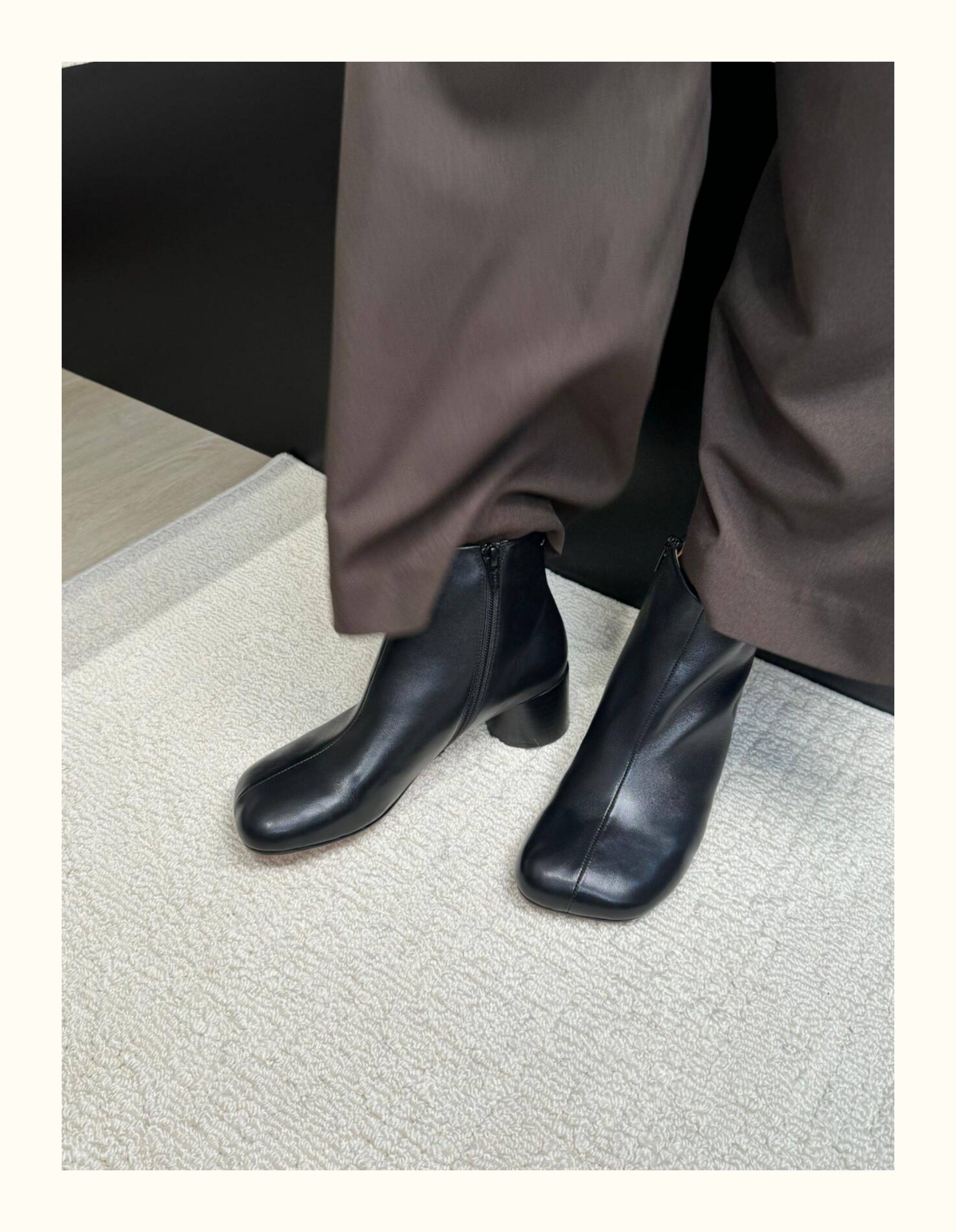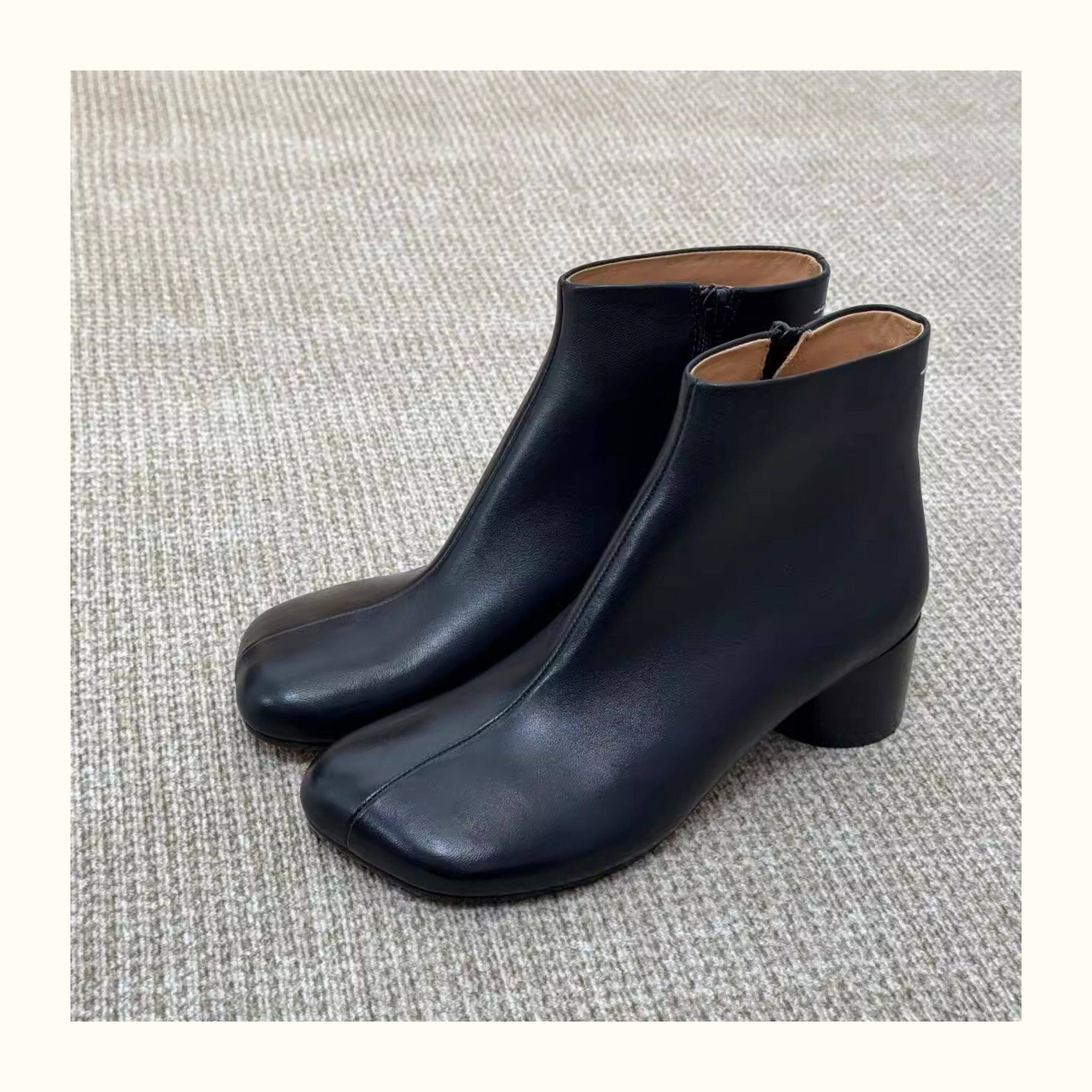 小衆設計高跟短靴2025秋冬新款真皮方頭百搭經典簡約粗跟及踝靴女