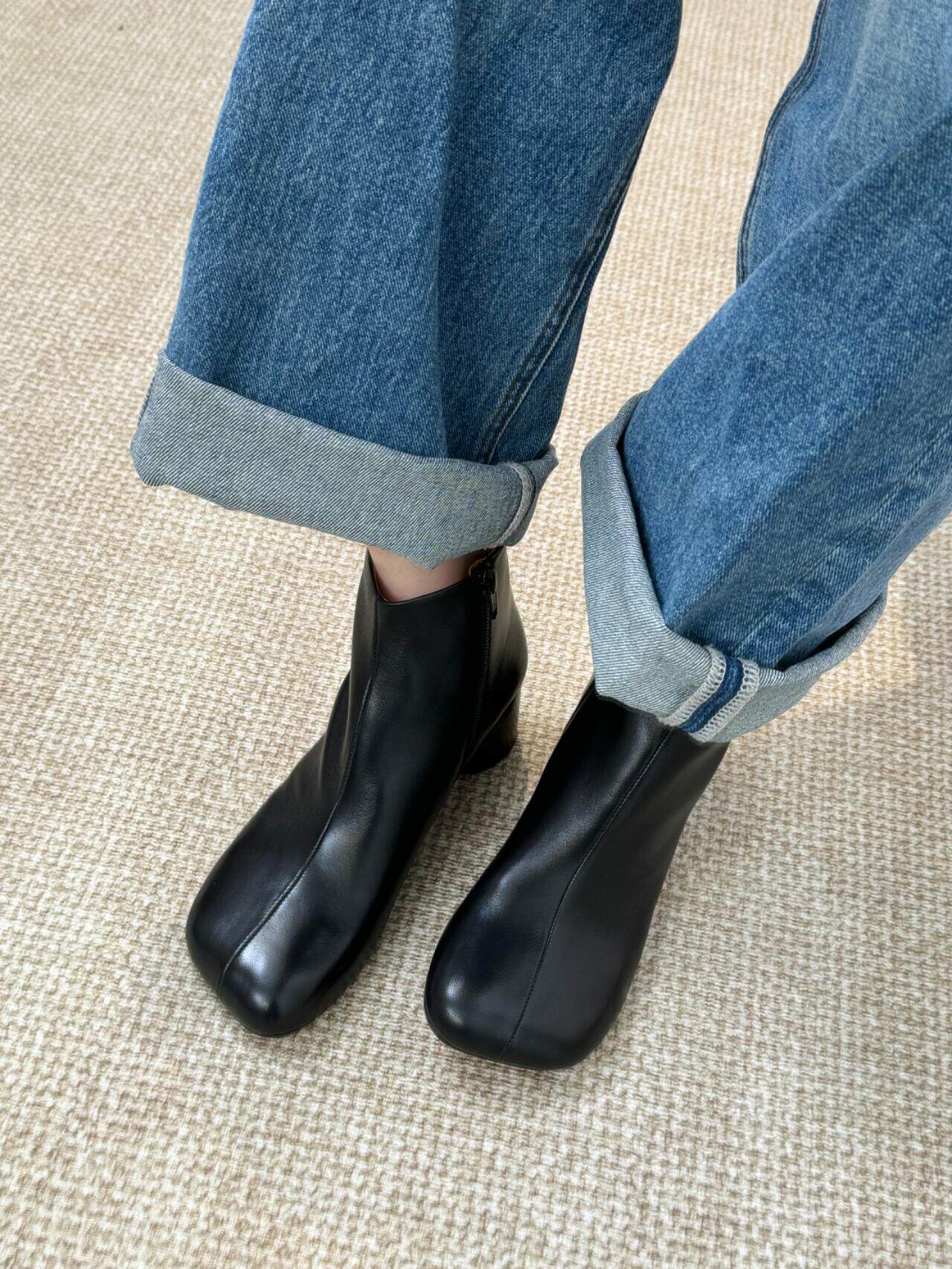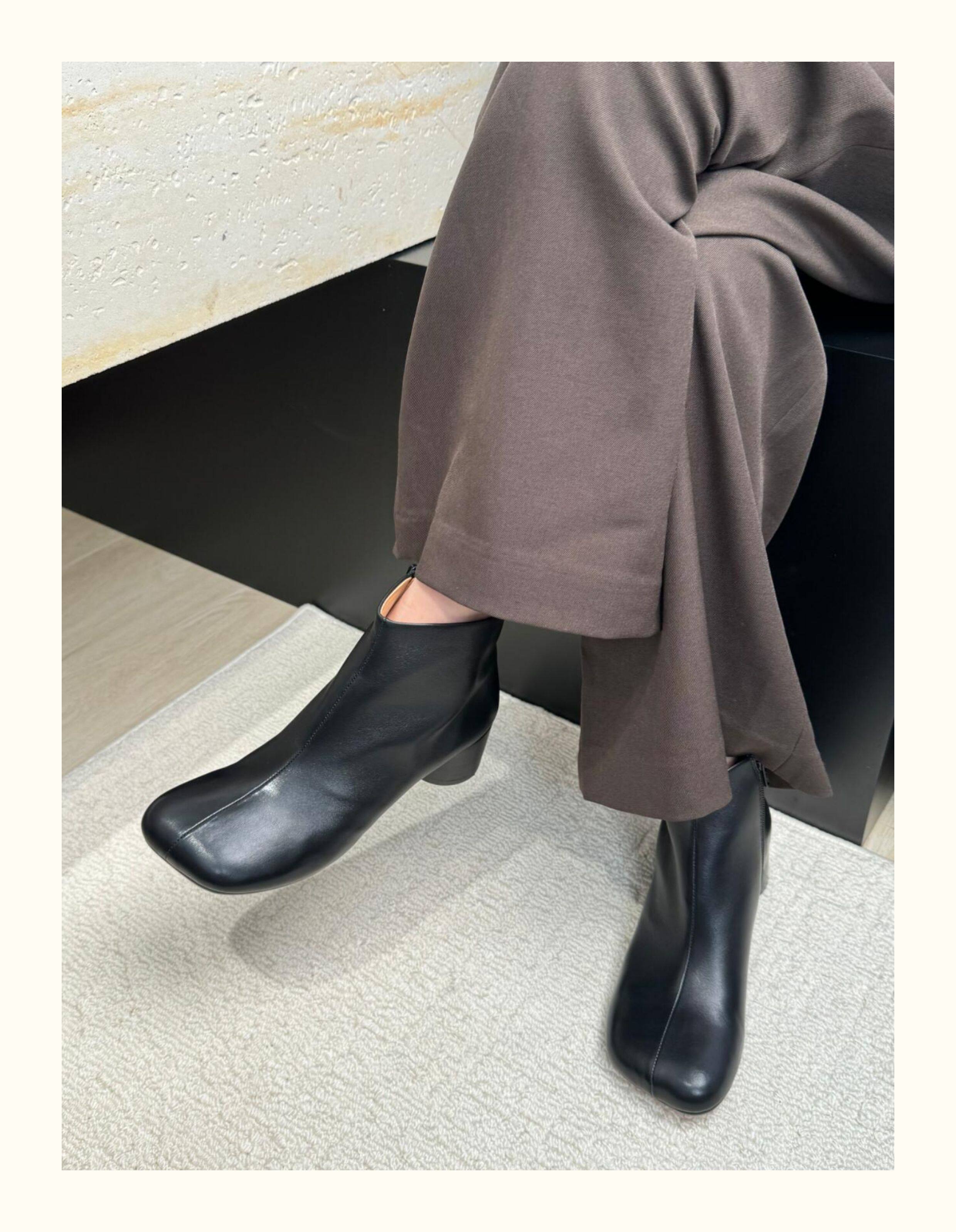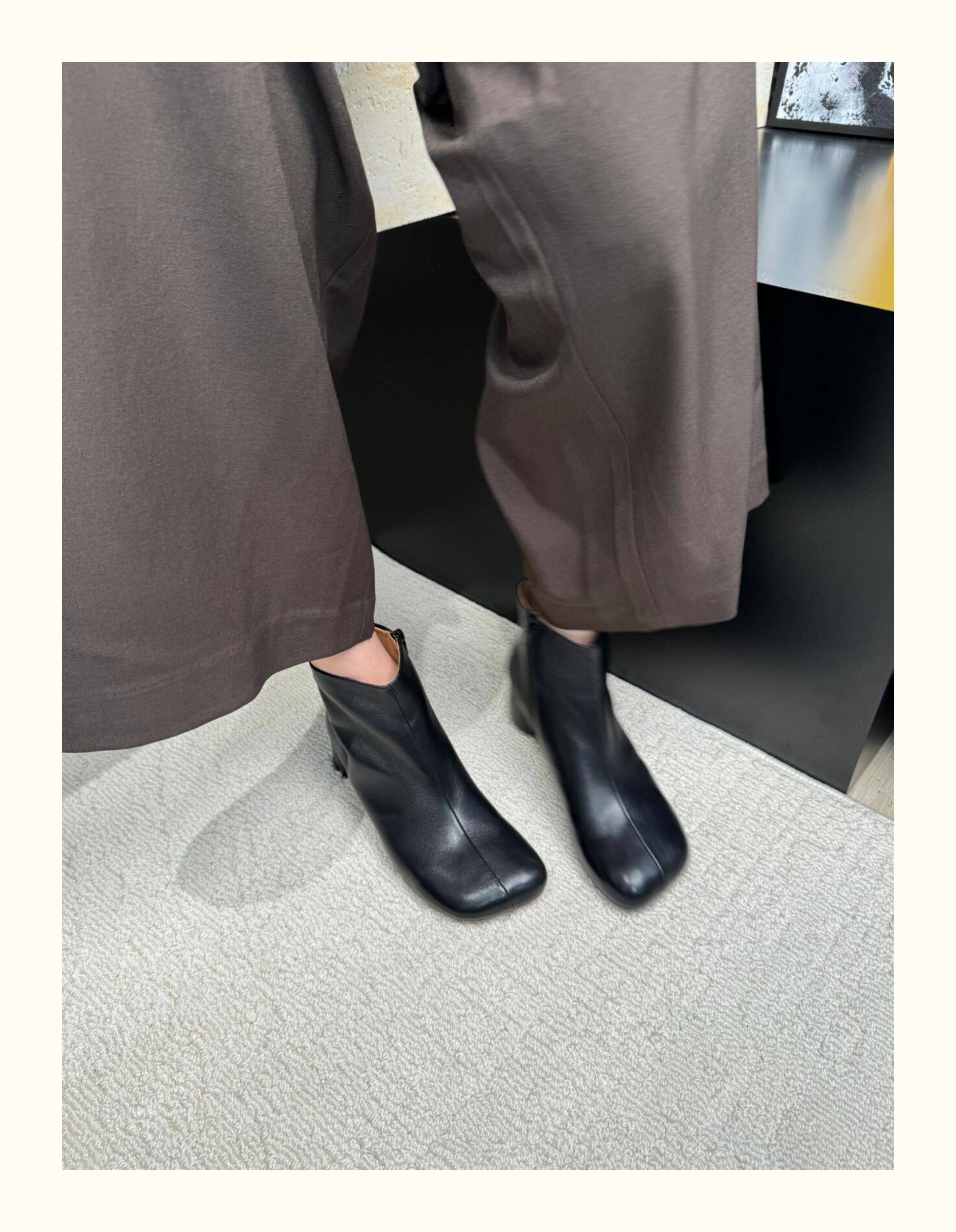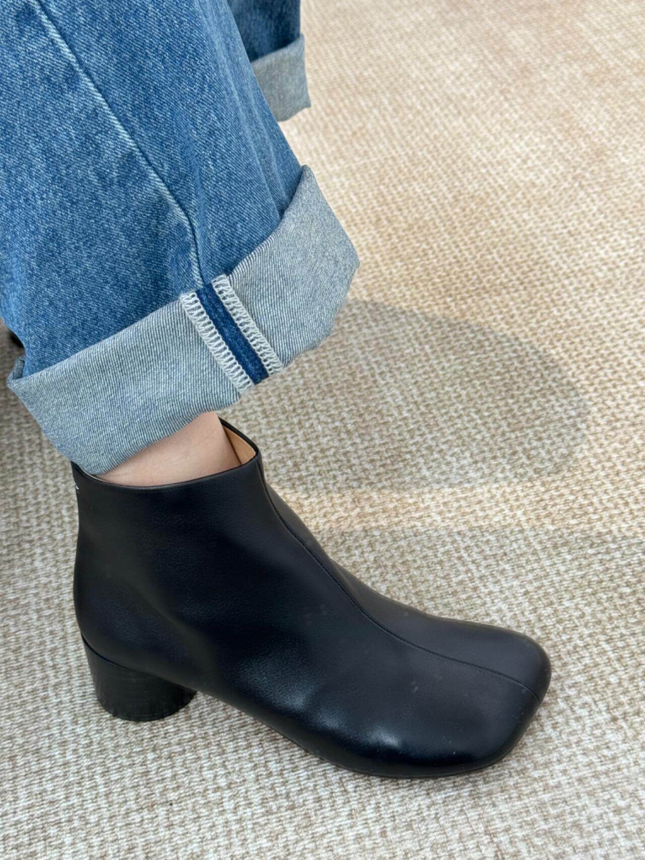 小衆設計高跟短靴2025秋冬新款真皮方頭百搭經典簡約粗跟及踝靴女