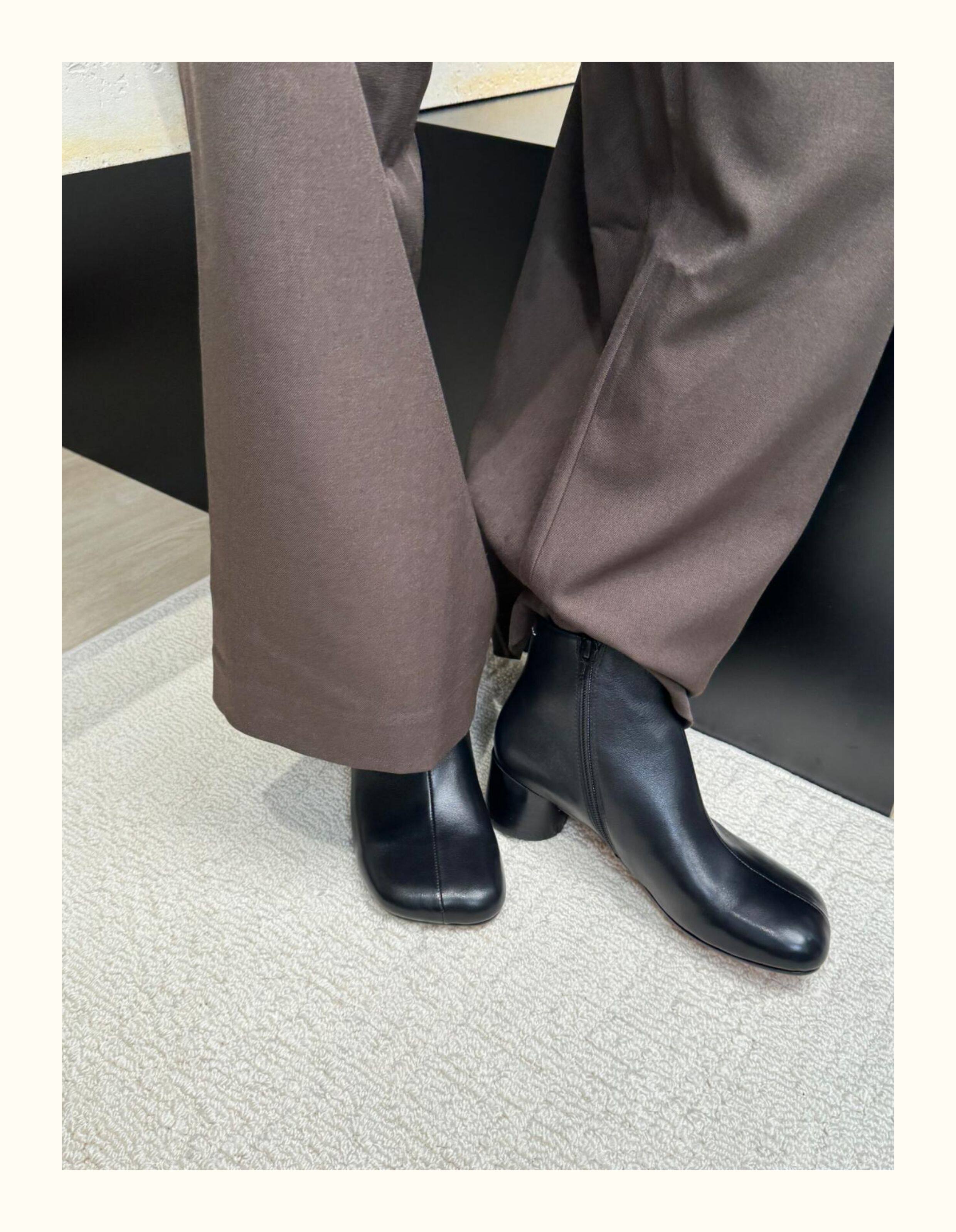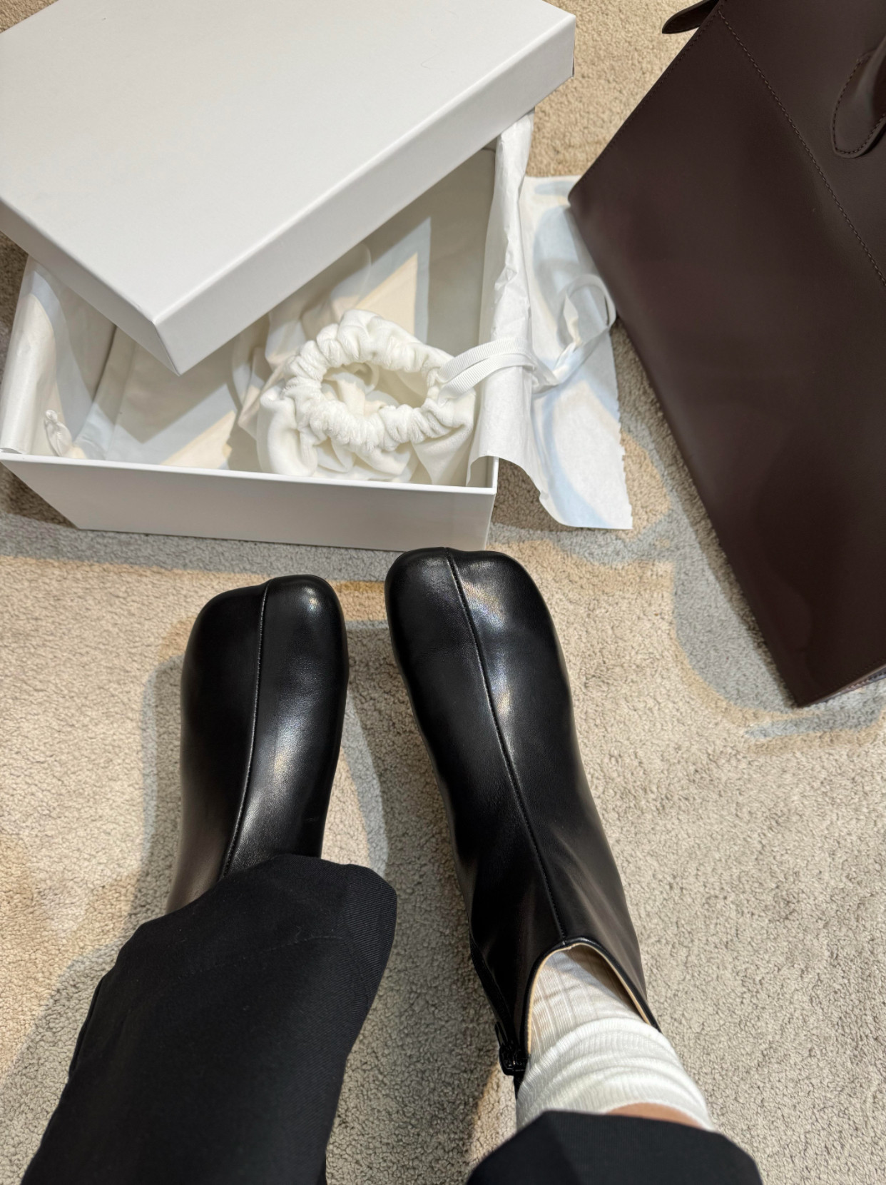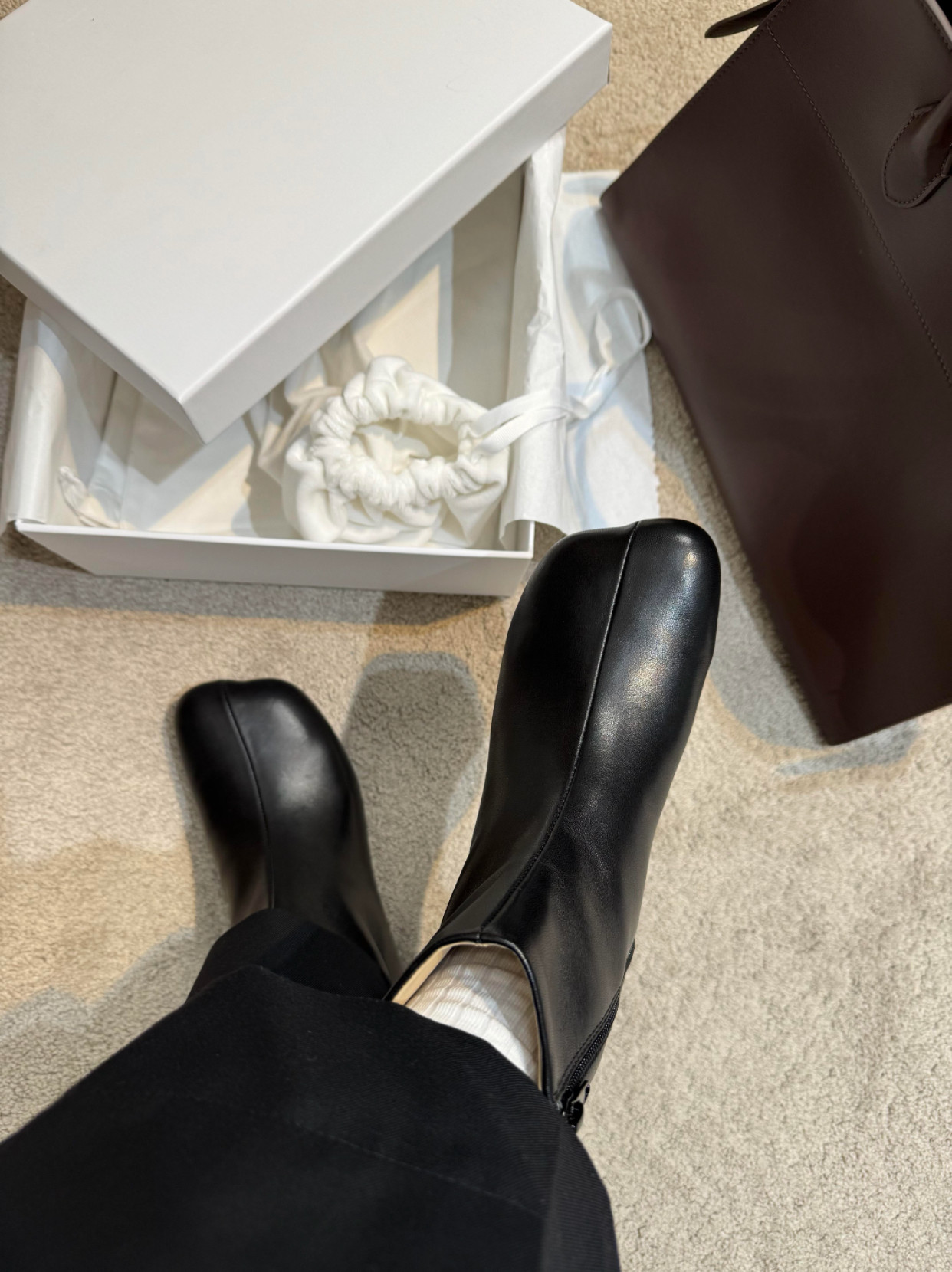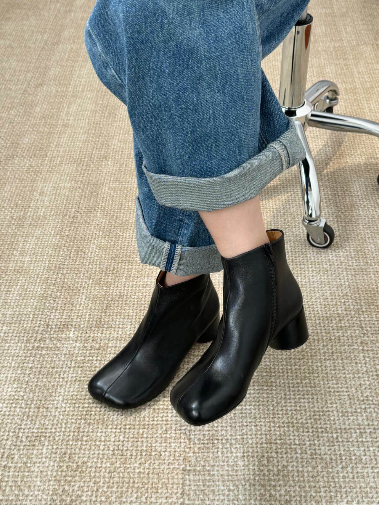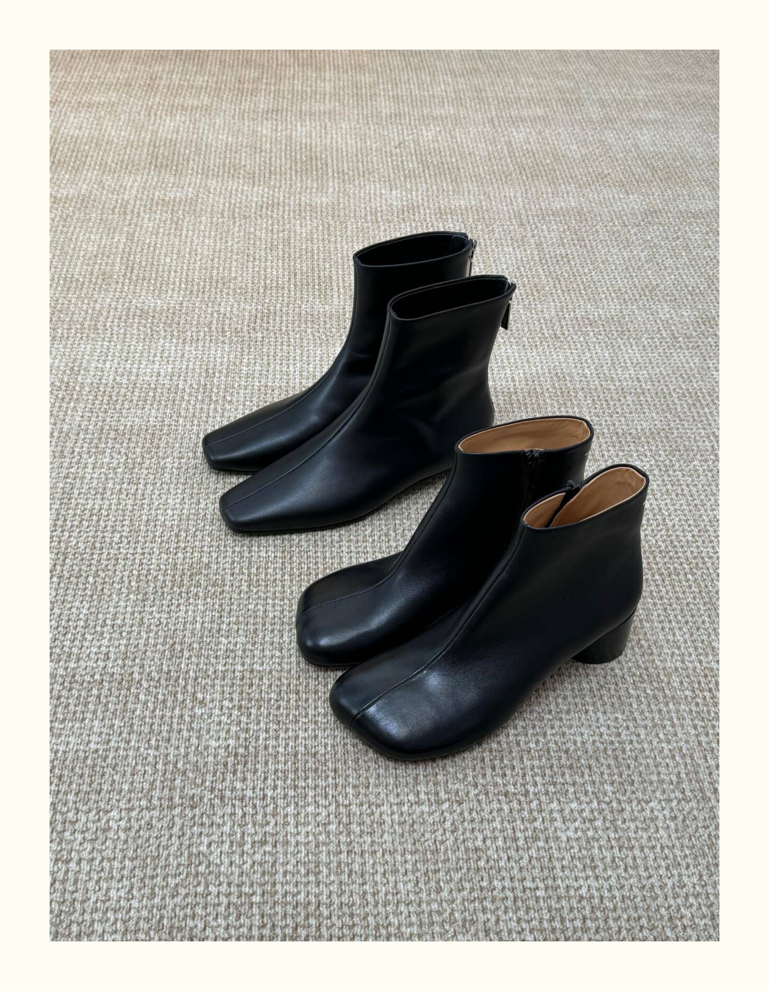 小衆設計高跟短靴2025秋冬新款真皮方頭百搭經典簡約粗跟及踝靴女