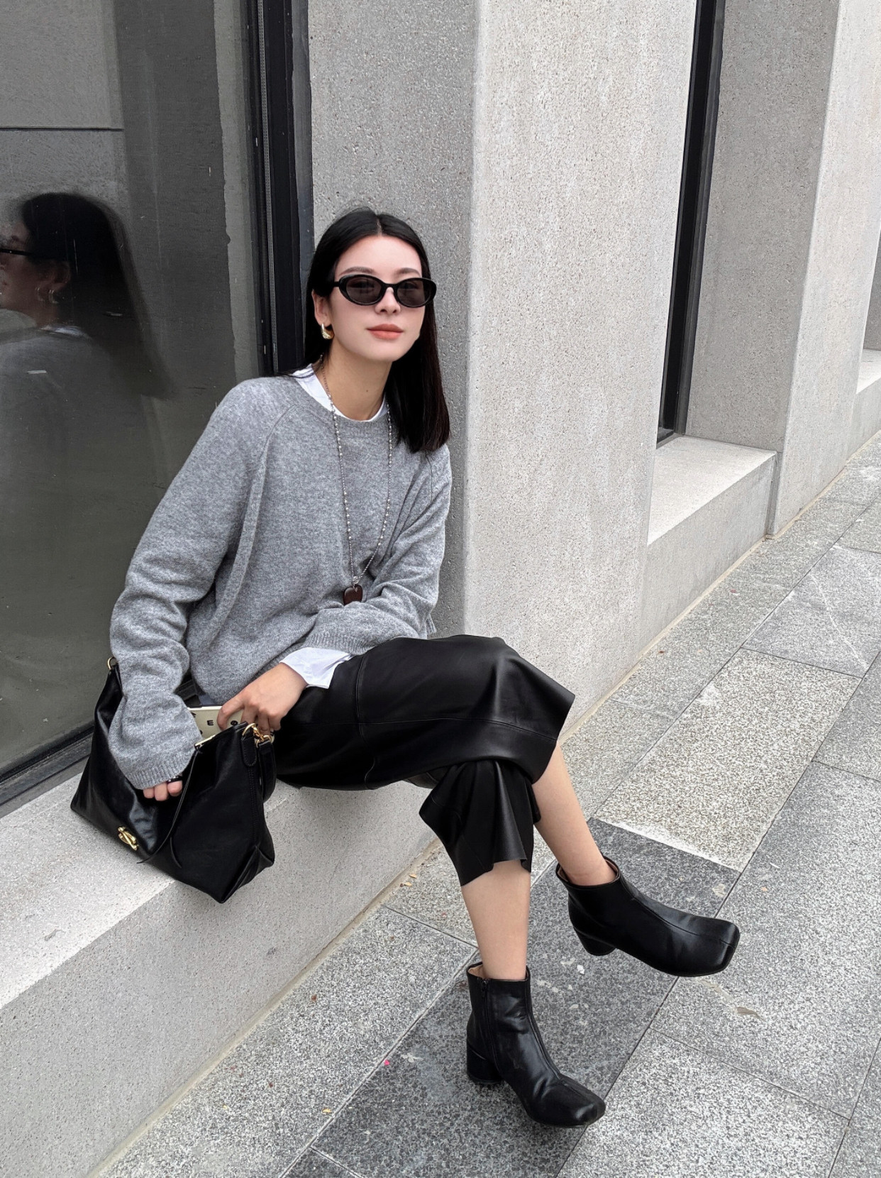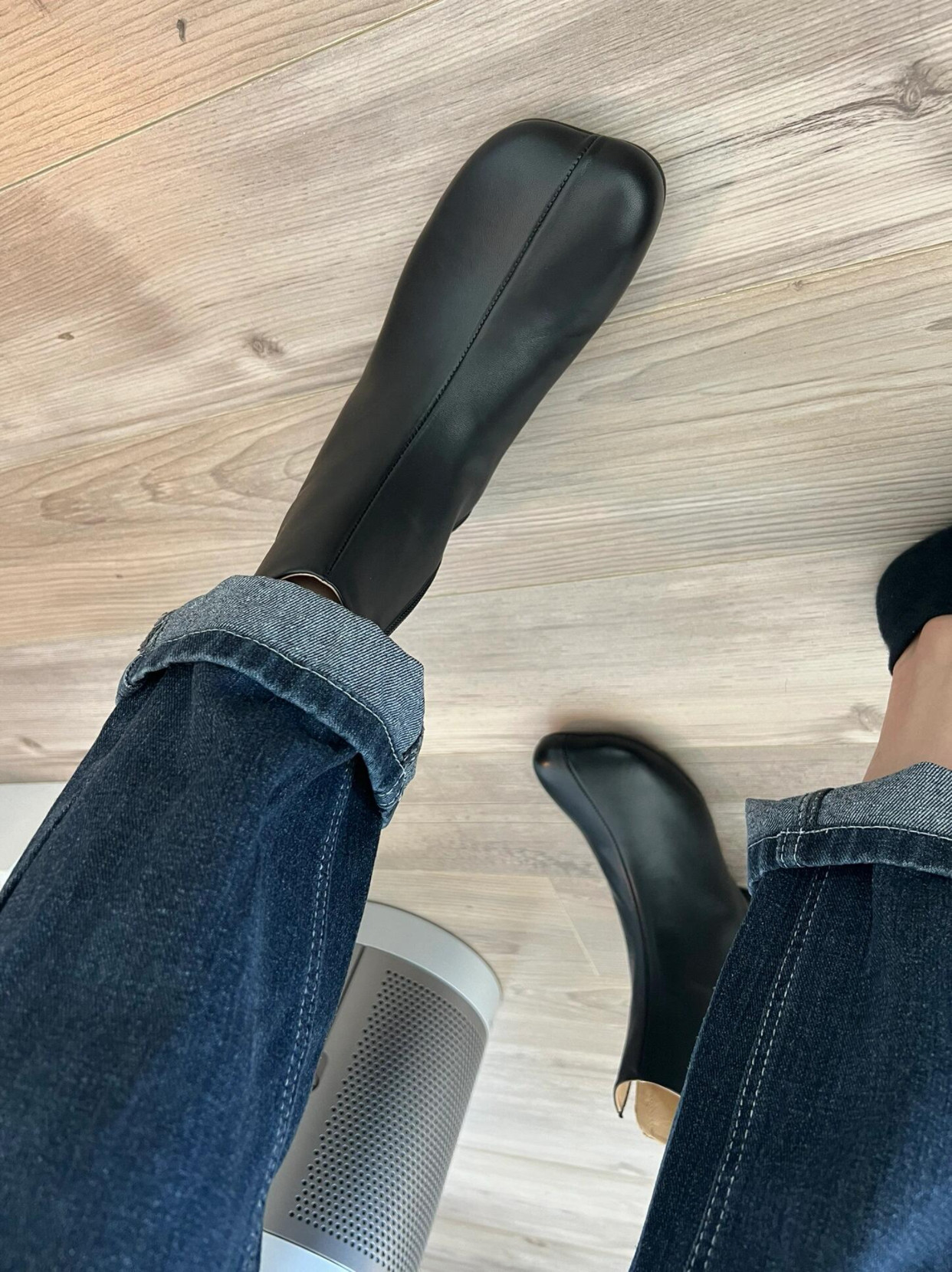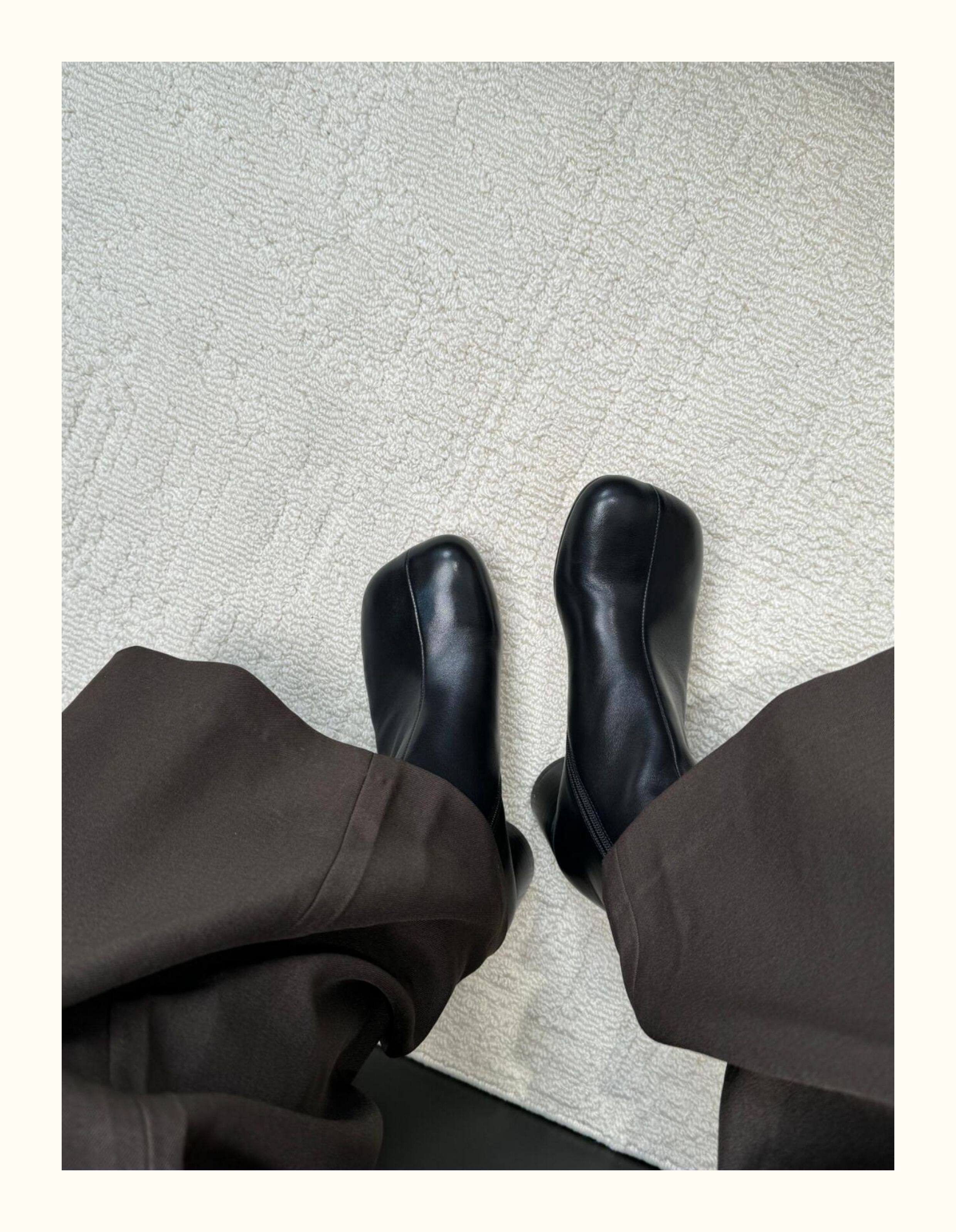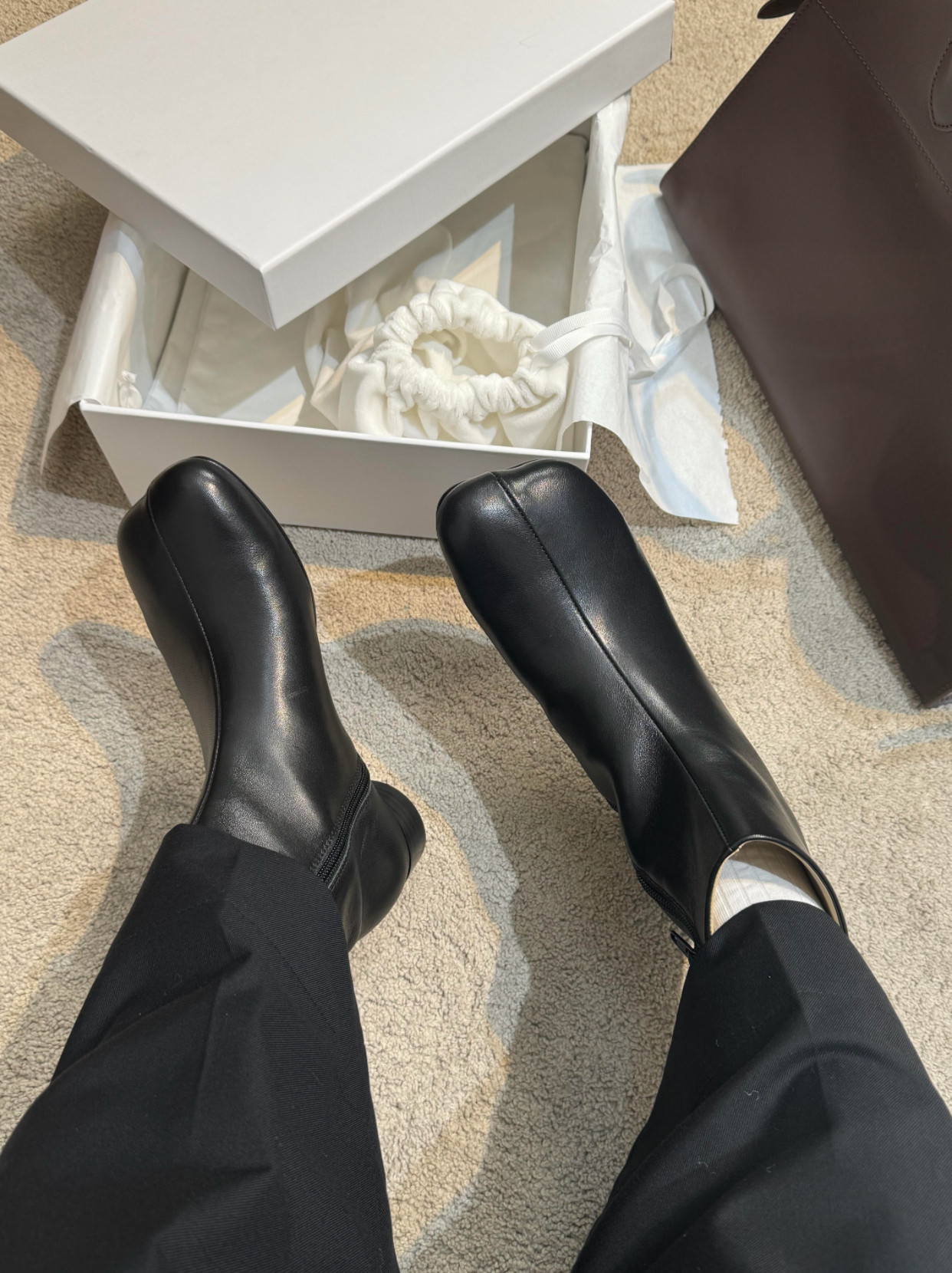 小衆設計高跟短靴2025秋冬新款真皮方頭百搭經典簡約粗跟及踝靴女
