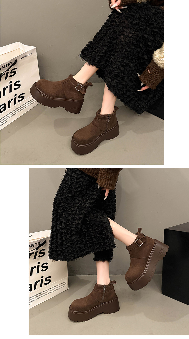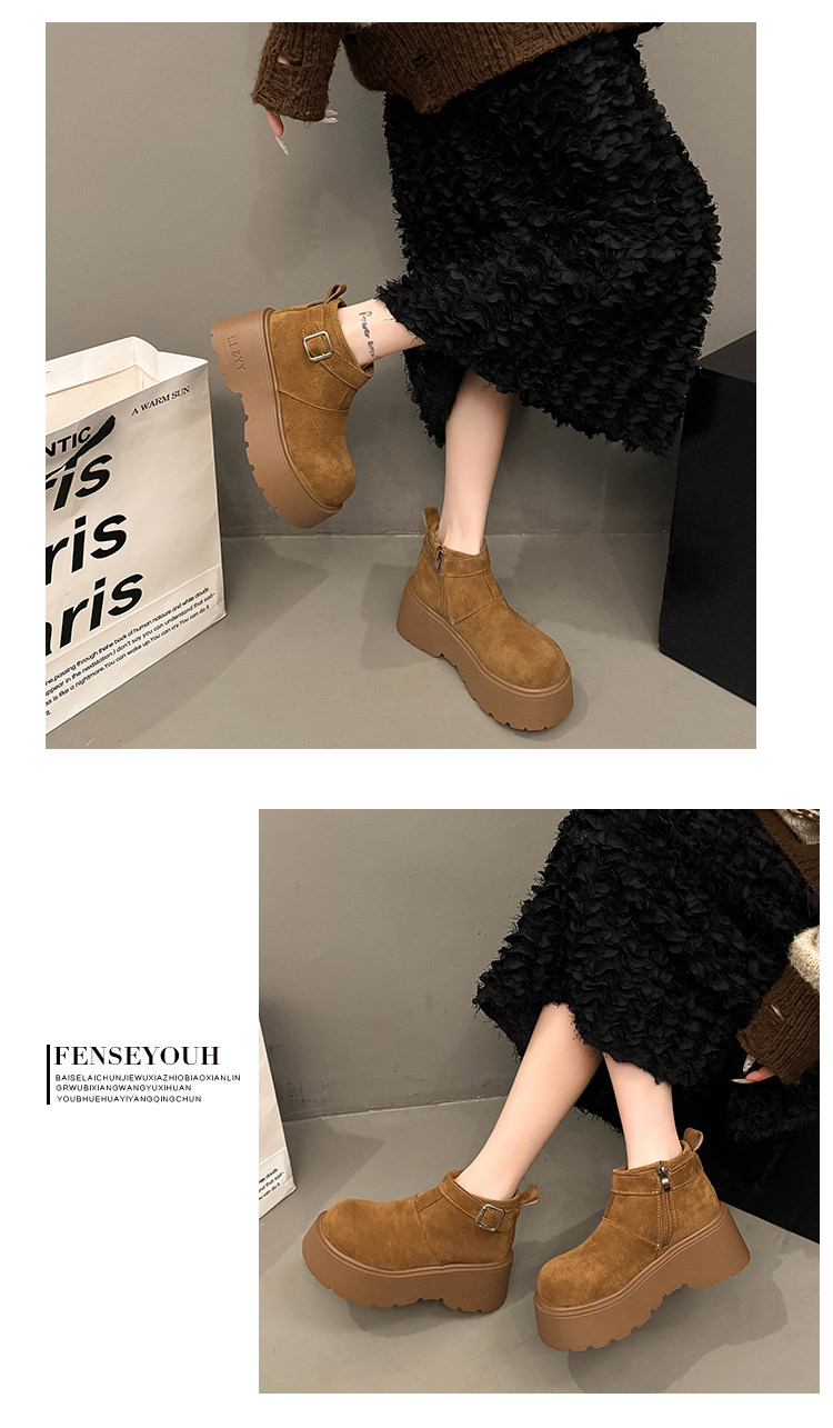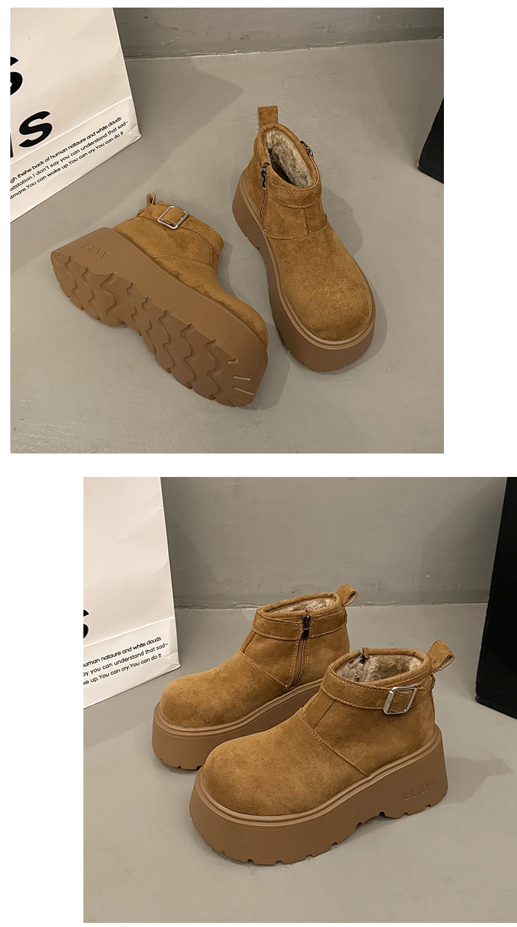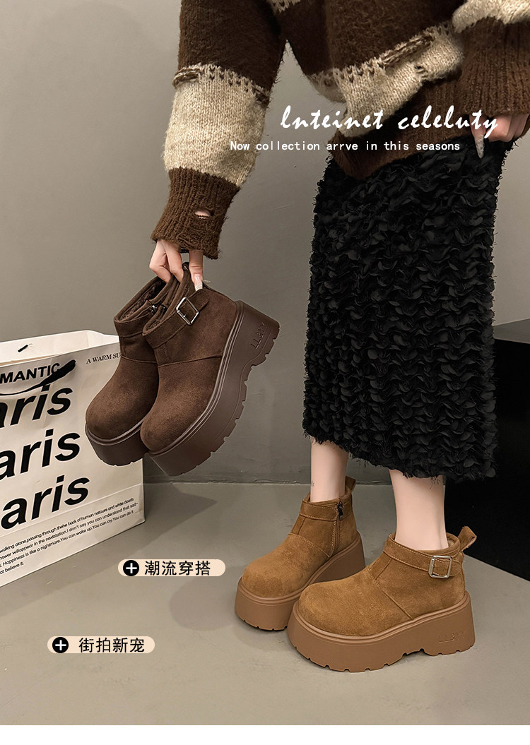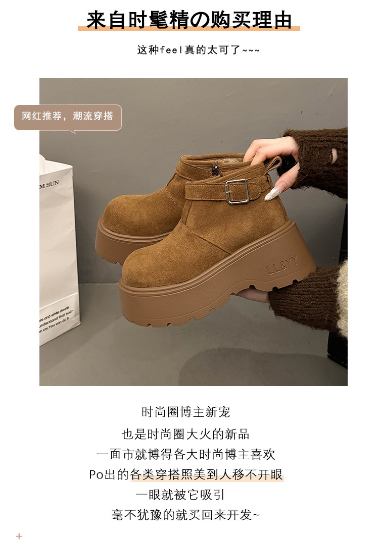 趙露思同款厚底增高大棉東北雪地煙囪靴女2025秋冬新款勃肯短靴子