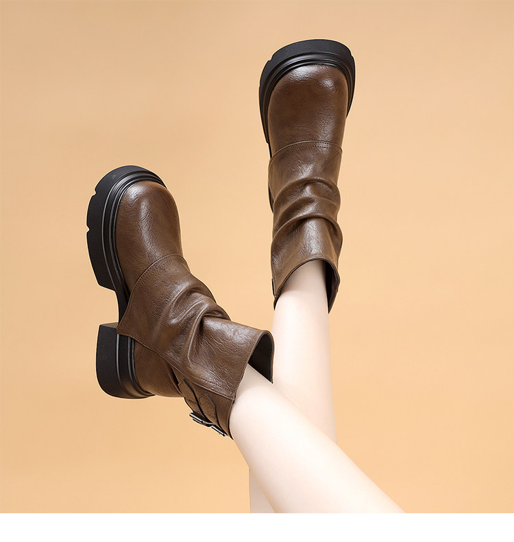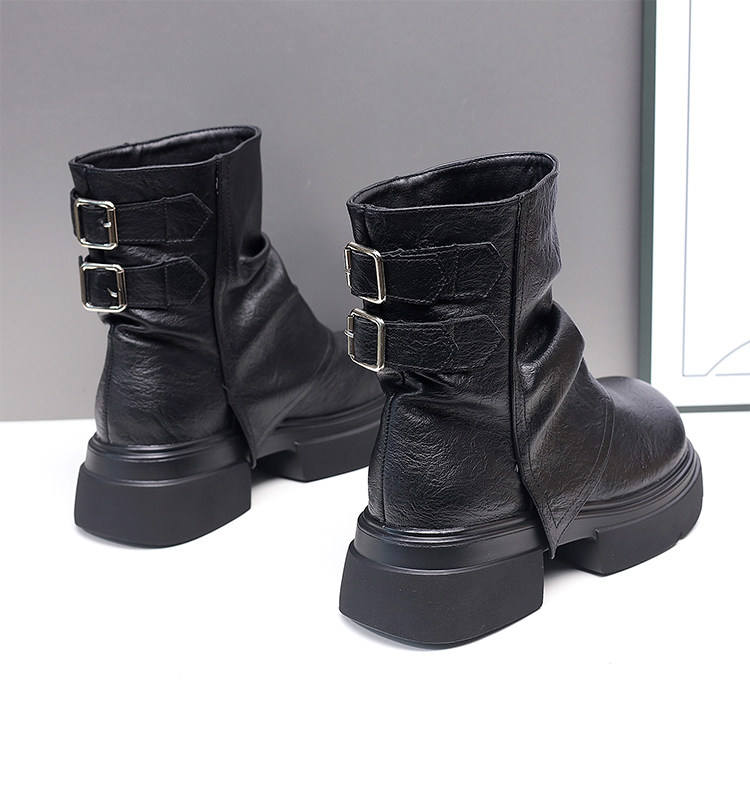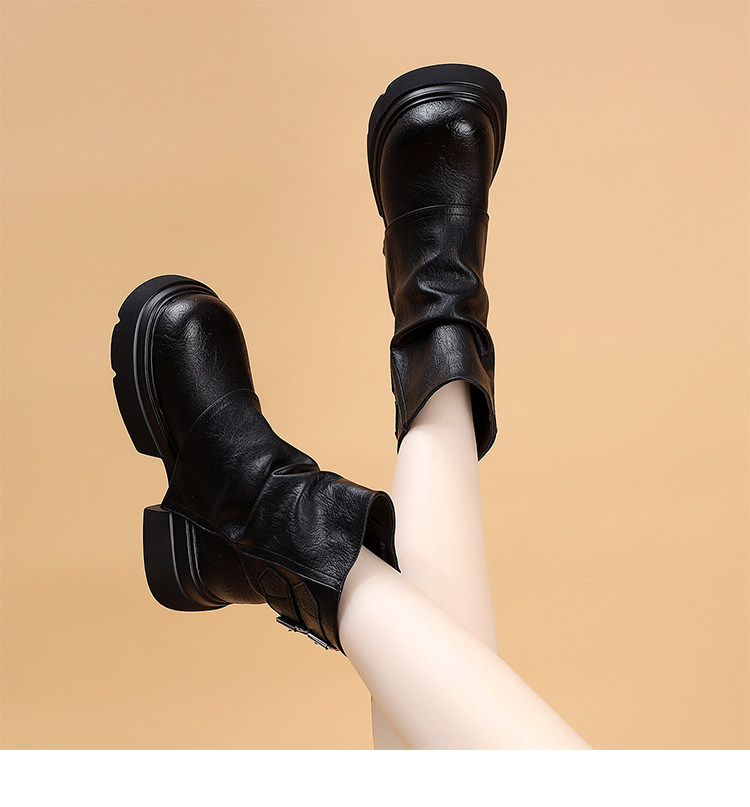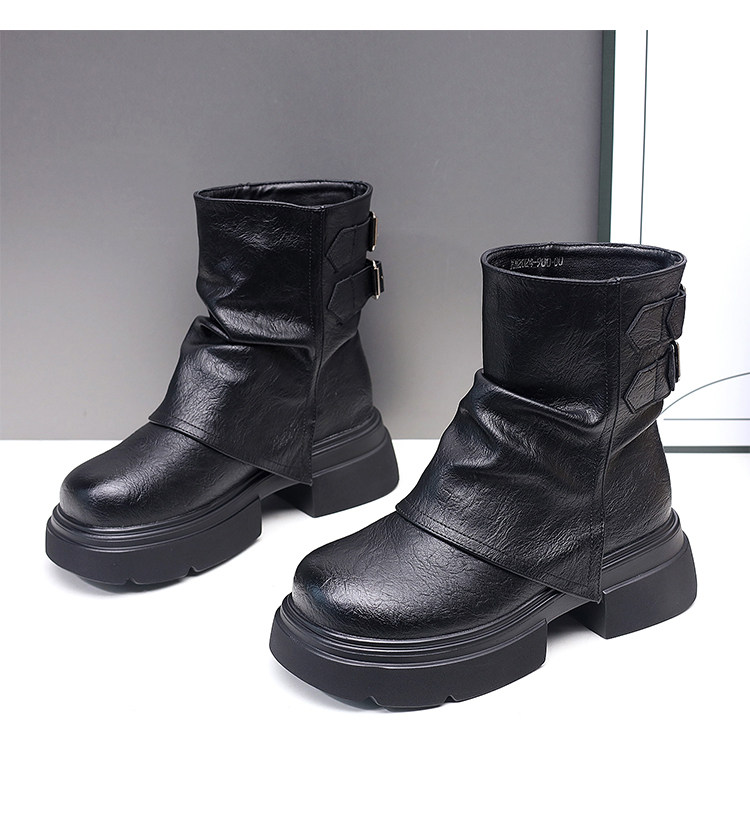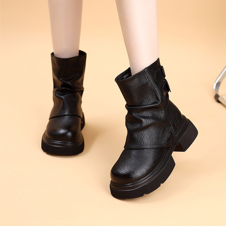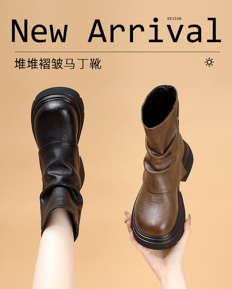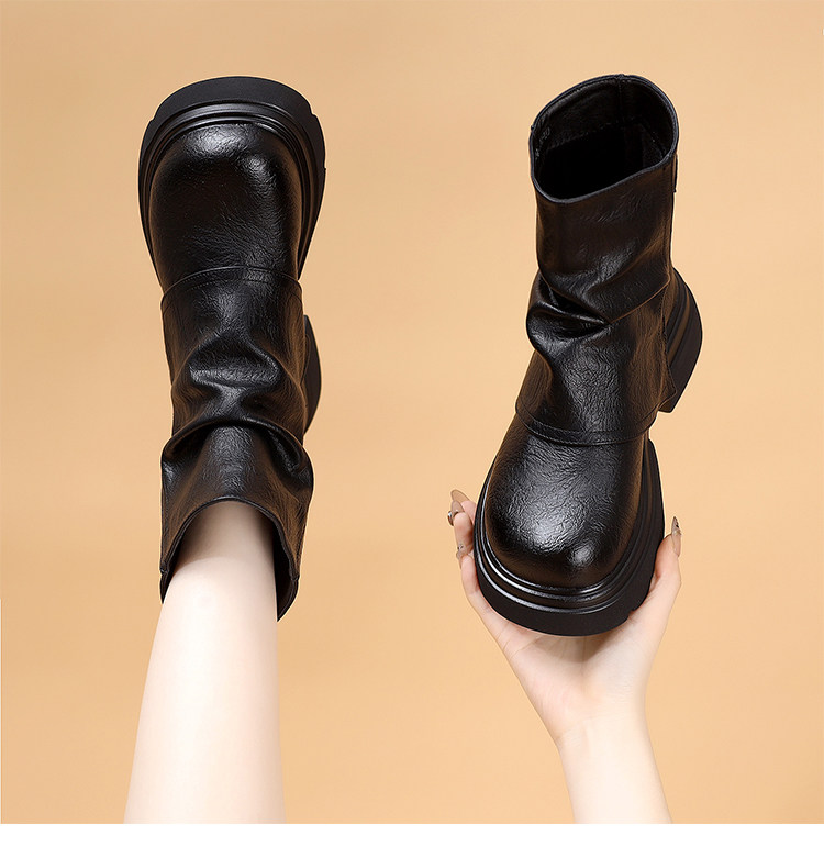 特價真皮馬丁靴女2025新款秋冬厚底小個子英倫堆堆褶皺切爾西短靴