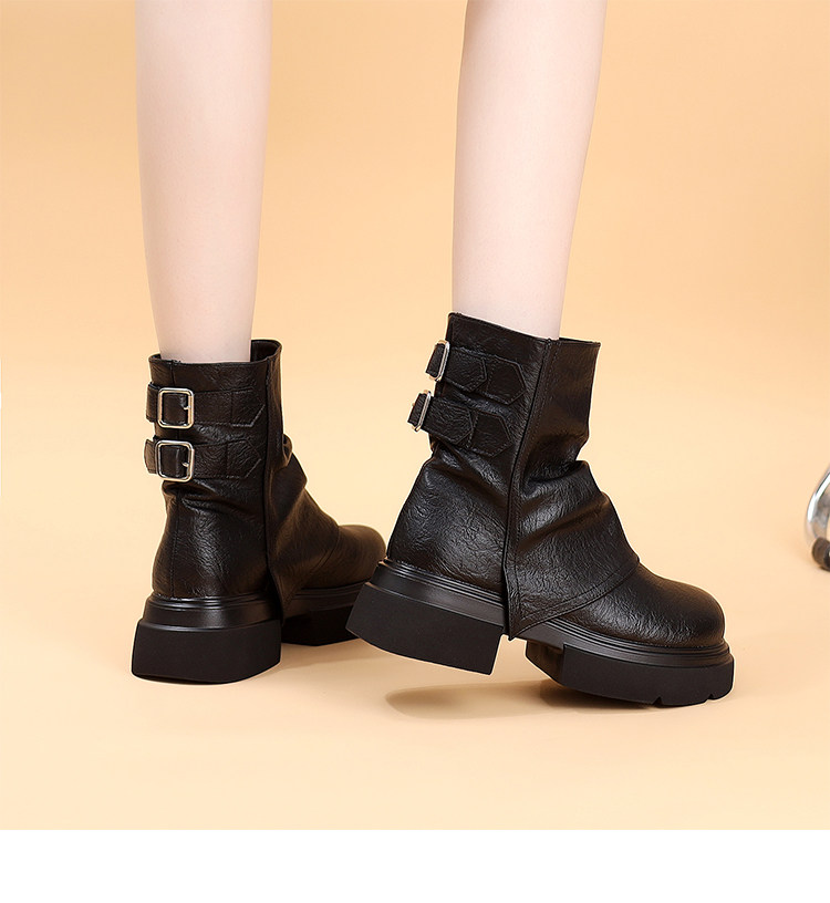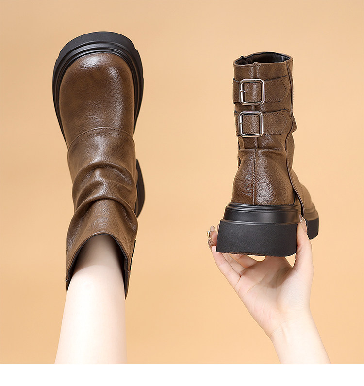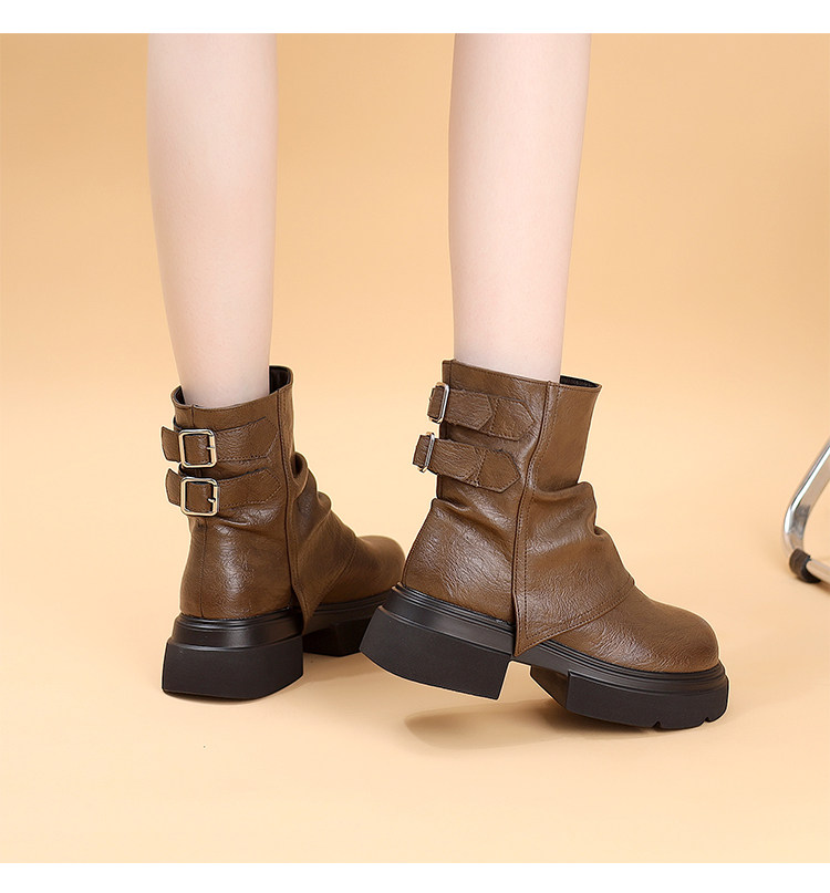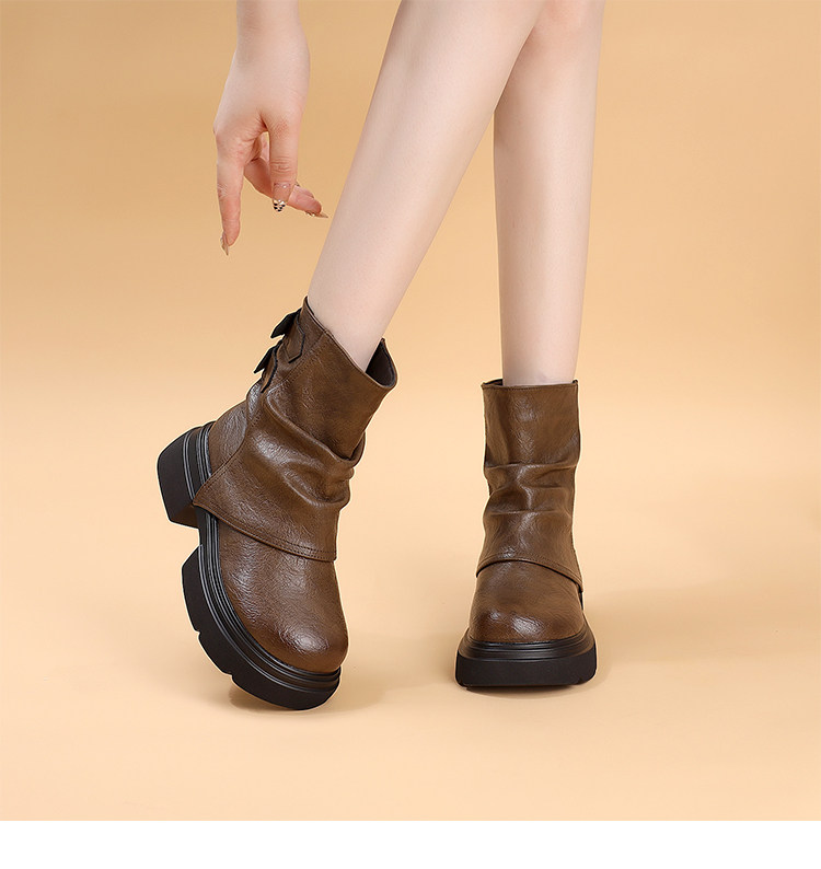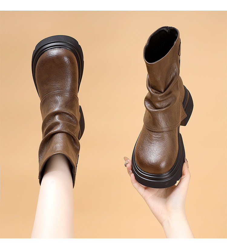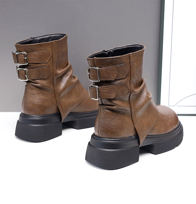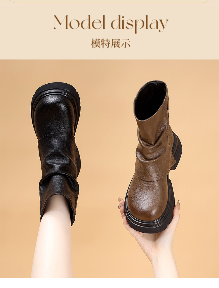 特價真皮馬丁靴女2025新款秋冬厚底小個子英倫堆堆褶皺切爾西短靴