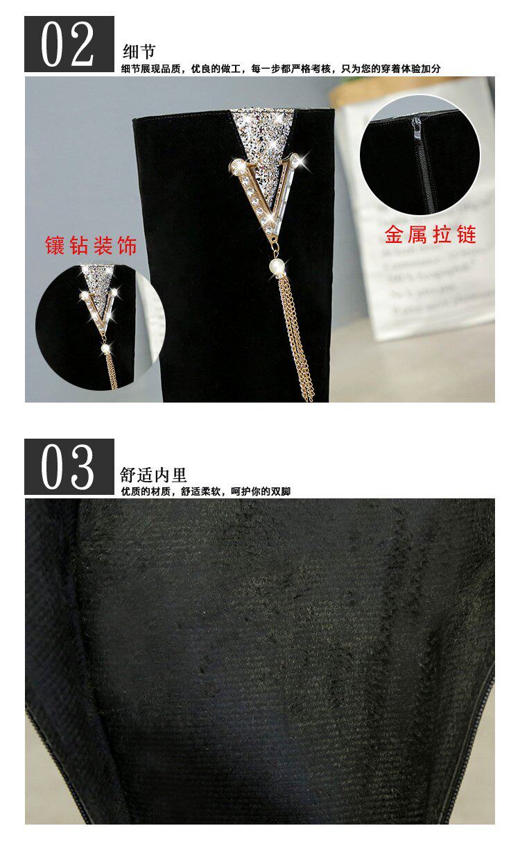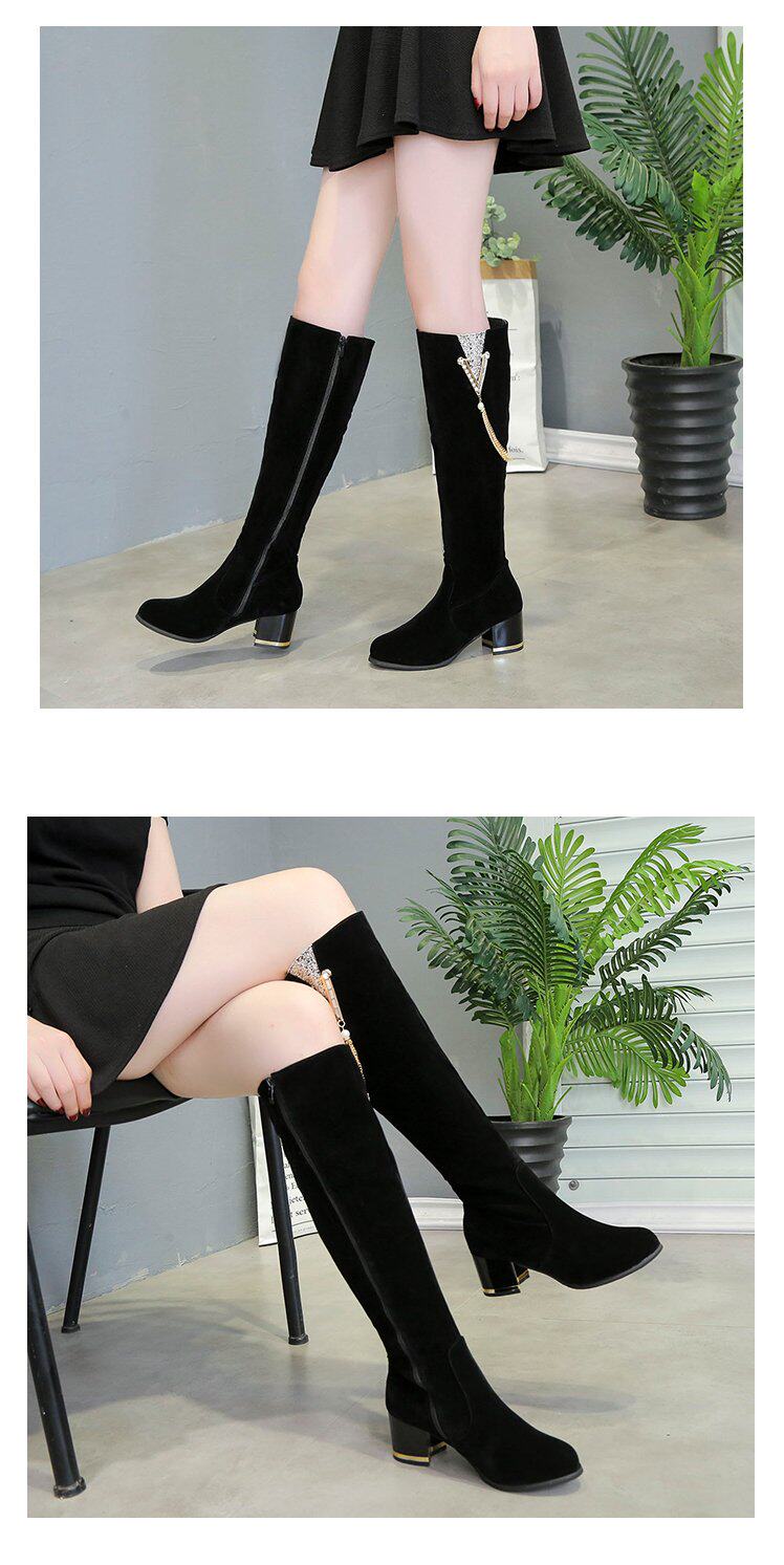 鏈子女鞋水鑽女靴新款靴子女長拉鍊冬靴高筒長靴春秋冬保暖騎士靴