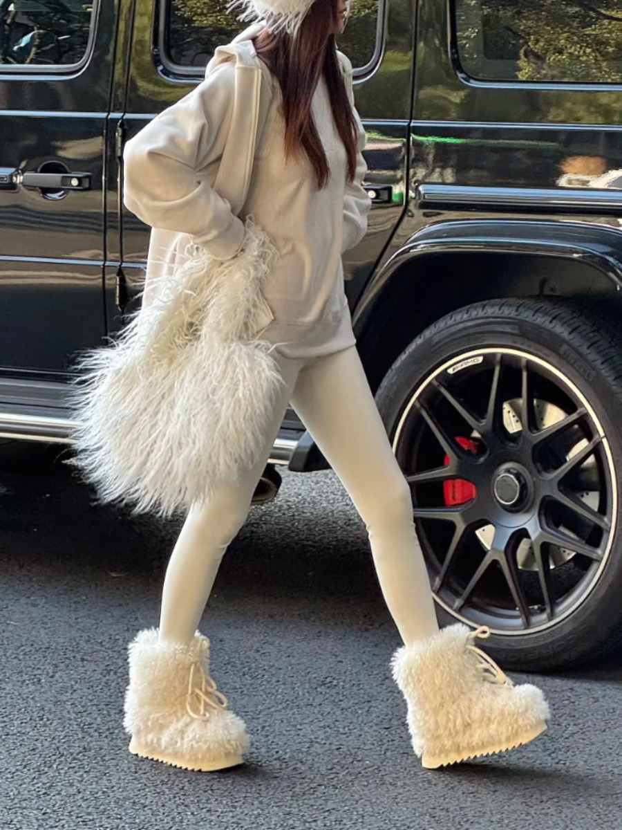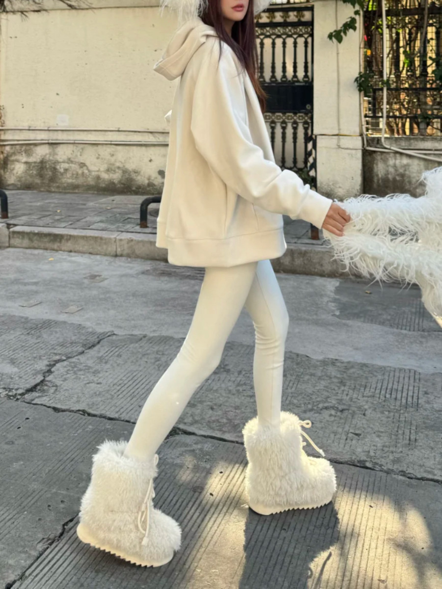 超可愛防滑厚底毛毛雪地靴女冬2025新款白色加絨短靴加厚保暖棉鞋