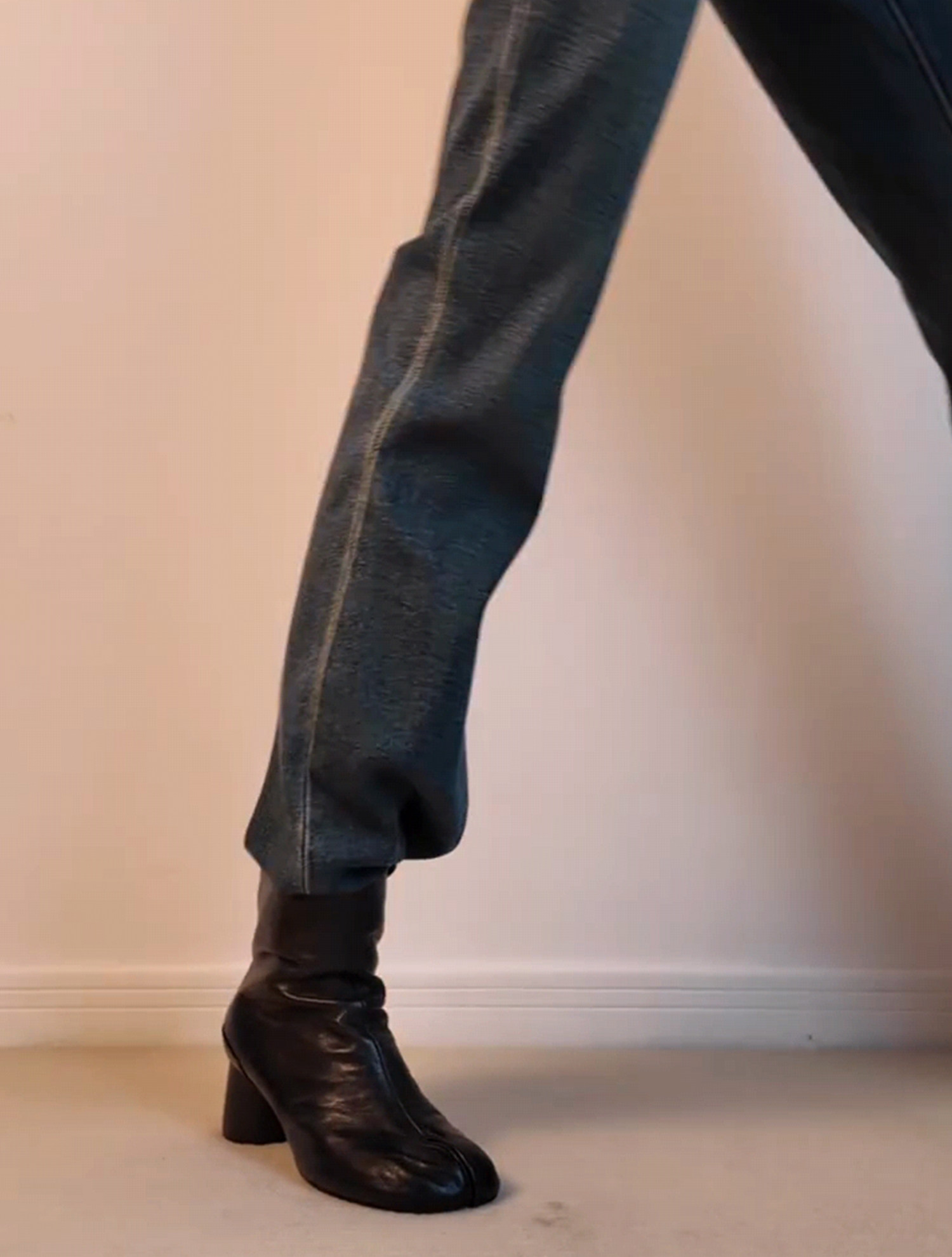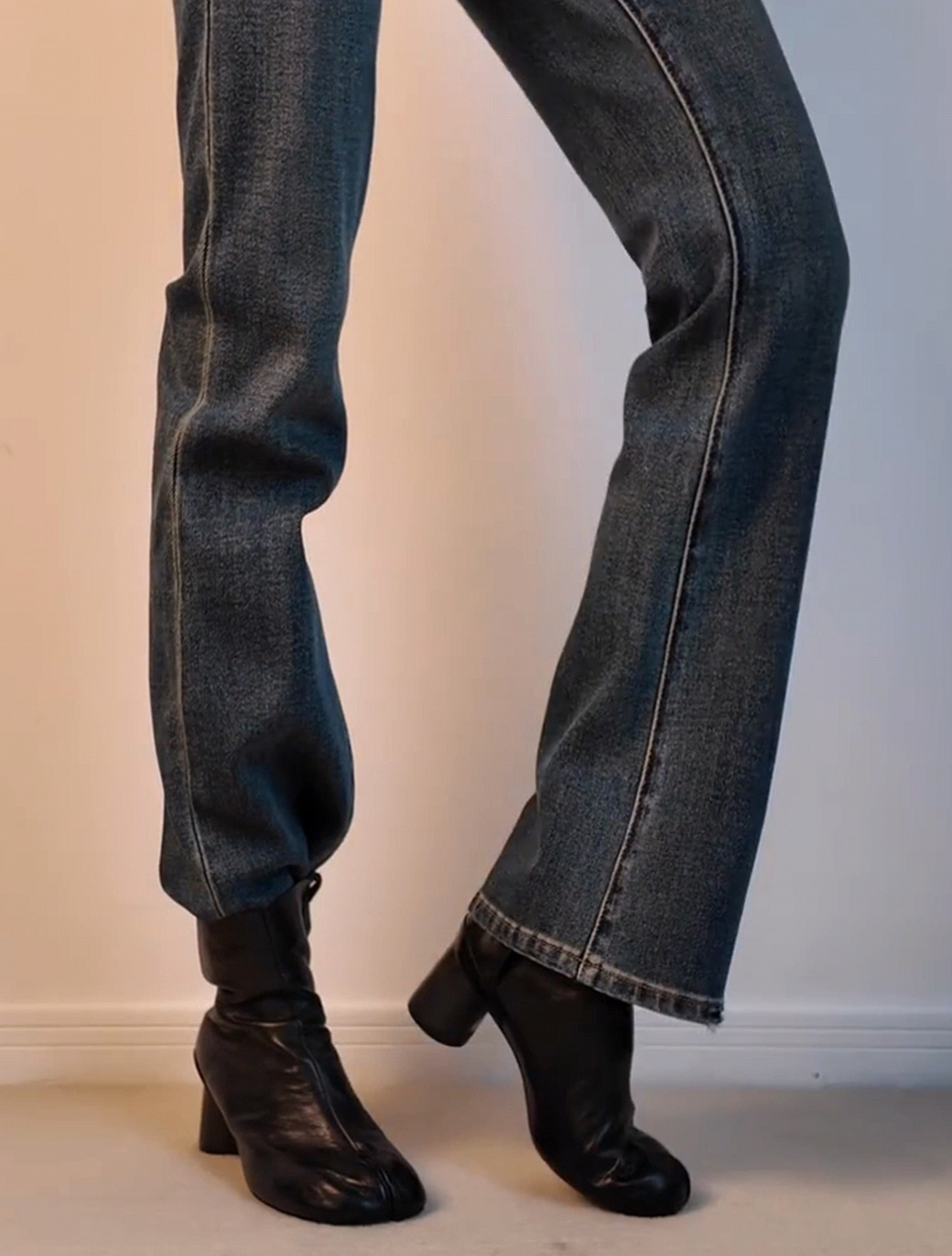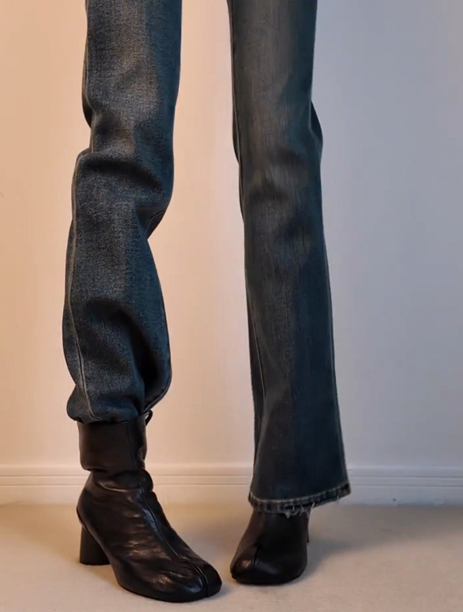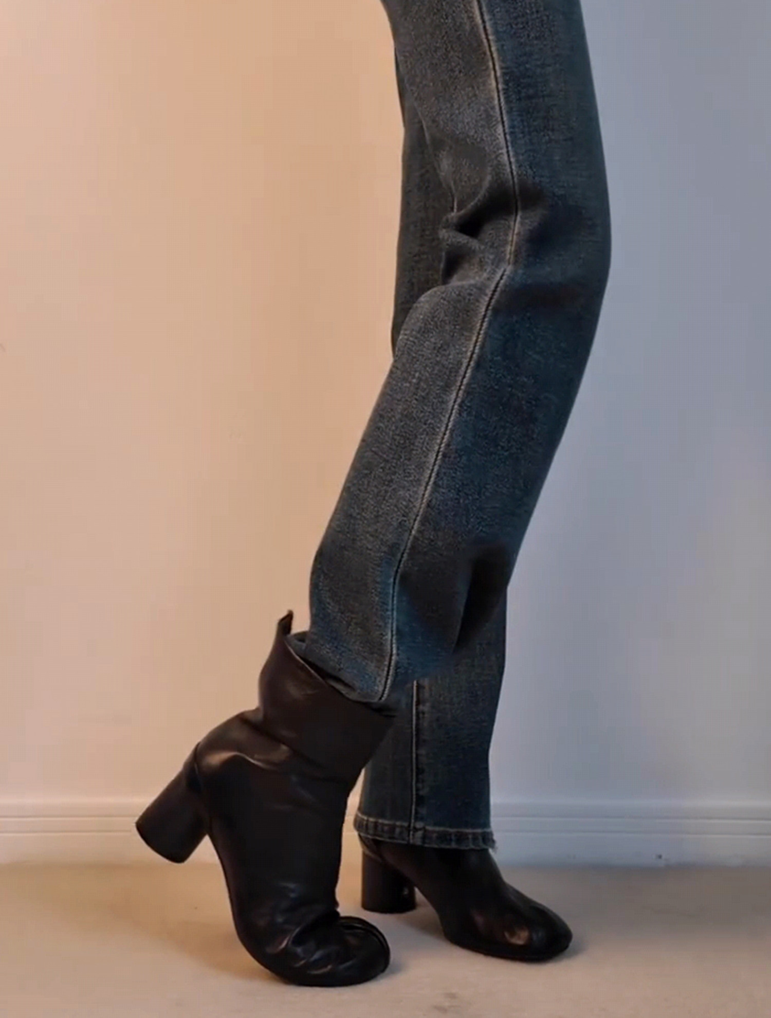 秋冬新款設計感小衆豬蹄分趾中筒靴女復古軟皮粗跟英倫風切爾西靴