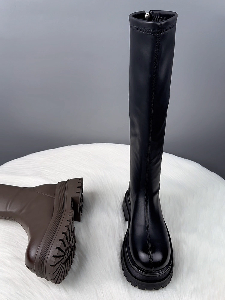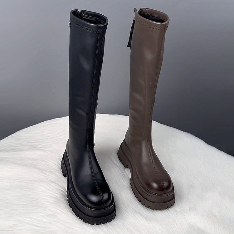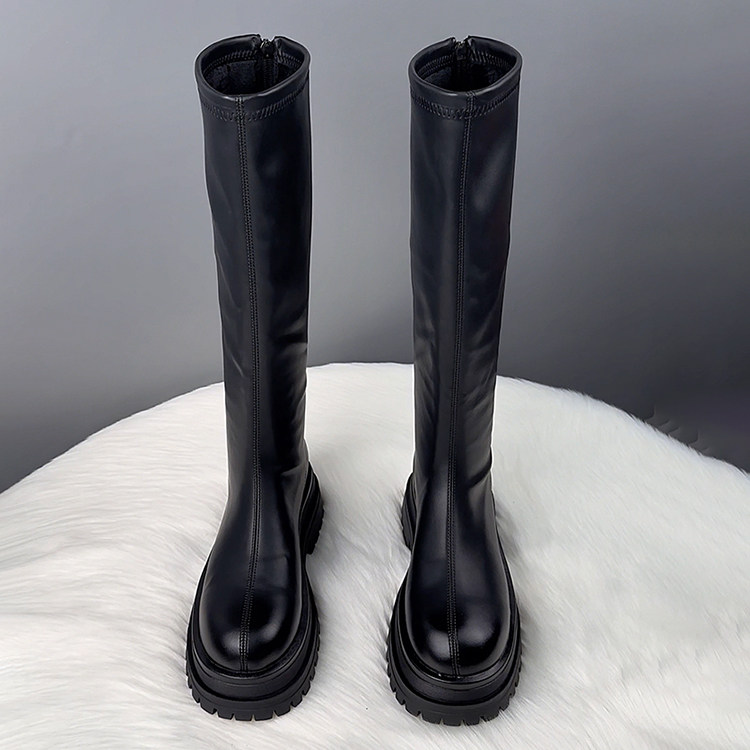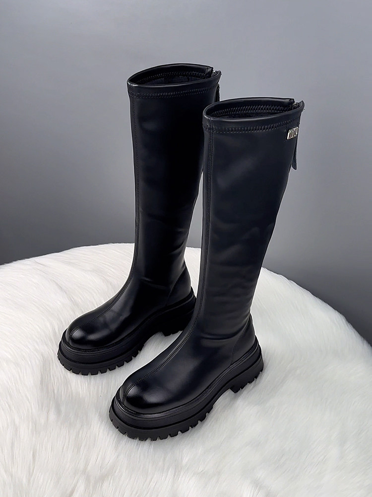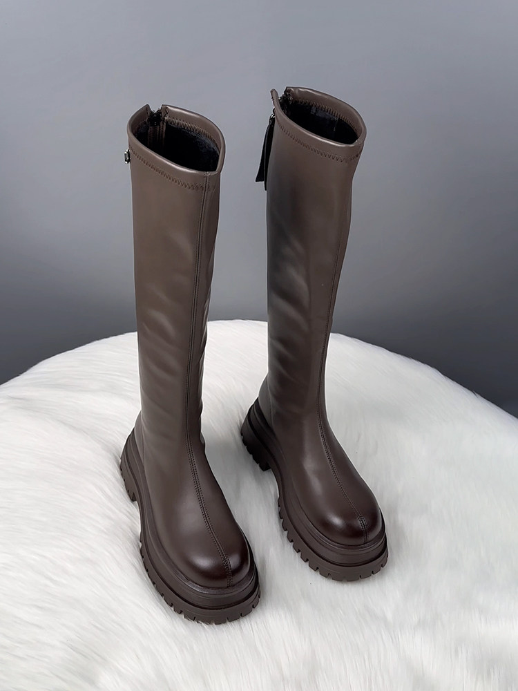 真皮厚底不過膝長筒靴女2025秋冬爆款顯瘦騎士靴騎士靴時尚瘦瘦靴
