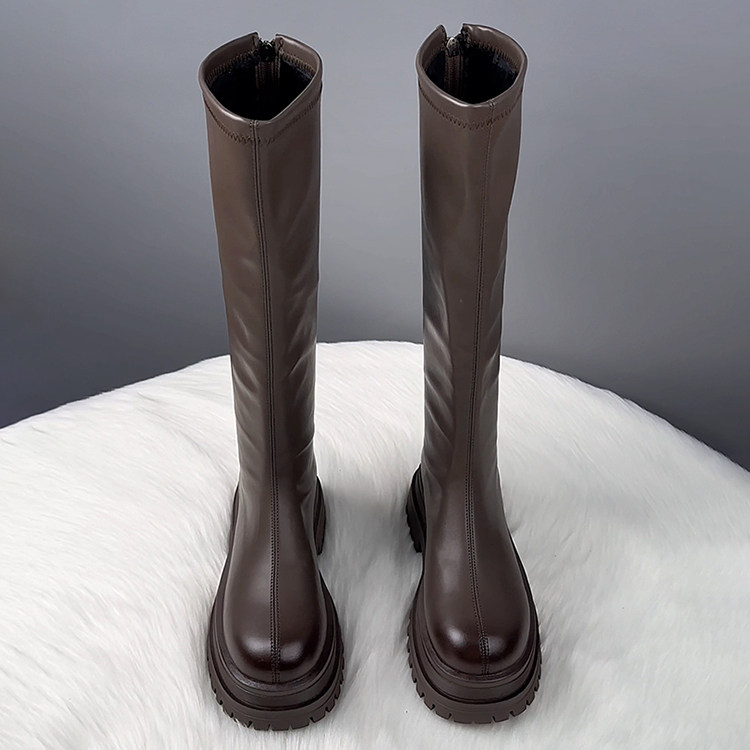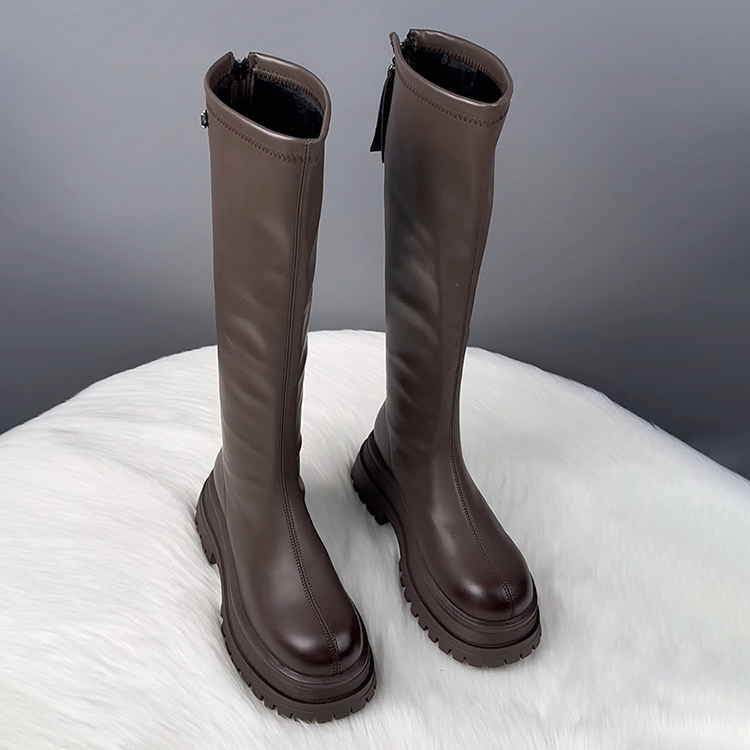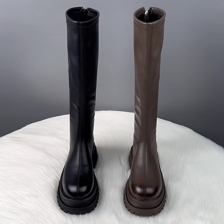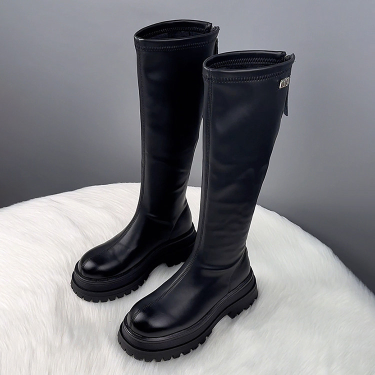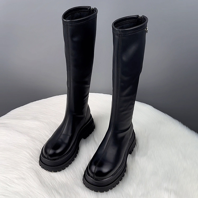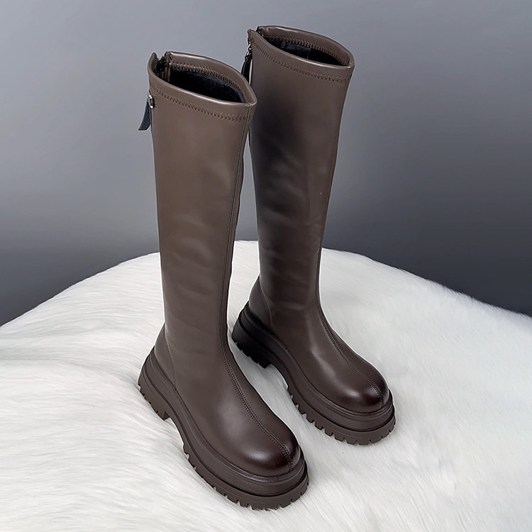 真皮厚底不過膝長筒靴女2025秋冬爆款顯瘦騎士靴騎士靴時尚瘦瘦靴