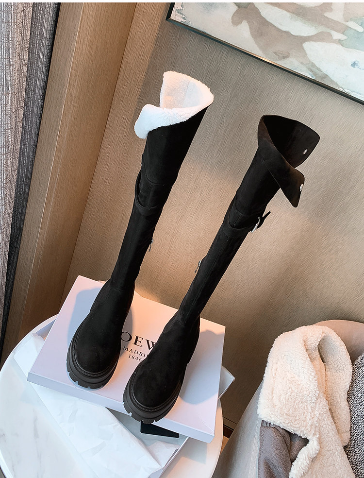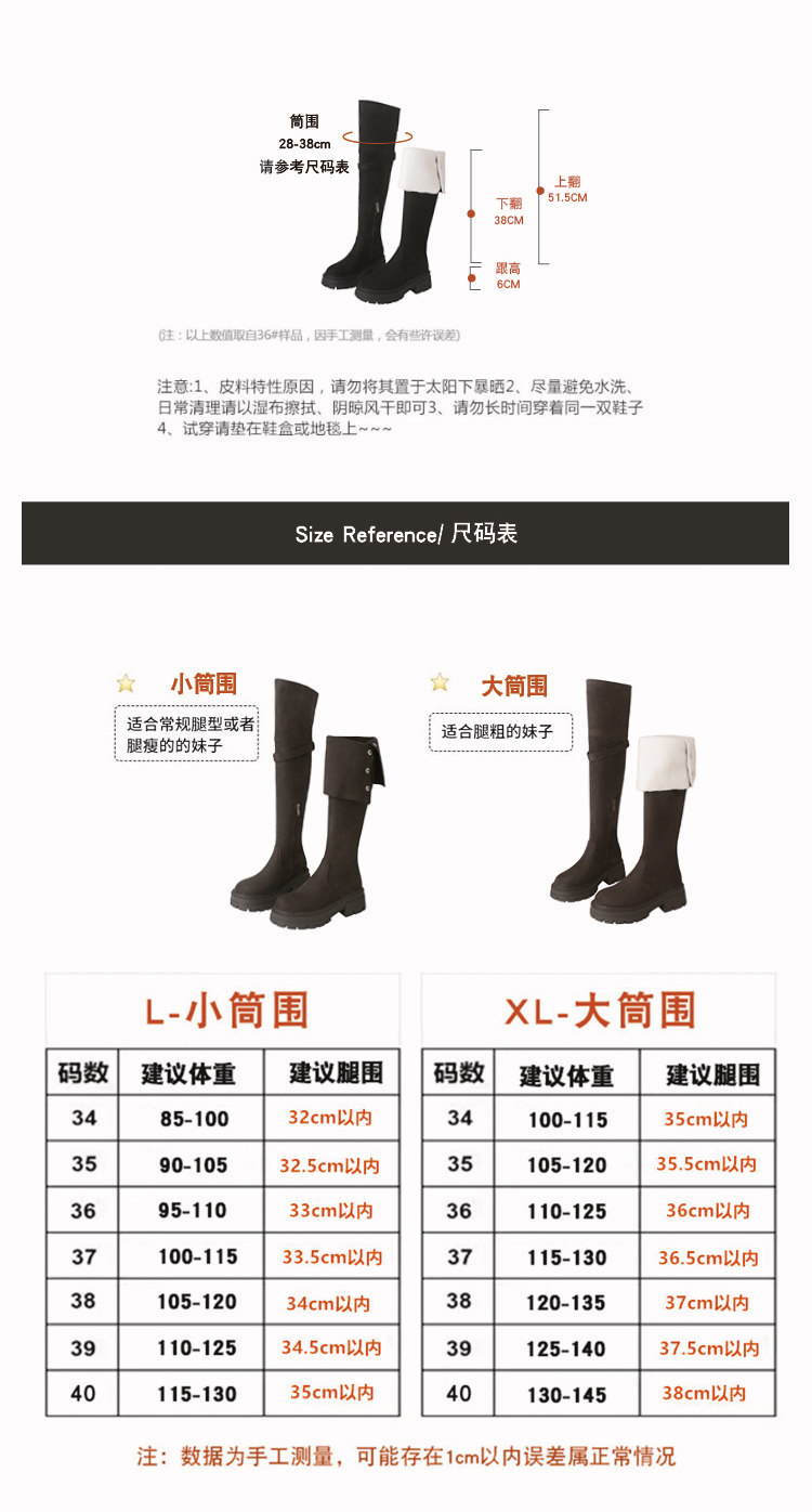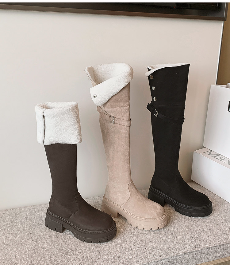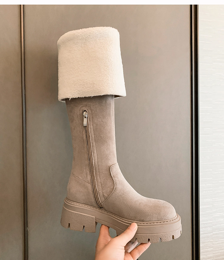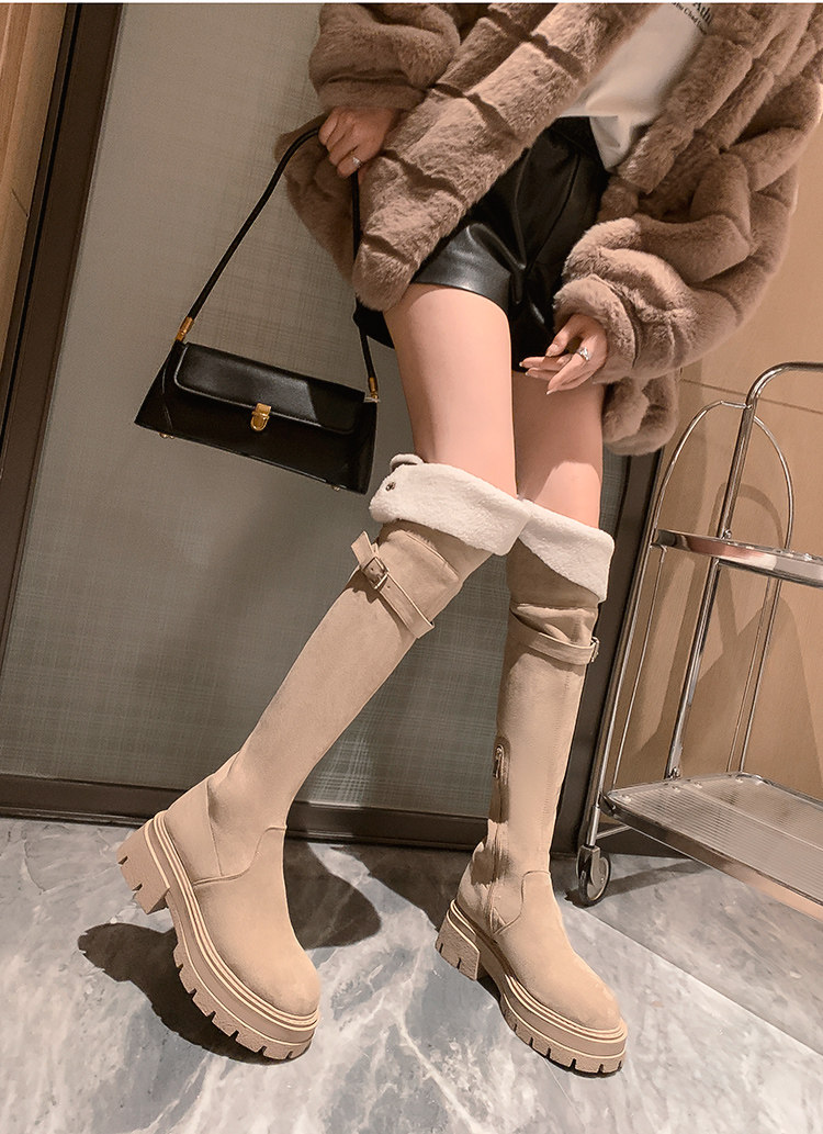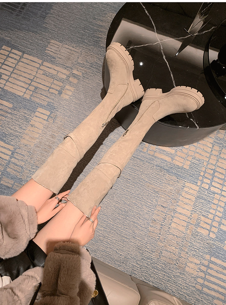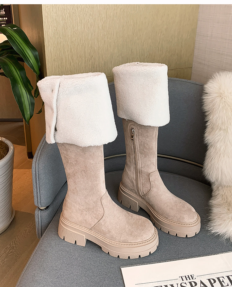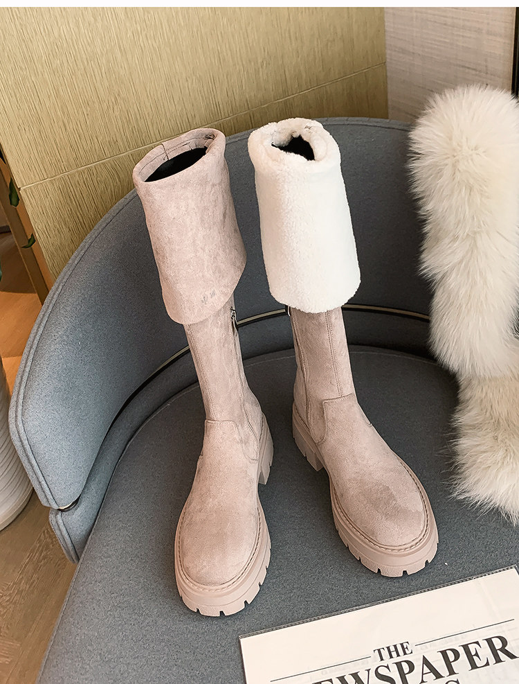 [還素]杏色過膝長靴女冬加絨保暖靴子厚底長筒靴大筒圍胖mm高靴