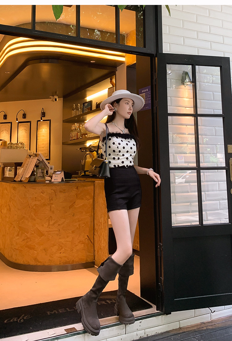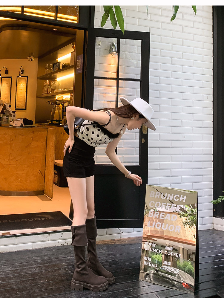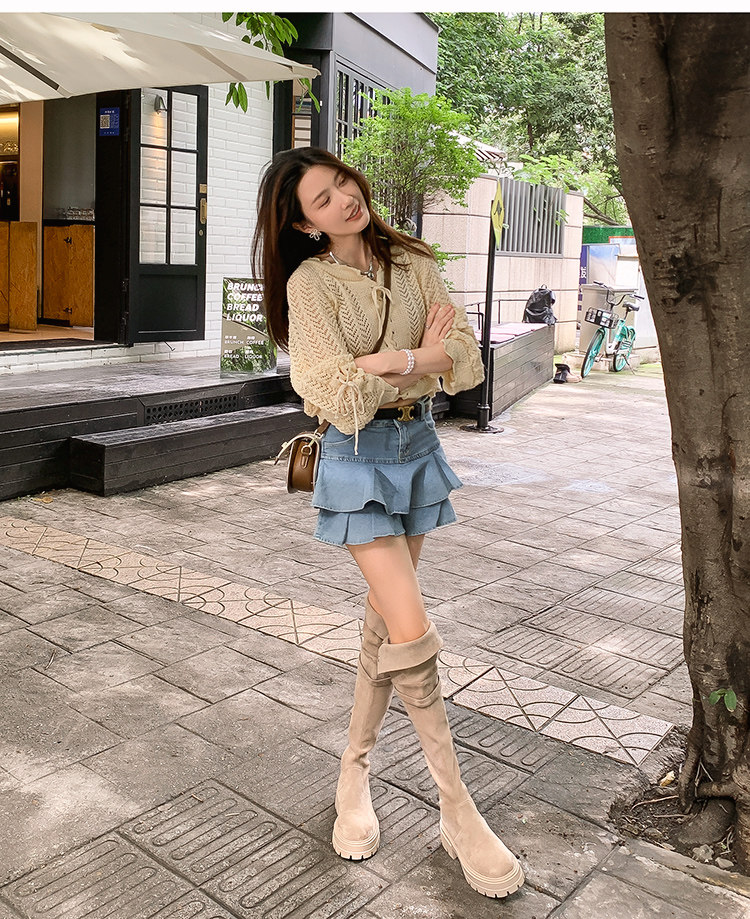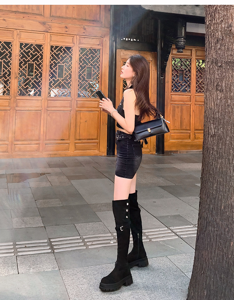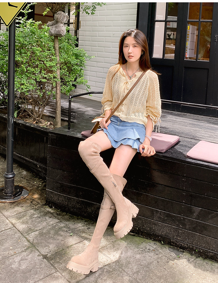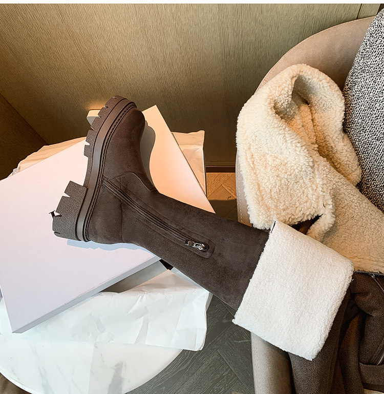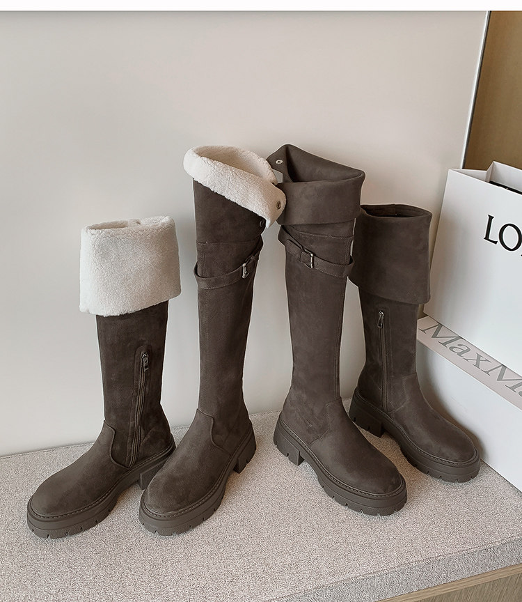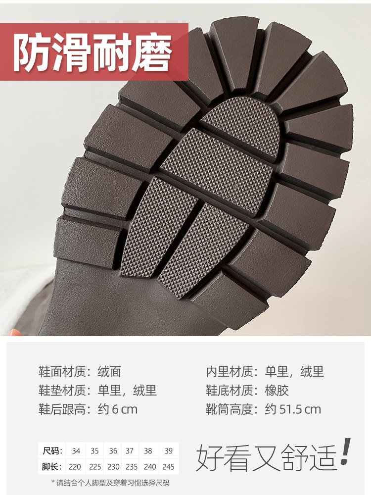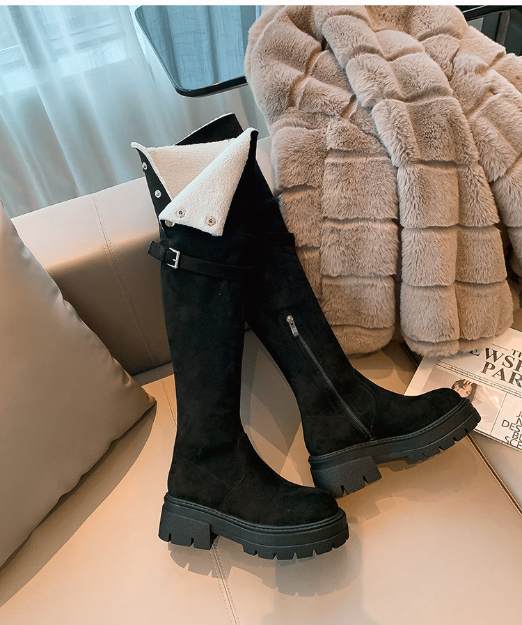 [還素]杏色過膝長靴女冬加絨保暖靴子厚底長筒靴大筒圍胖mm高靴