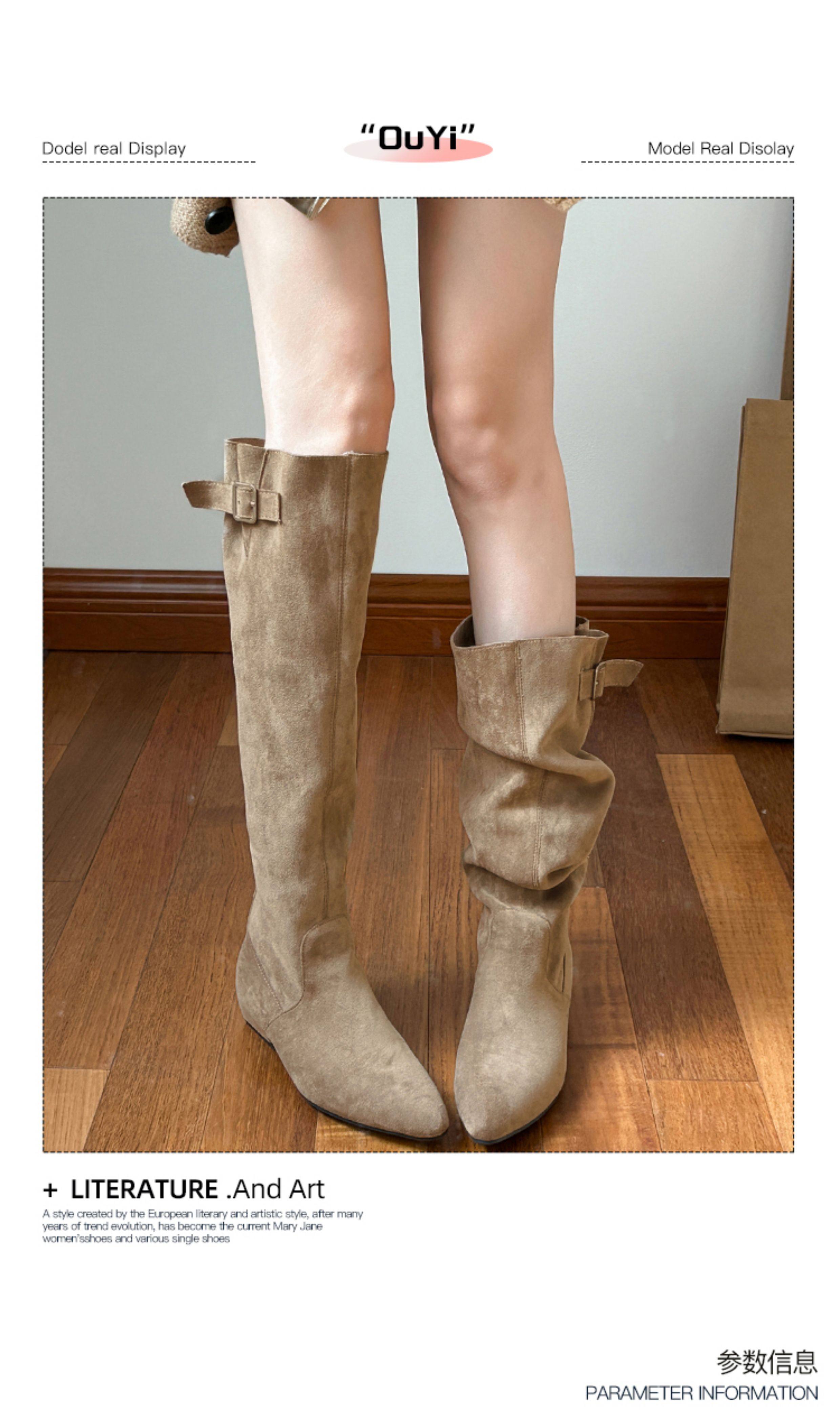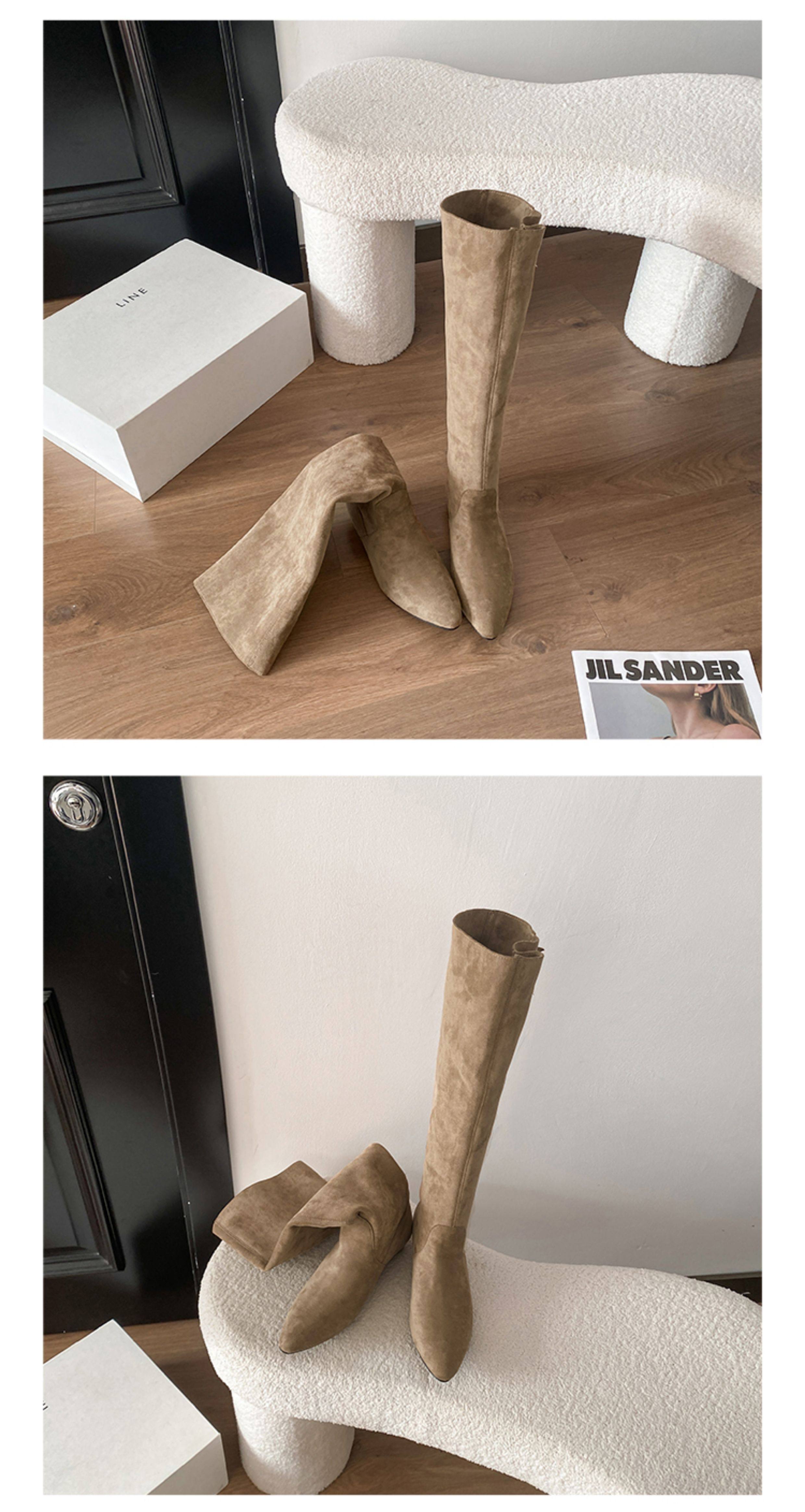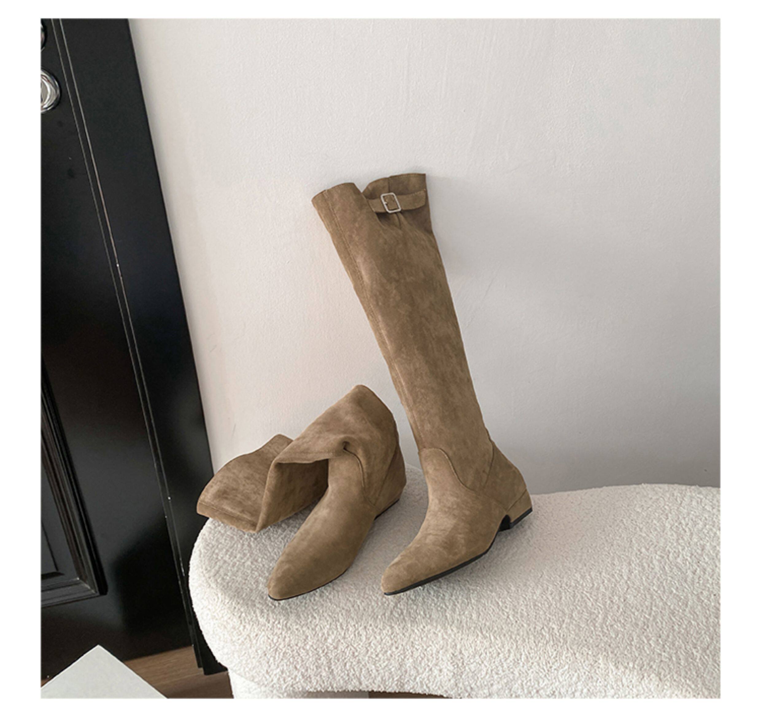 羊皮版~超火絕美長靴不過膝麂皮尖頭騎士靴女夏季薄款顯瘦堆堆靴