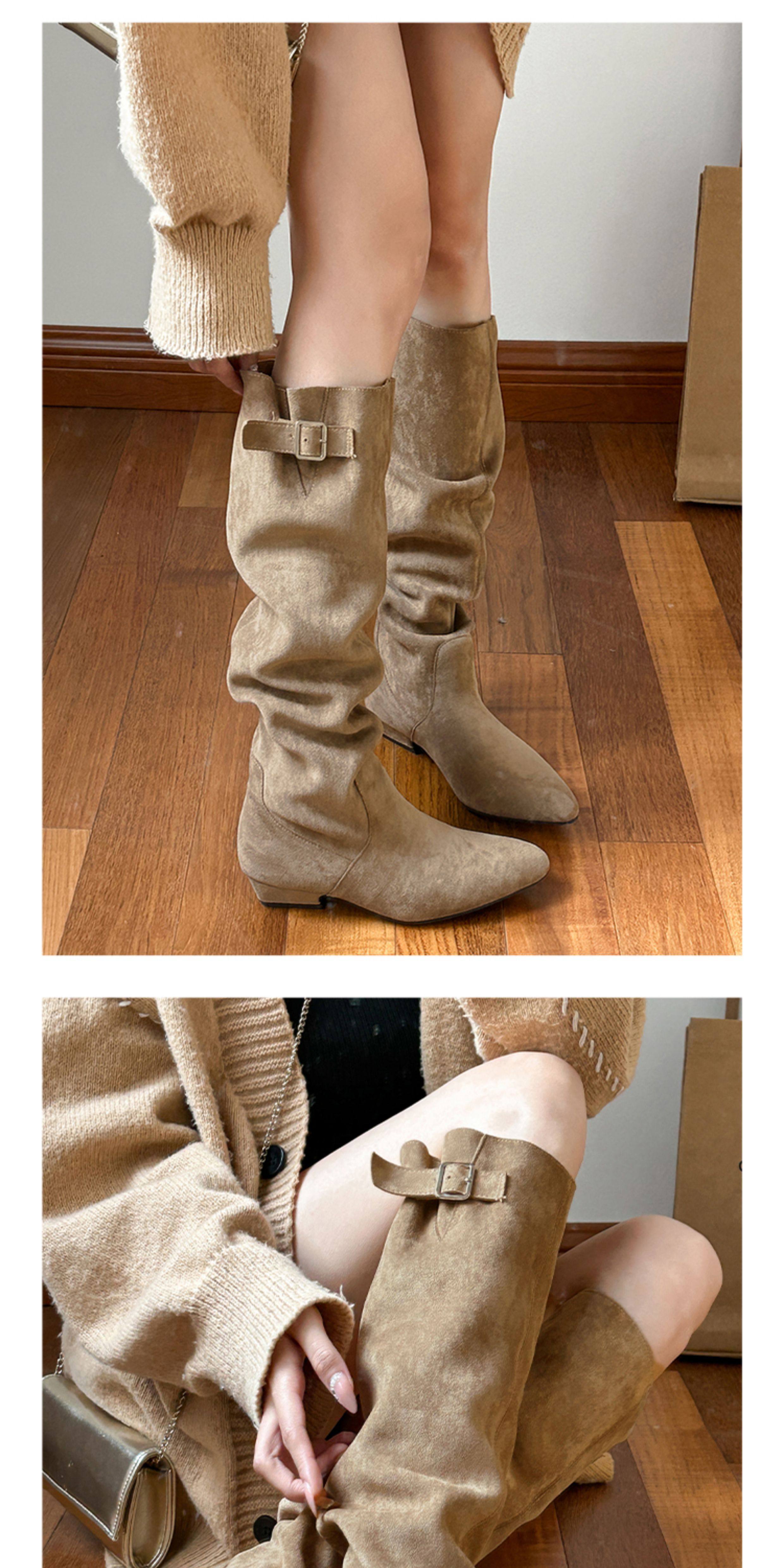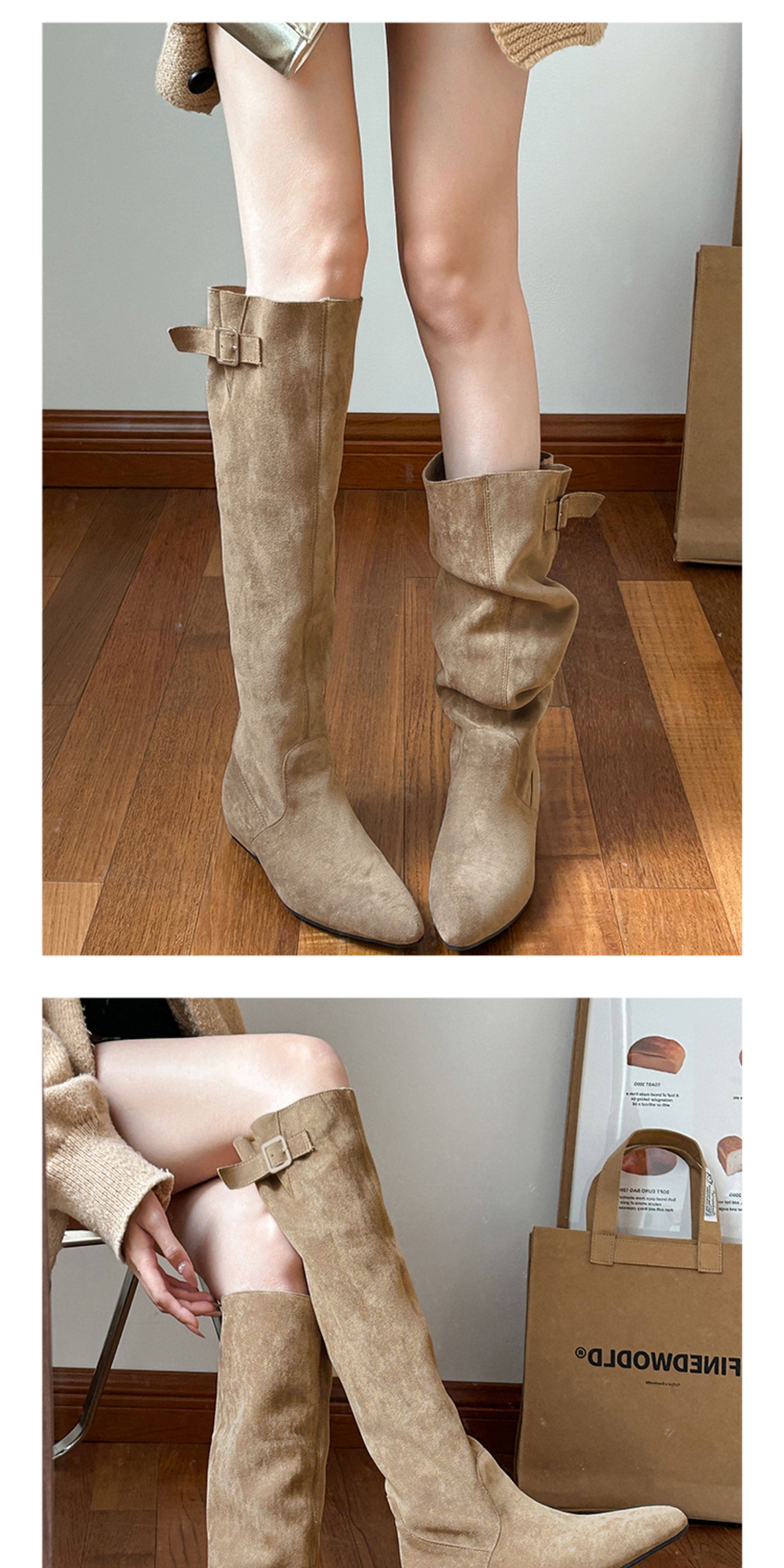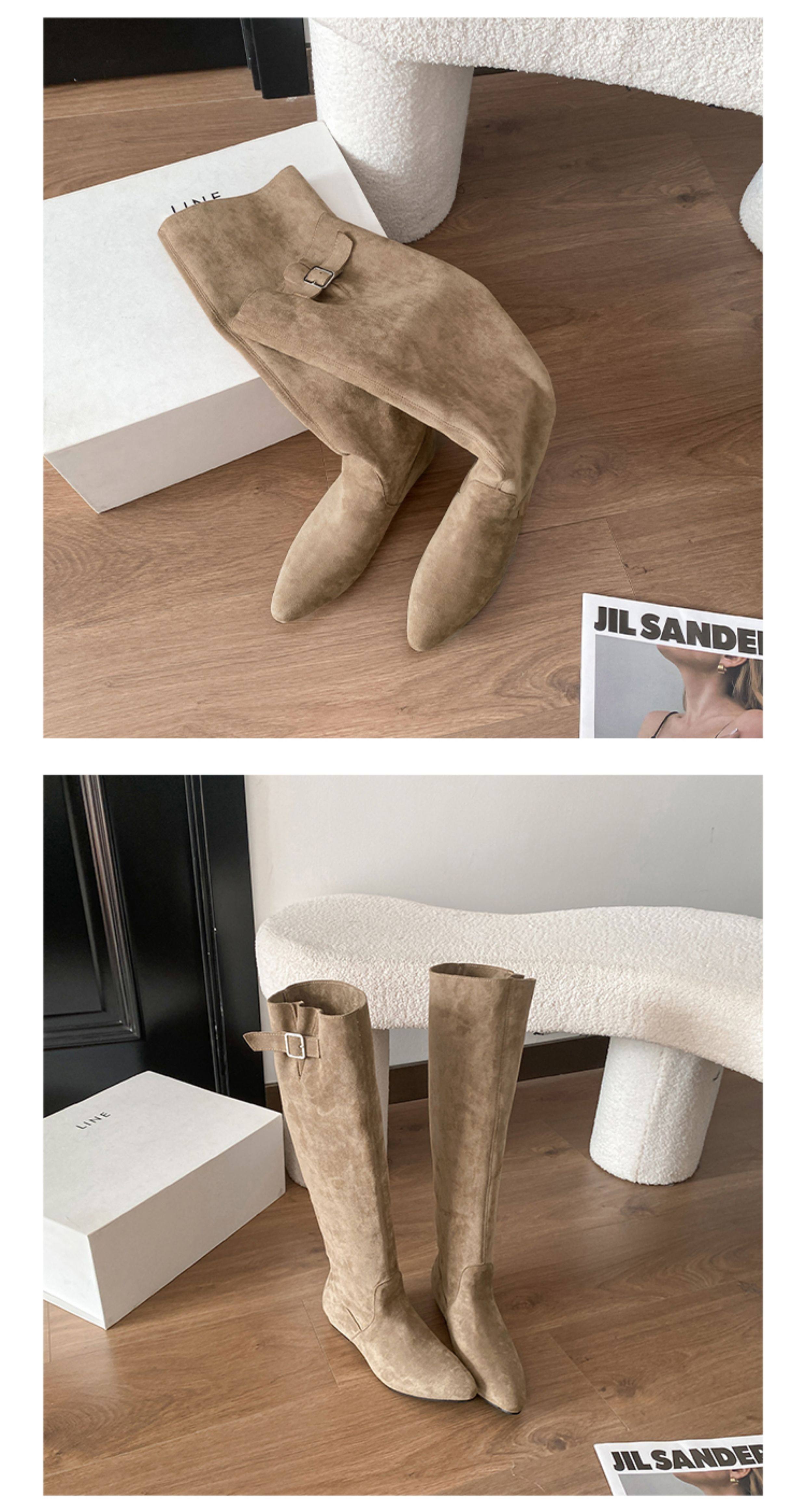 羊皮版~超火絕美長靴不過膝麂皮尖頭騎士靴女夏季薄款顯瘦堆堆靴