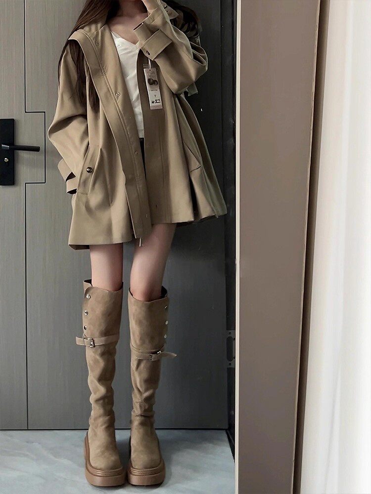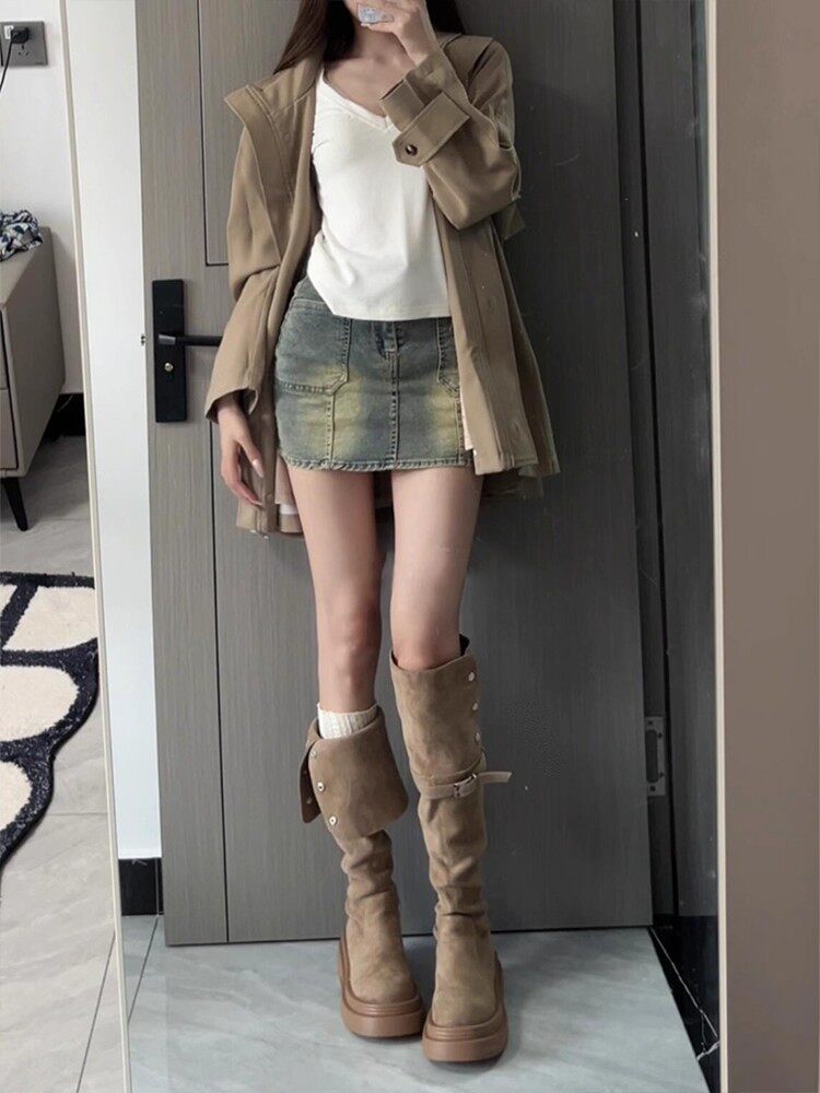 時尚百搭洋氣長筒靴女2025年新款辣妹增高顯瘦高筒長靴子騎士靴子