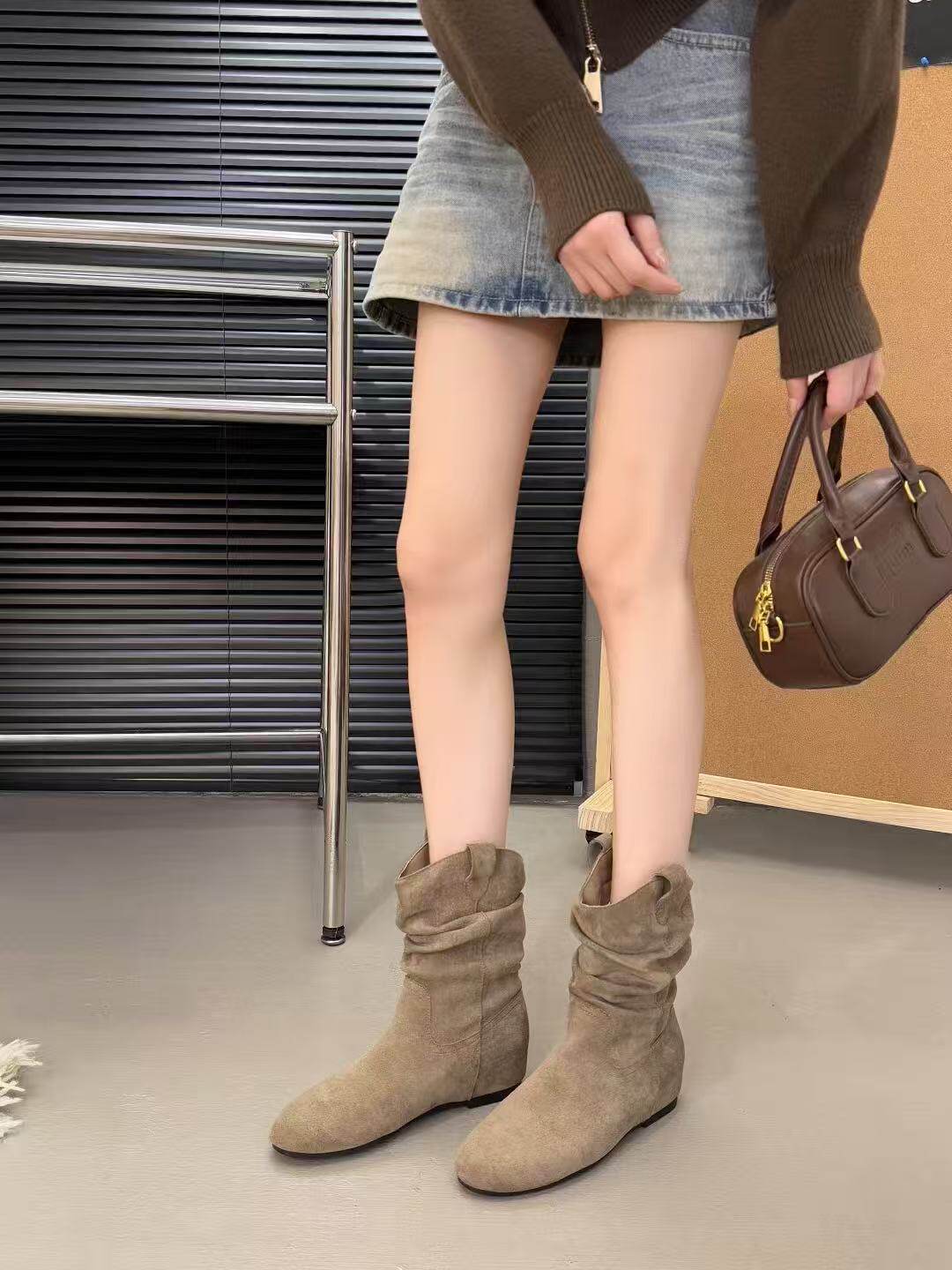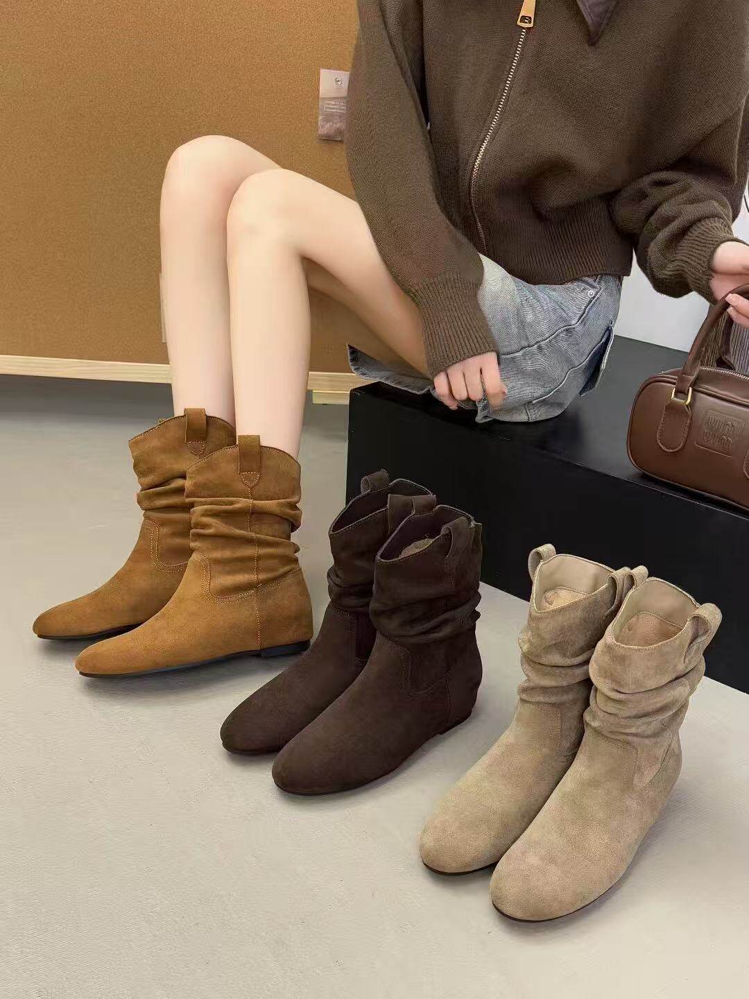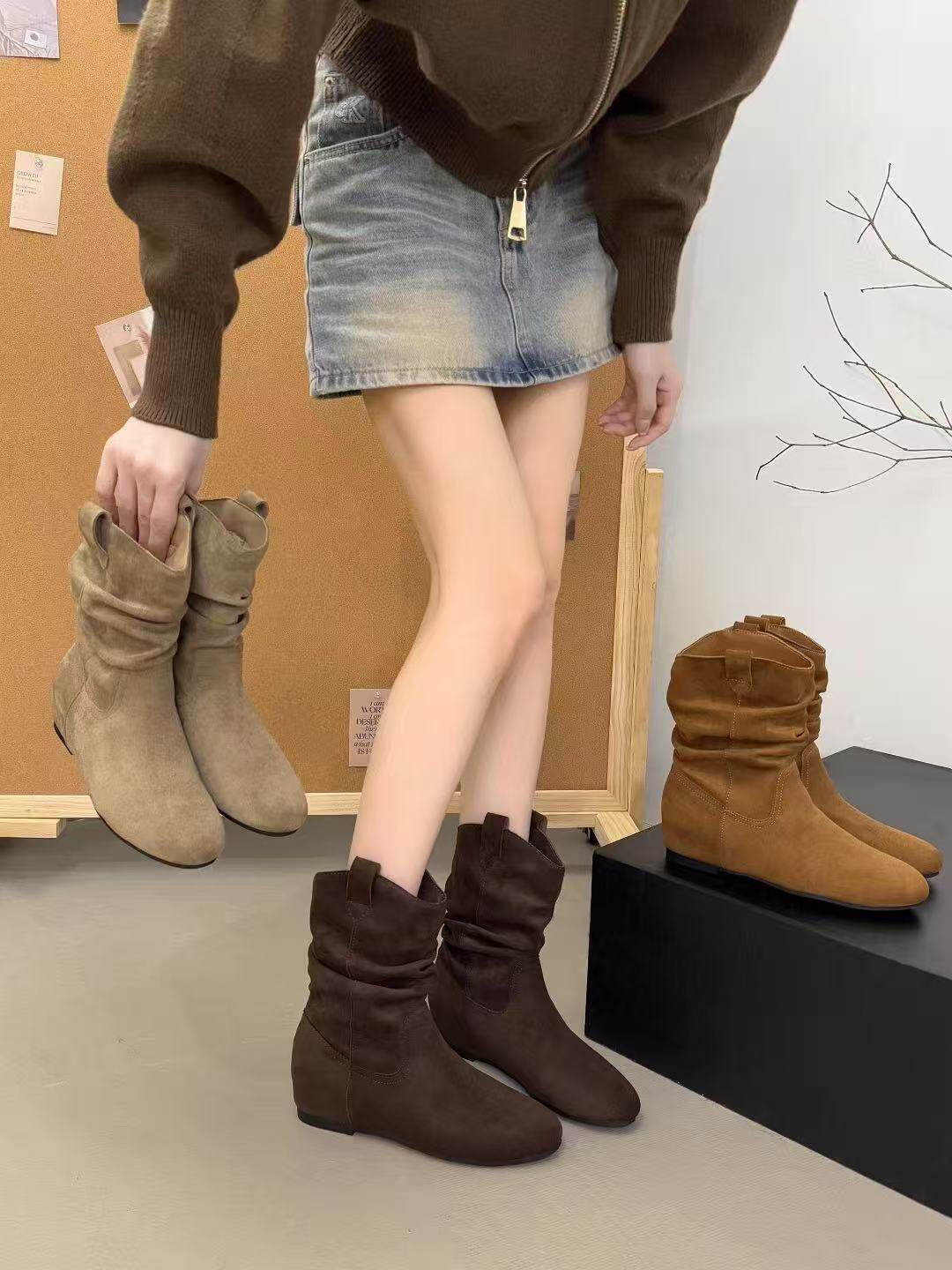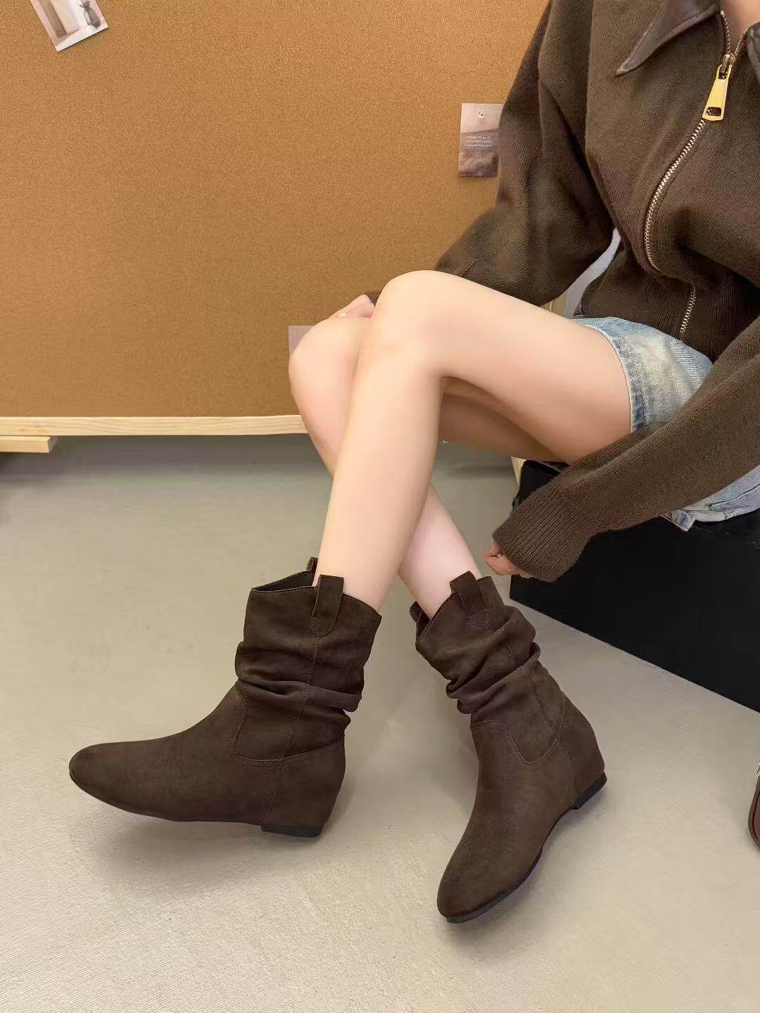 內增高復古勃肯旅遊小短靴2025新款夏秋配裙子堆堆靴切爾西瘦瘦靴