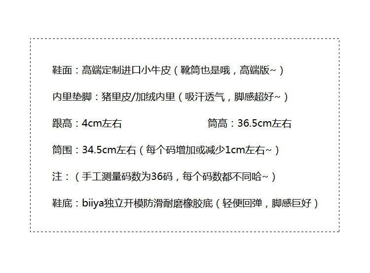 | 靴筒內裡材質 | 頭層豬皮 |