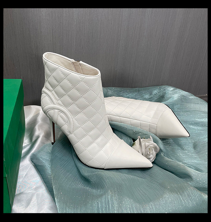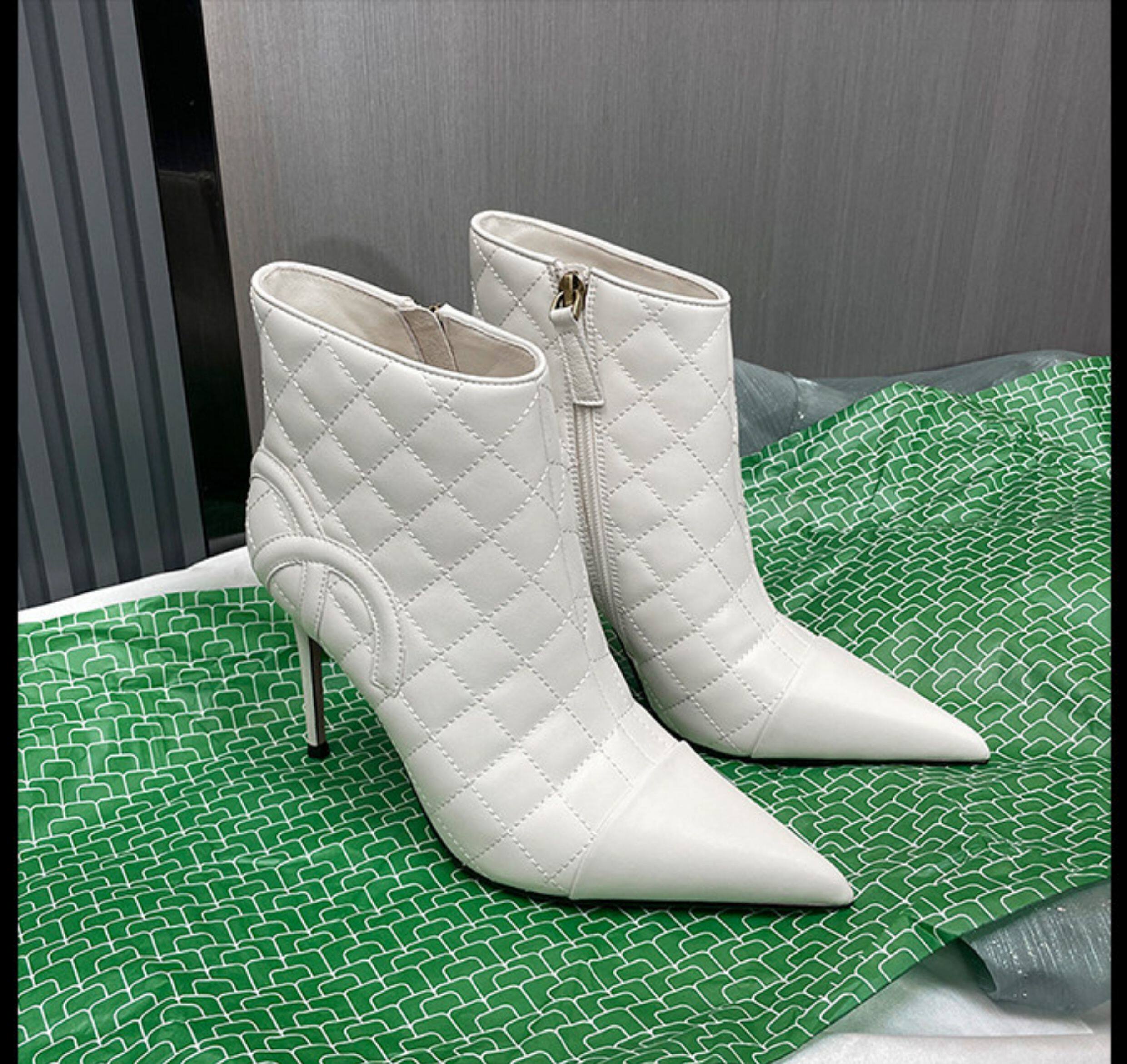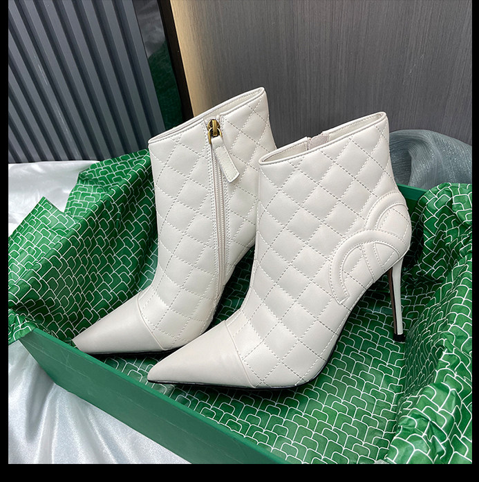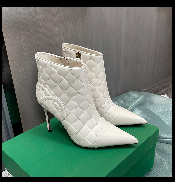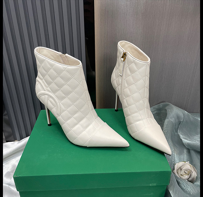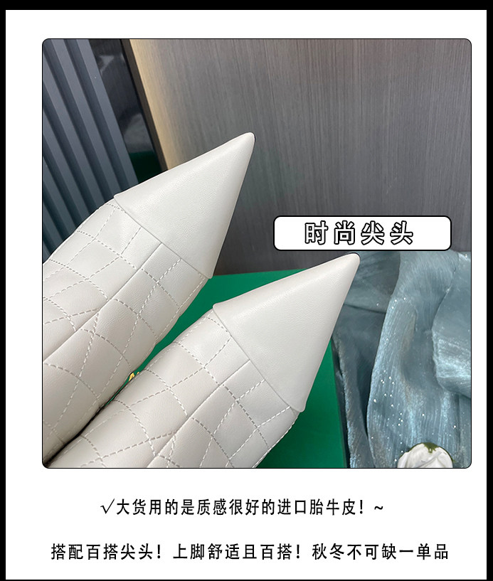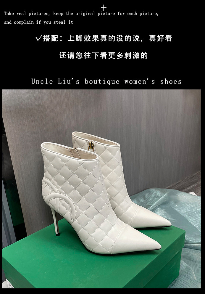 小香風尖頭高跟白色短靴女款2025秋冬新款爆款超火小個子真皮靴子