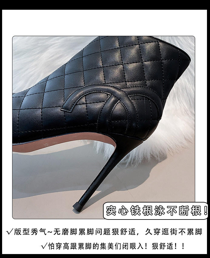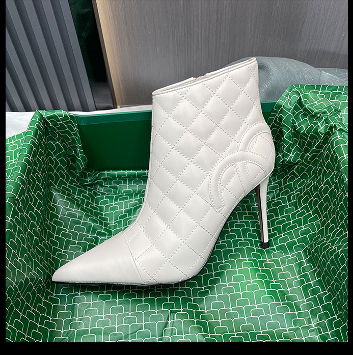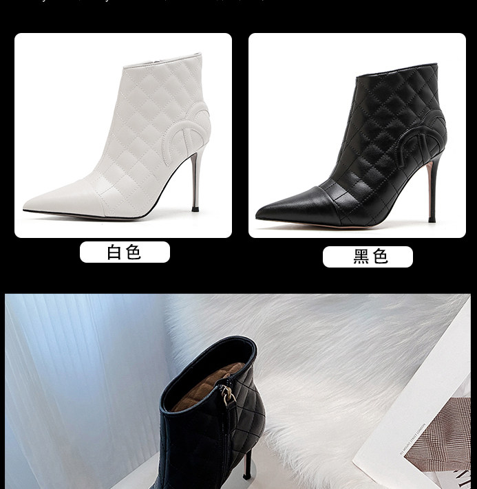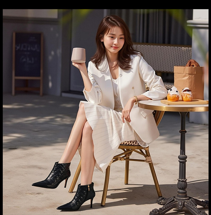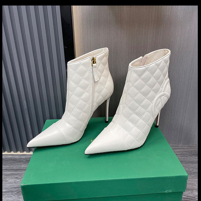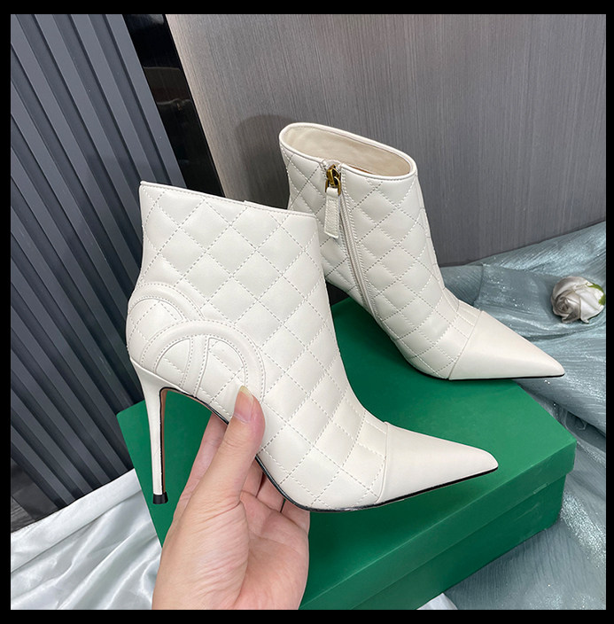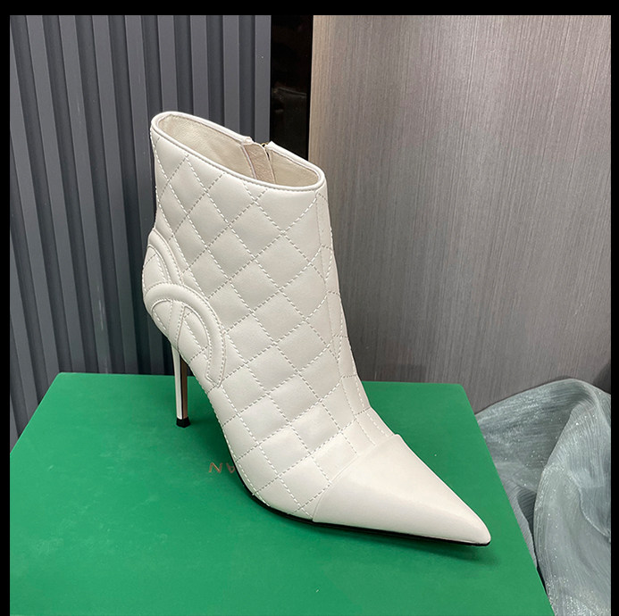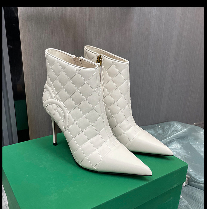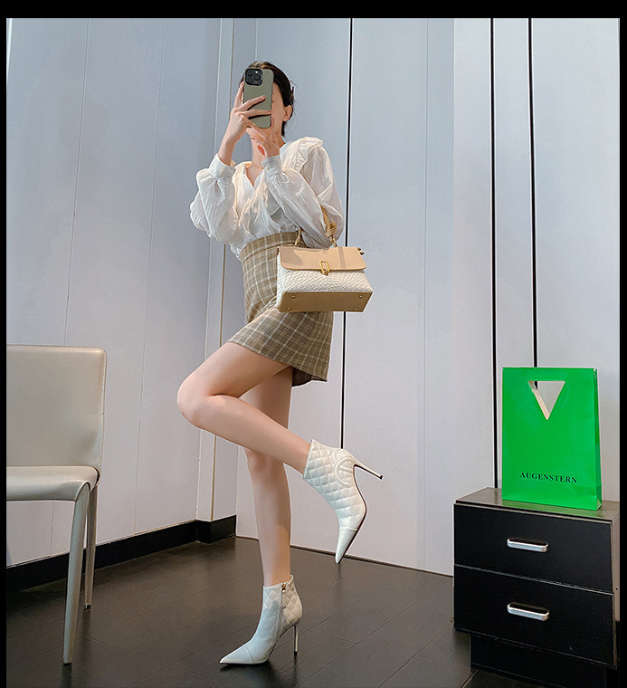 小香風尖頭高跟白色短靴女款2025秋冬新款爆款超火小個子真皮靴子