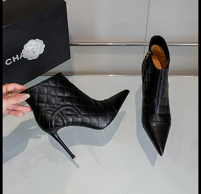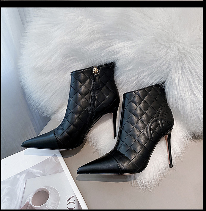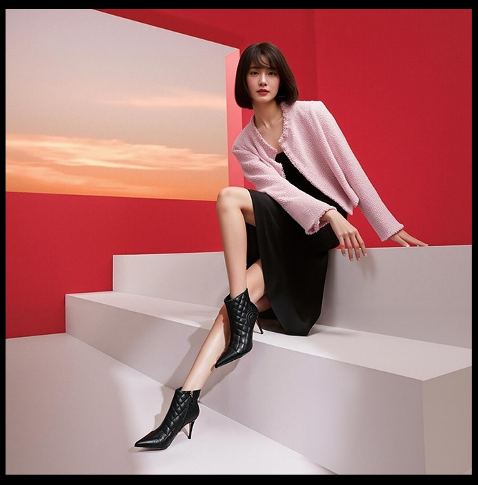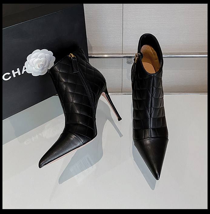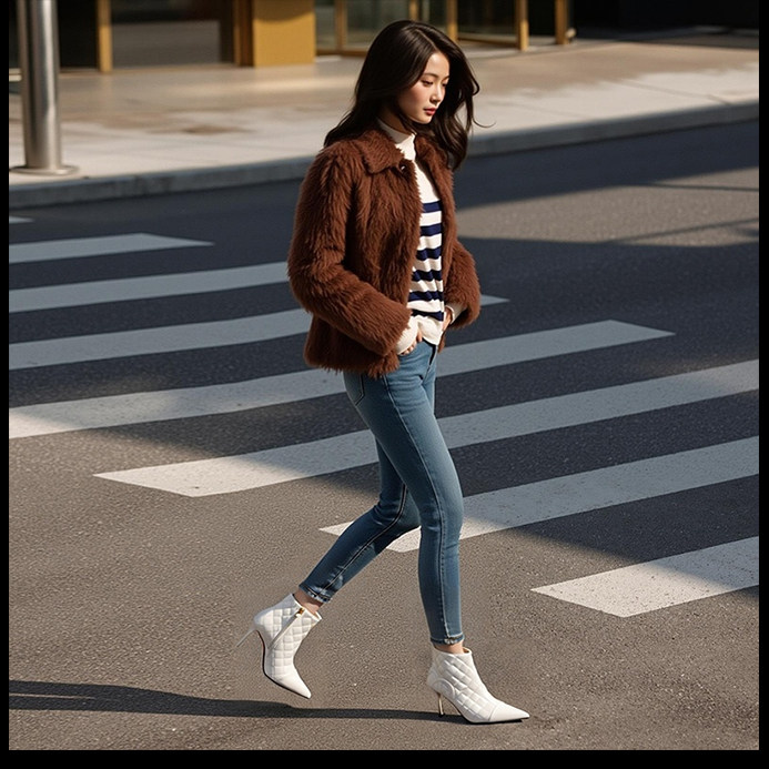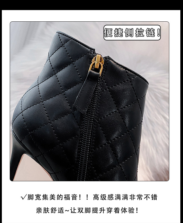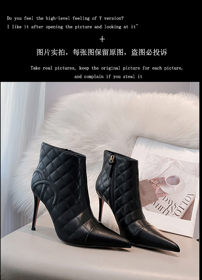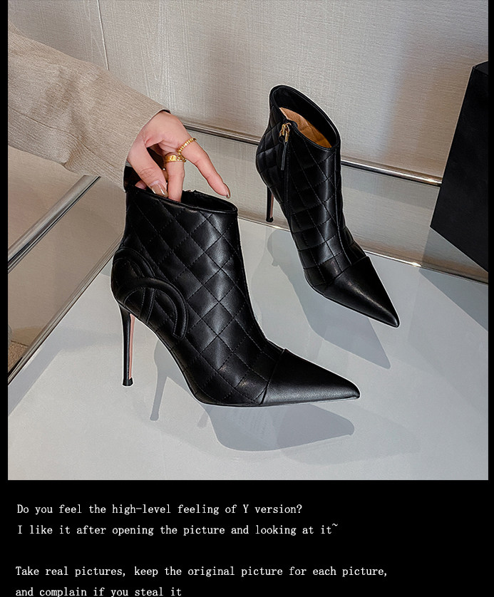 小香風尖頭高跟白色短靴女款2025秋冬新款爆款超火小個子真皮靴子