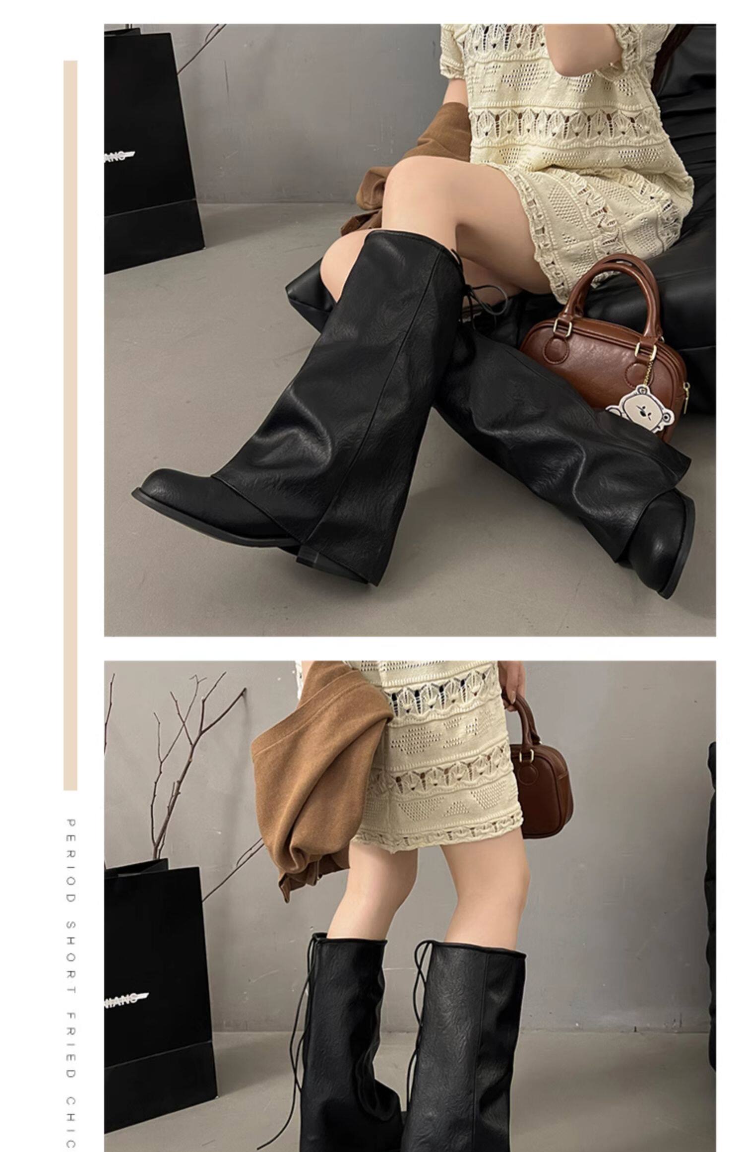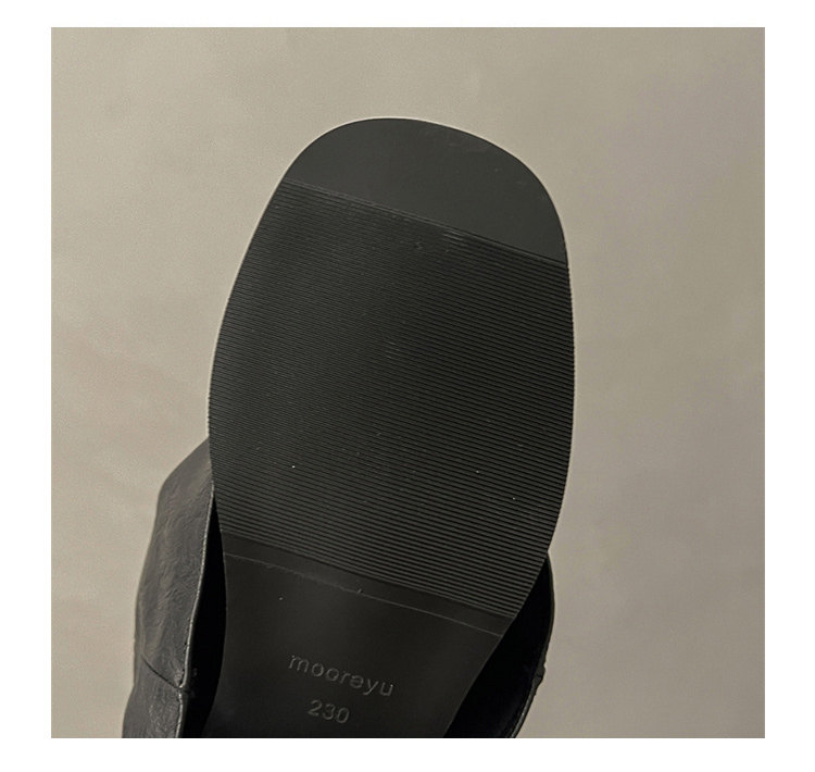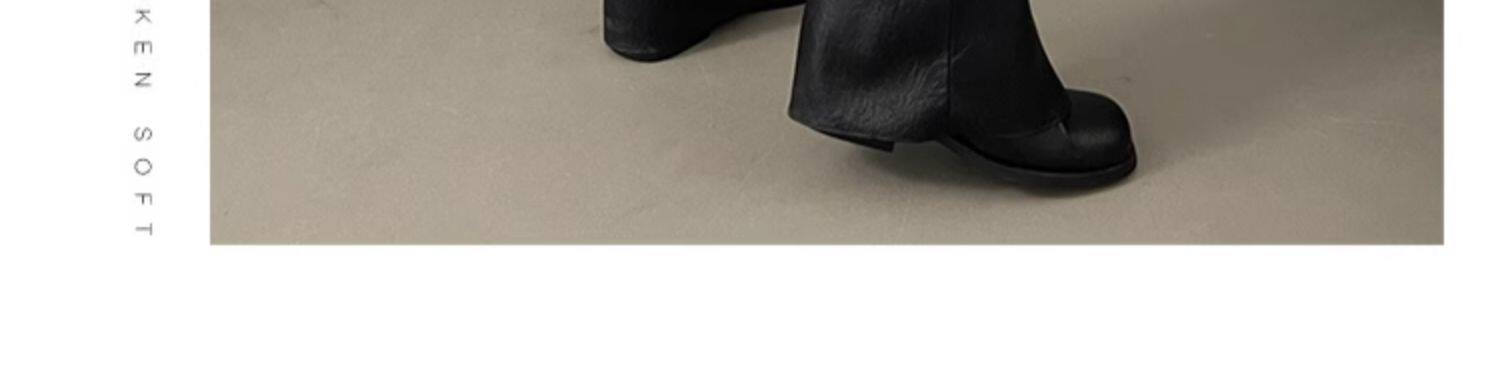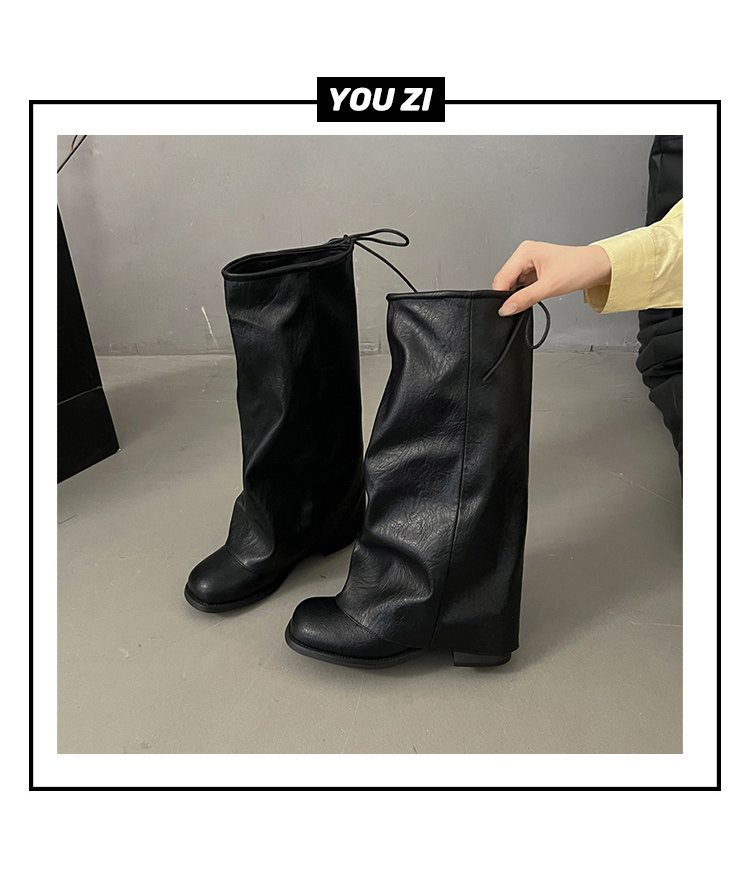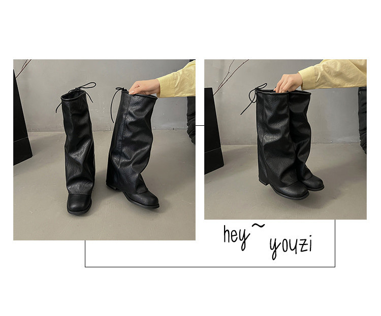 方頭粗跟長筒靴子女顯瘦大筒圍褶皺堆堆褲琯長靴不過膝高筒騎士靴