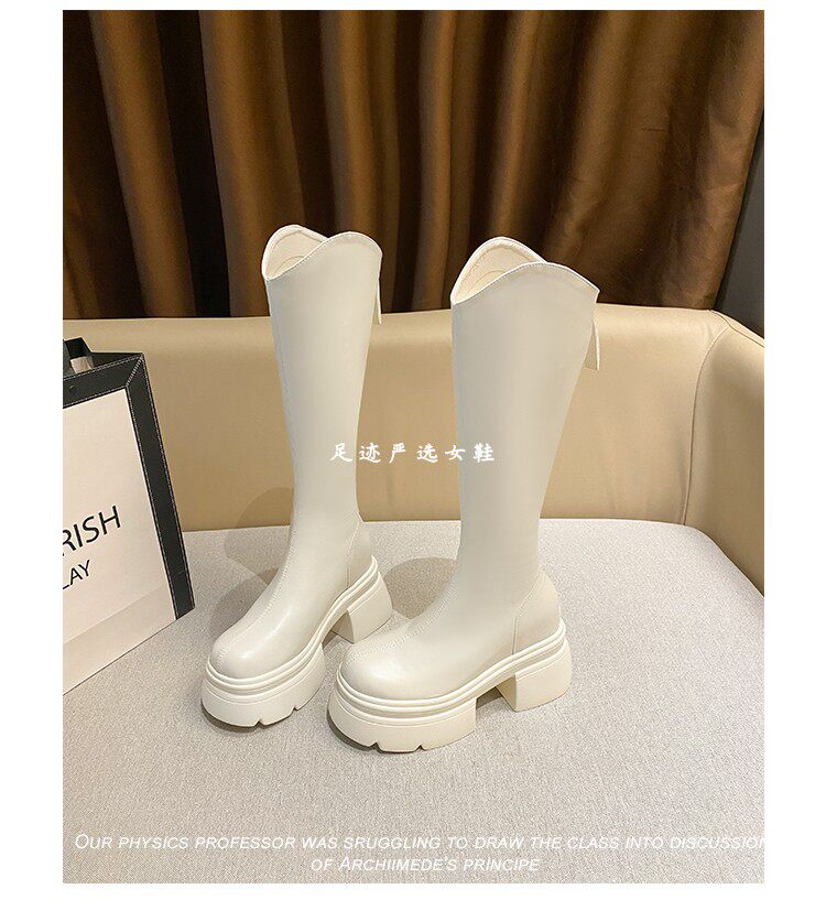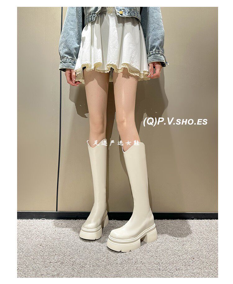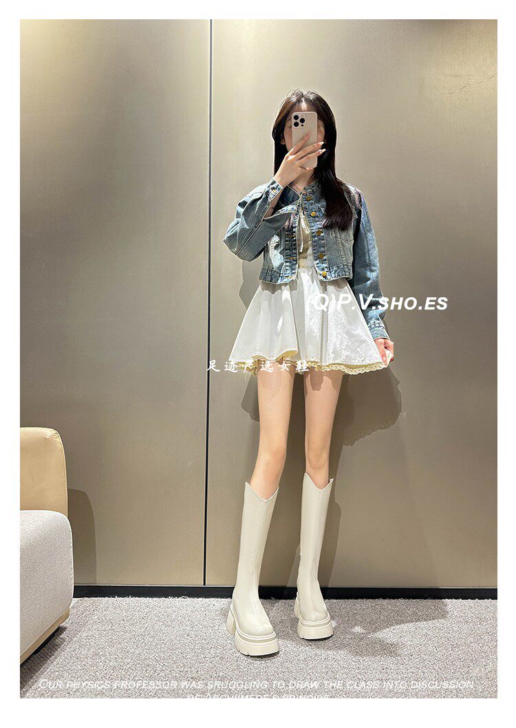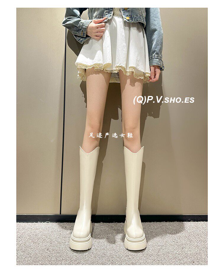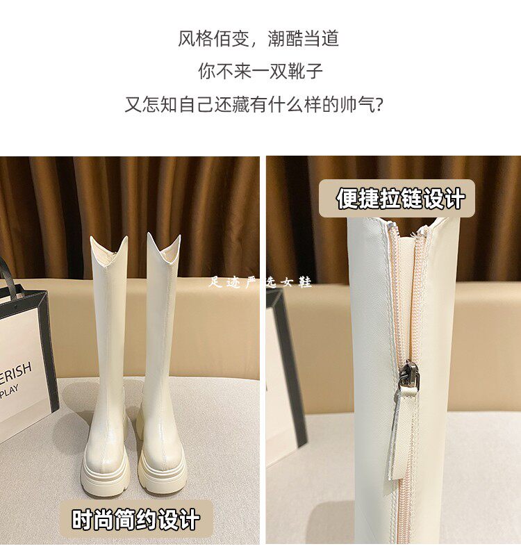 白色小個子長筒靴女2026新款秋冬內增高12cm高筒長靴顯瘦騎士靴女