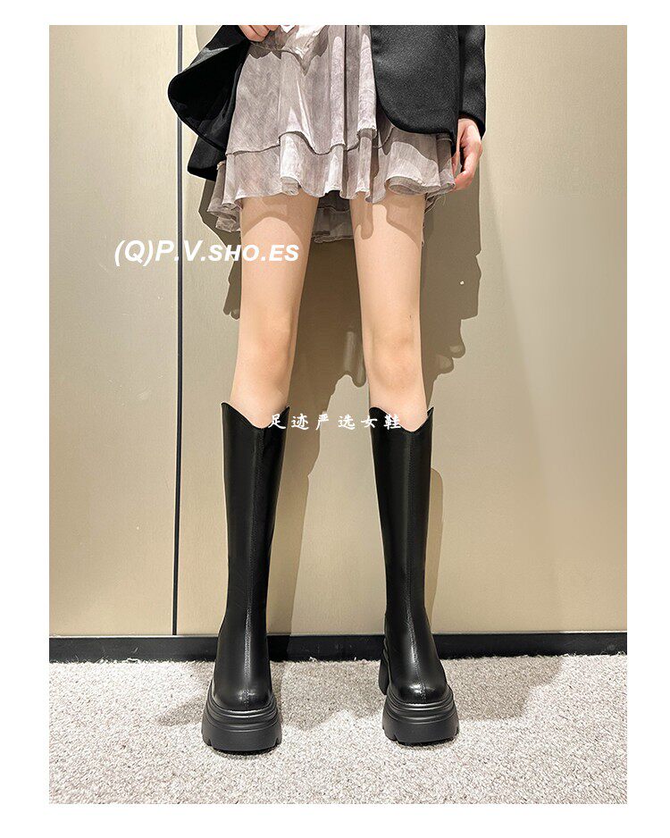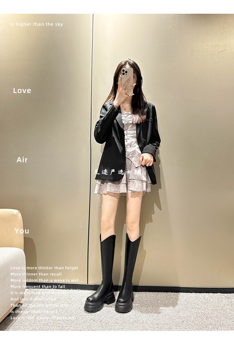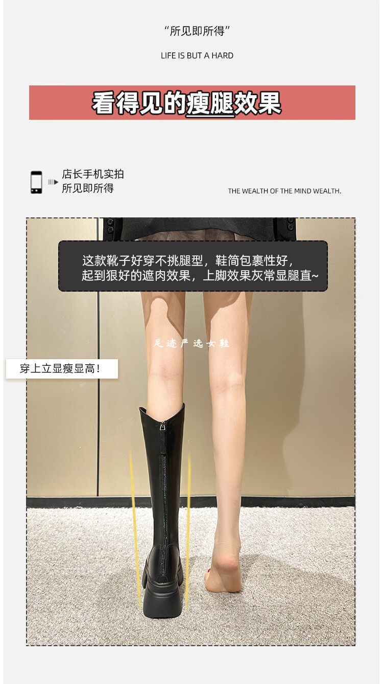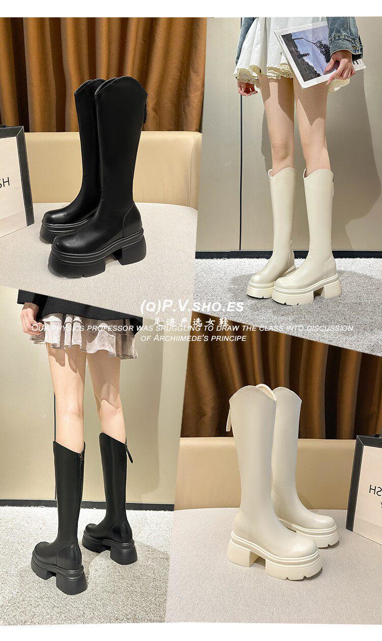 白色小個子長筒靴女2026新款秋冬內增高12cm高筒長靴顯瘦騎士靴女