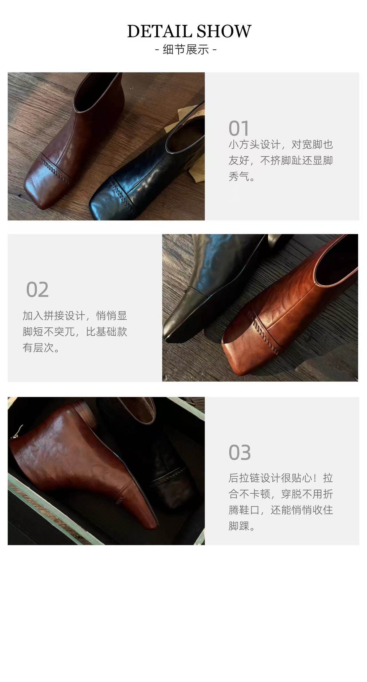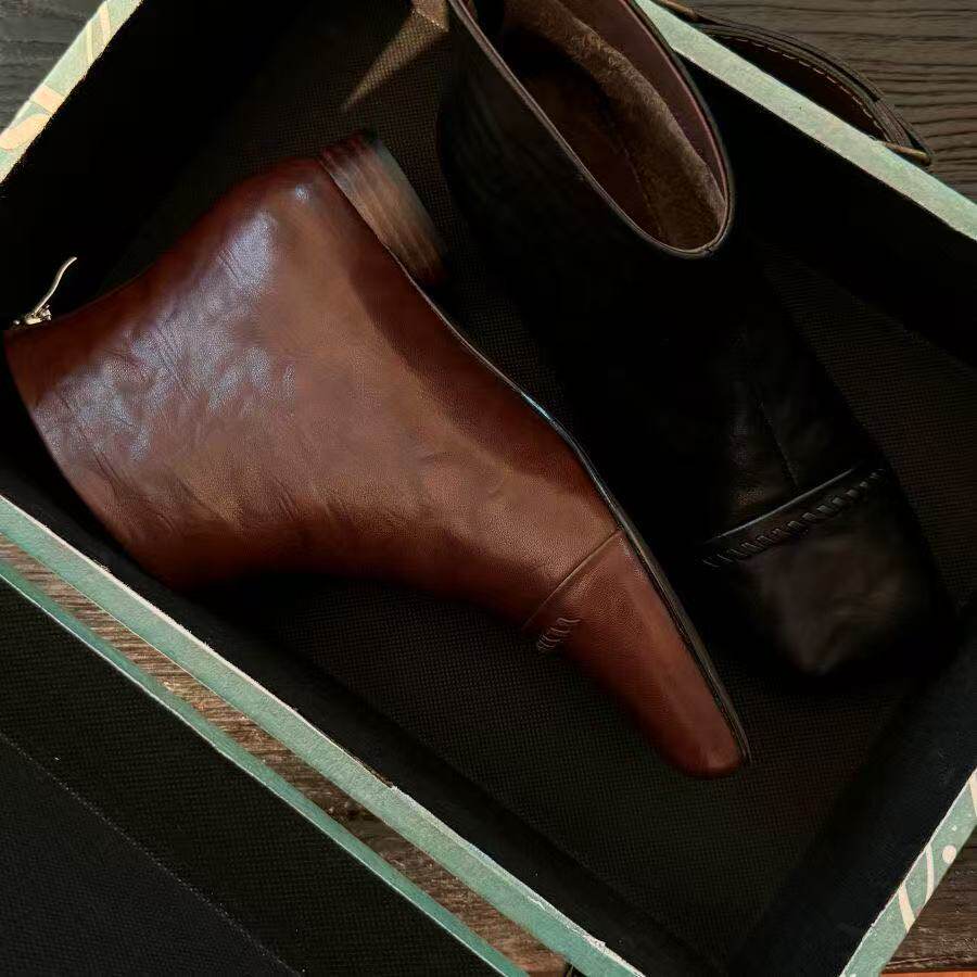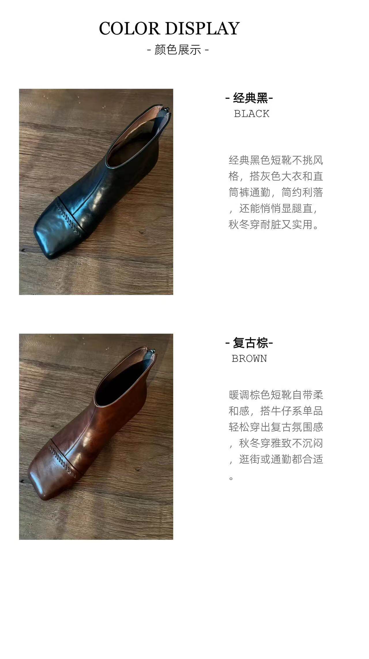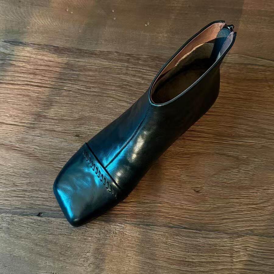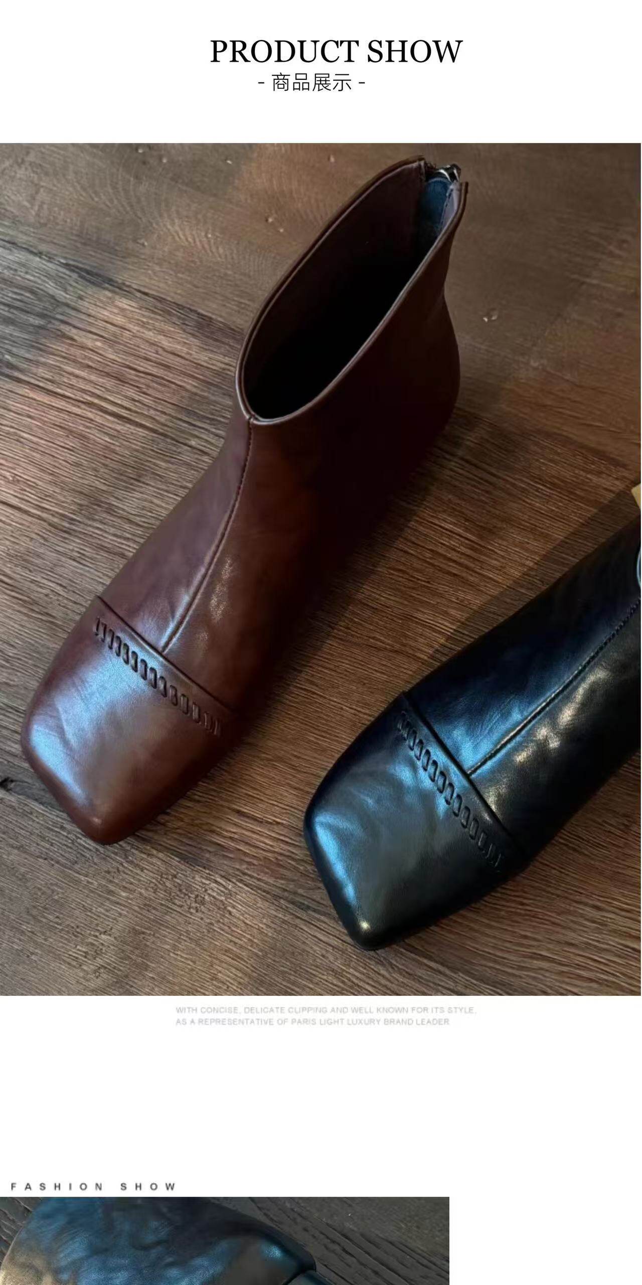 2025秋冬新款法式復古方頭短靴女粗跟真皮切爾西靴子大碼女鞋子