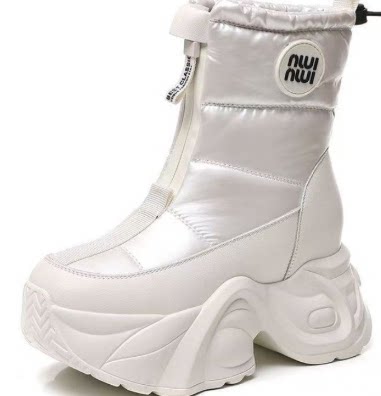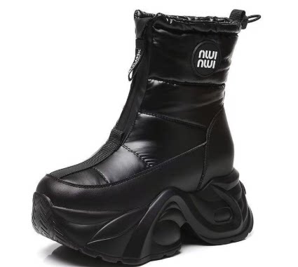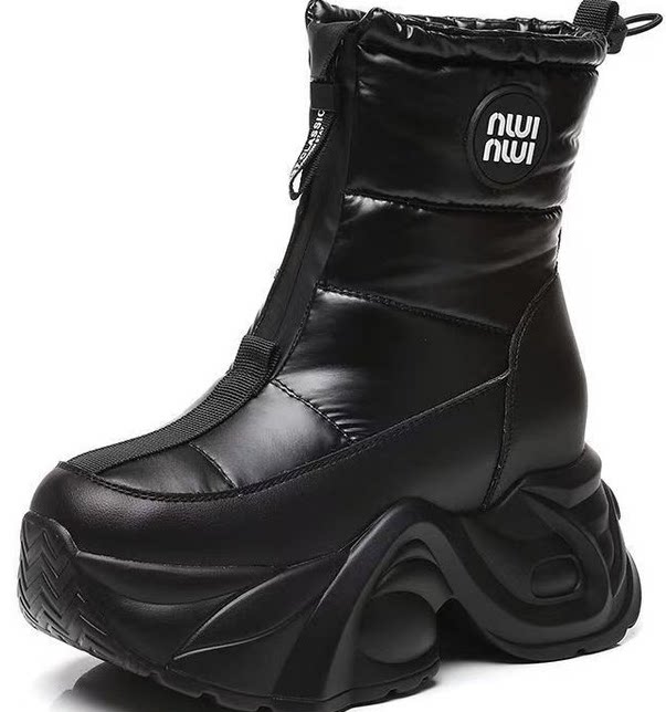 防水棉鞋女冬季2025新款小個子厚底增高休閒百搭加絨保暖雪地靴潮