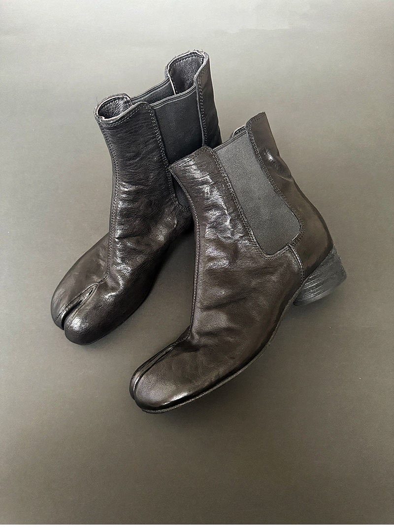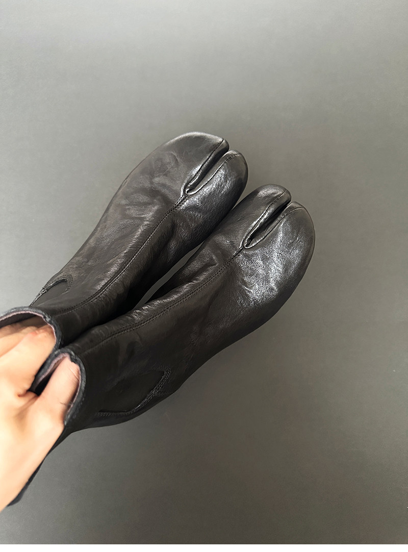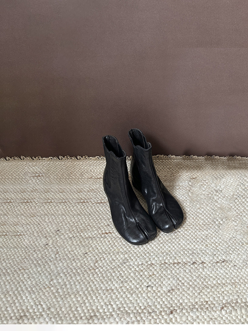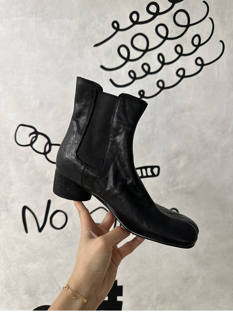 小衆高級設計感分趾豬蹄靴女款粗跟不累腳短靴百搭瘦瘦菸筒馬丁靴