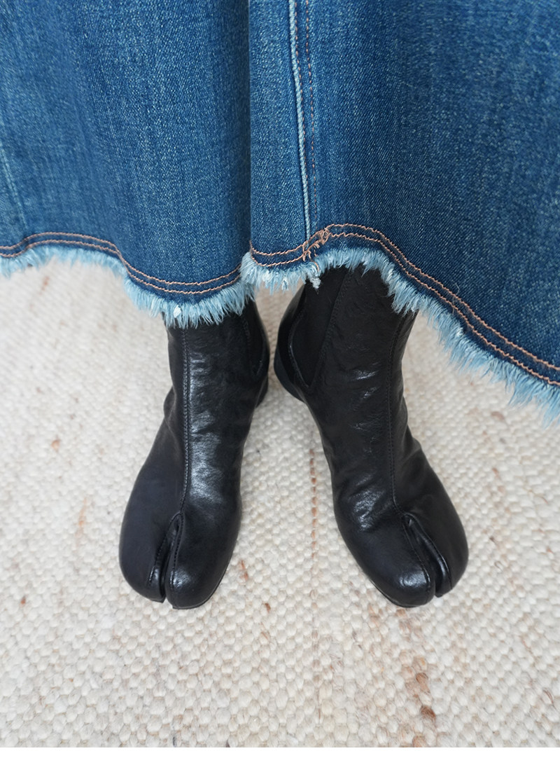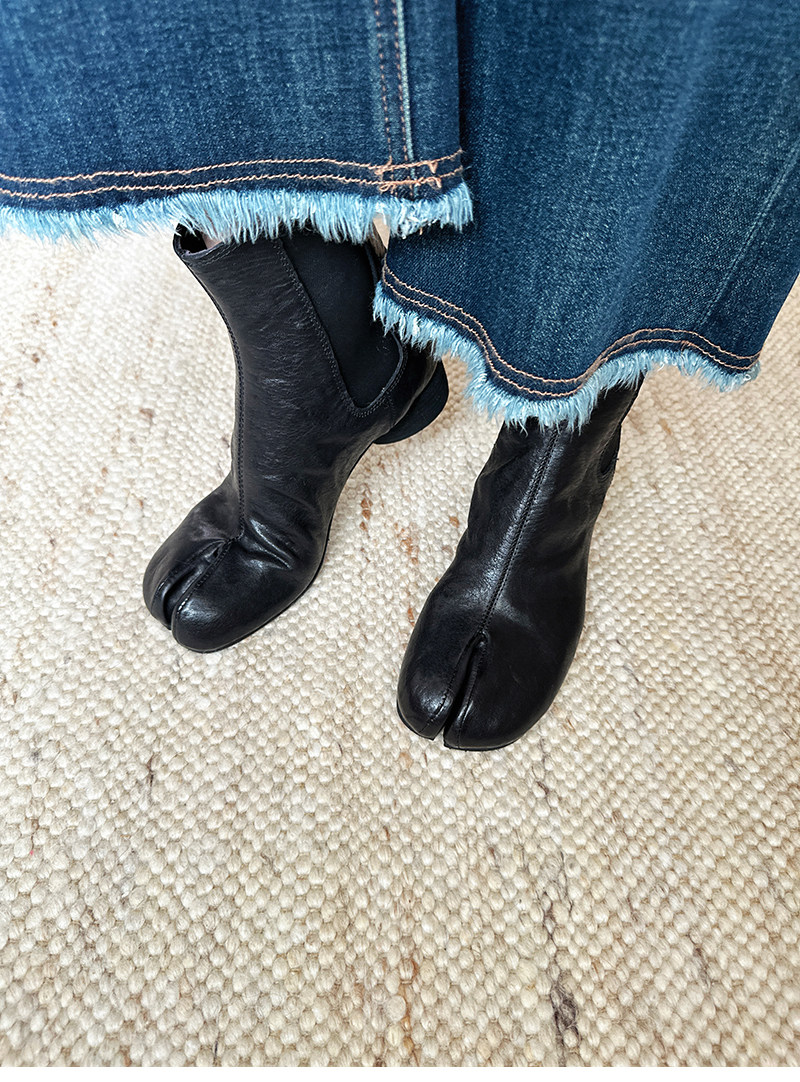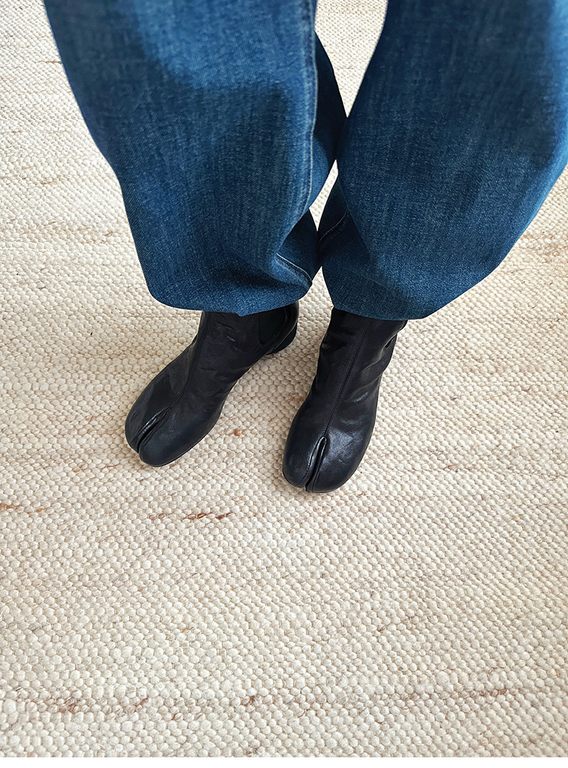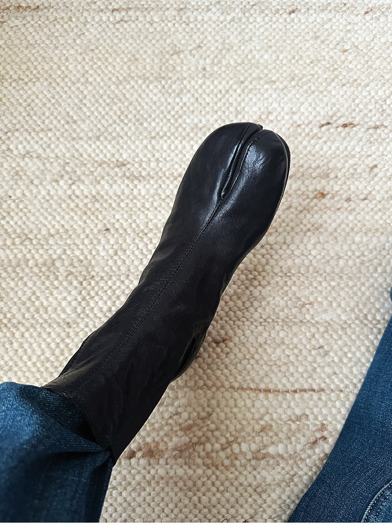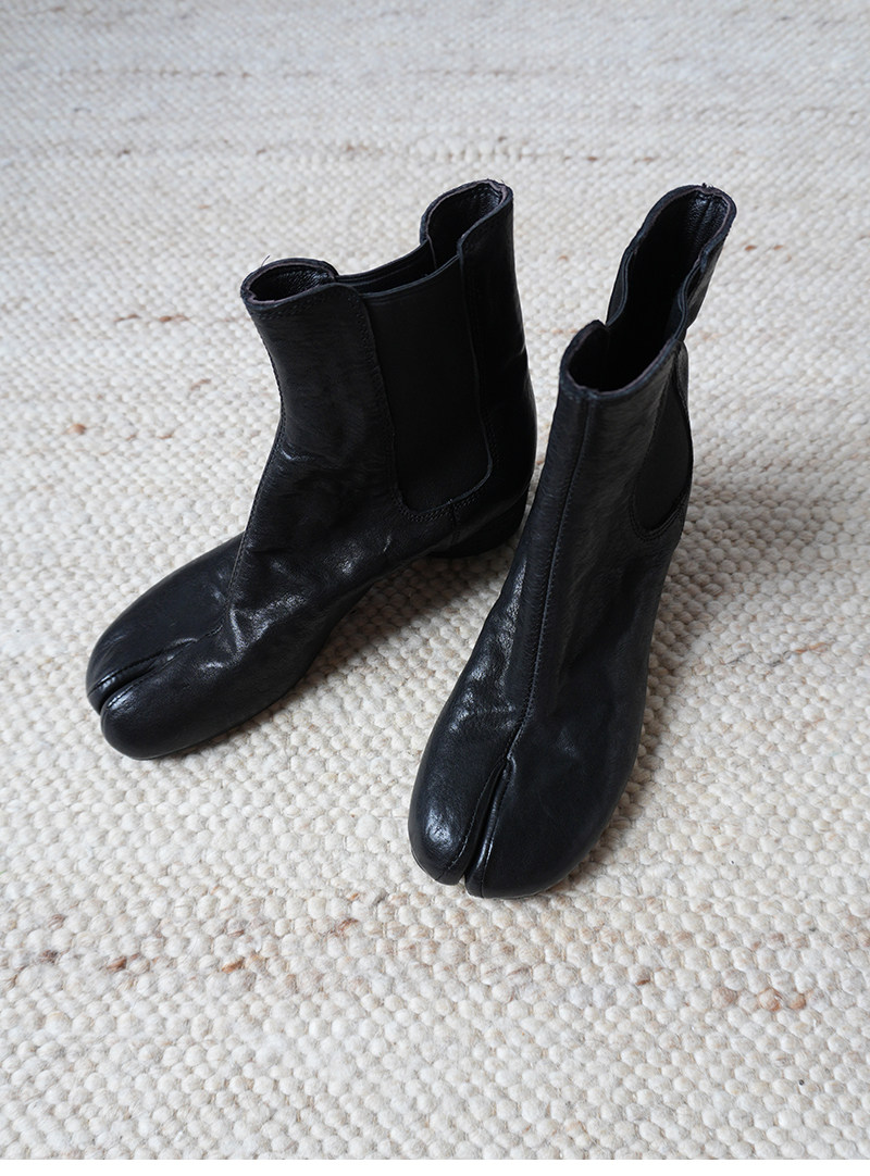 小衆高級設計感分趾豬蹄靴女款粗跟不累腳短靴百搭瘦瘦菸筒馬丁靴